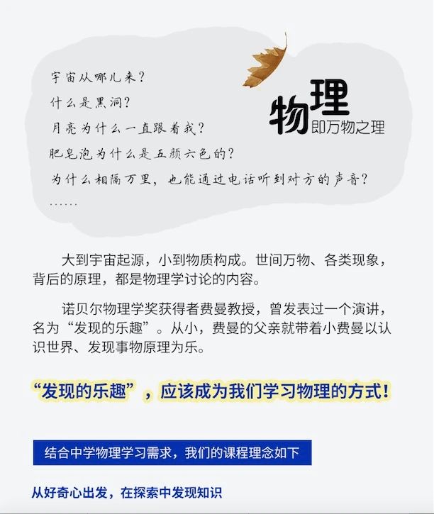 也希望能系统地培养孩子们科学思维,逻辑思维,通理解概念和公式背后的原理学习物理。让他们能正确认识物理这个学科,和科学的思维方式。