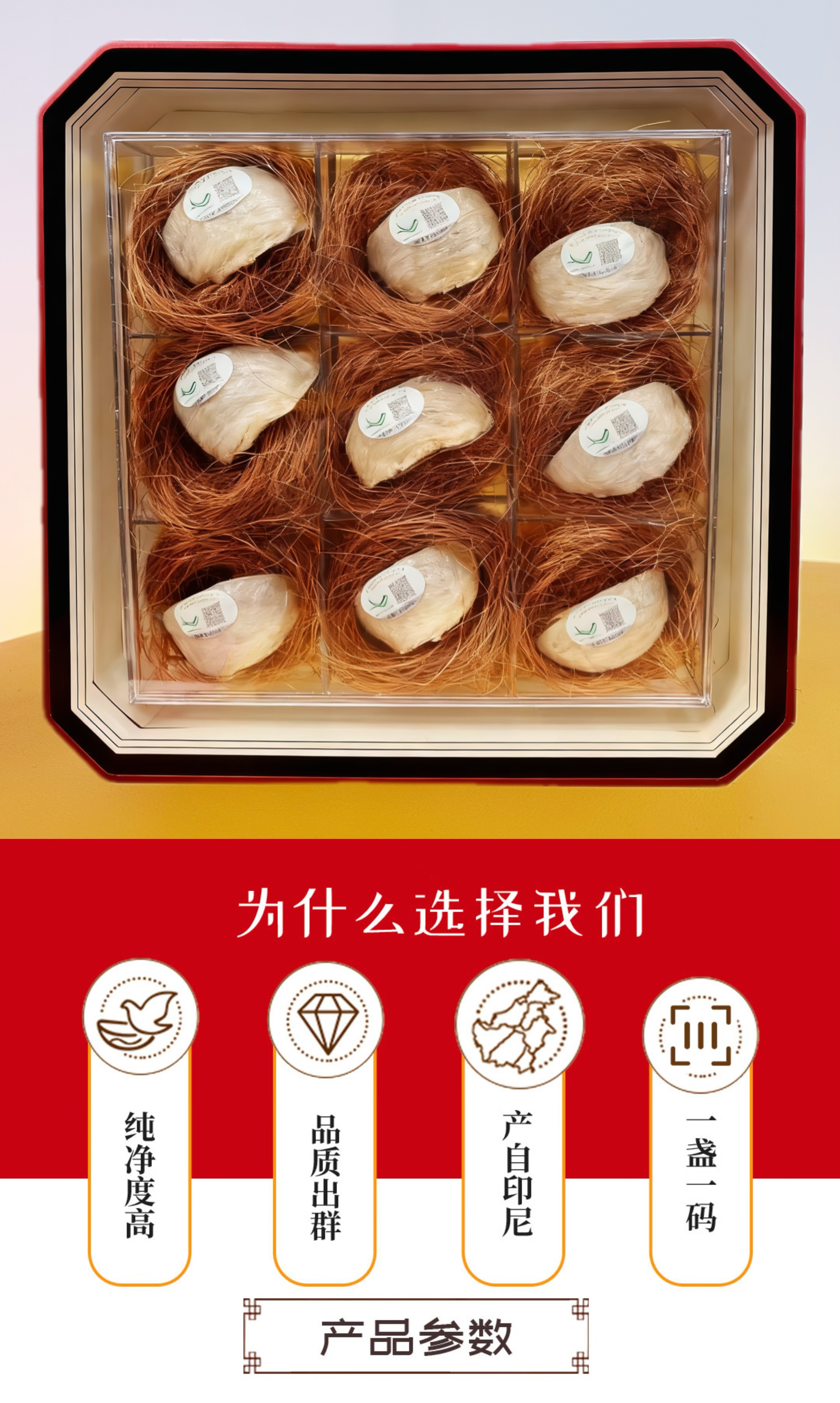 【中秋限定款】【花姐印尼溯源】金丝燕燕盏礼盒 源头价 雨季不刷胶不漂白 升级送燕盏 商品图0