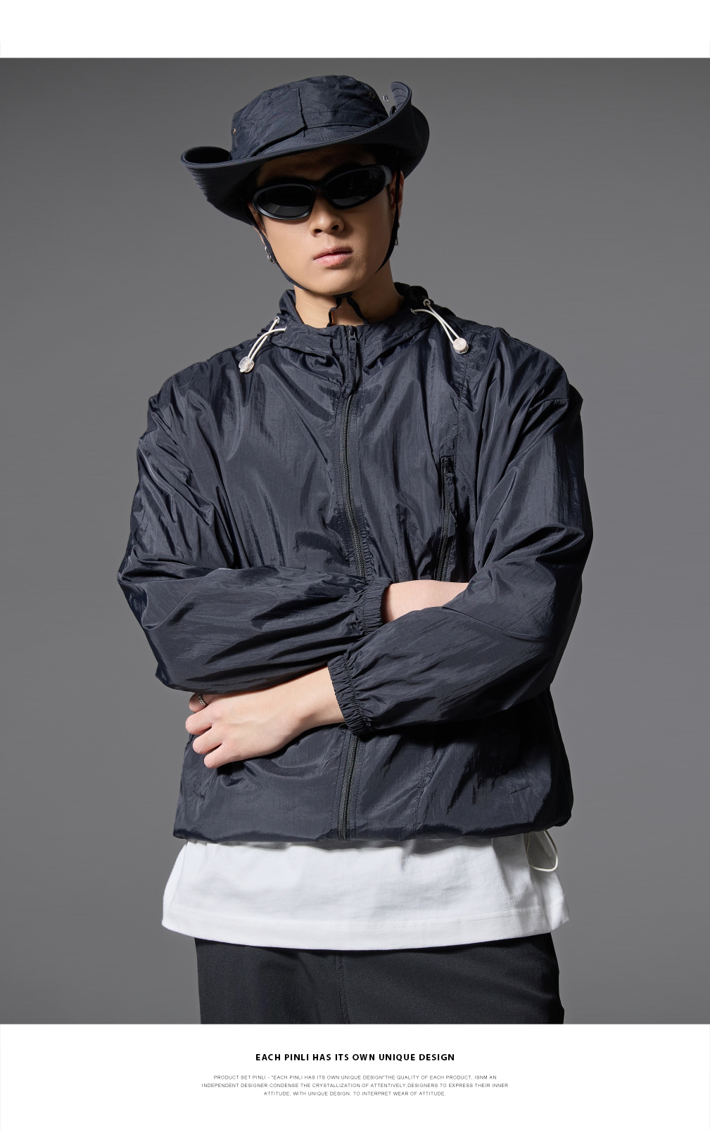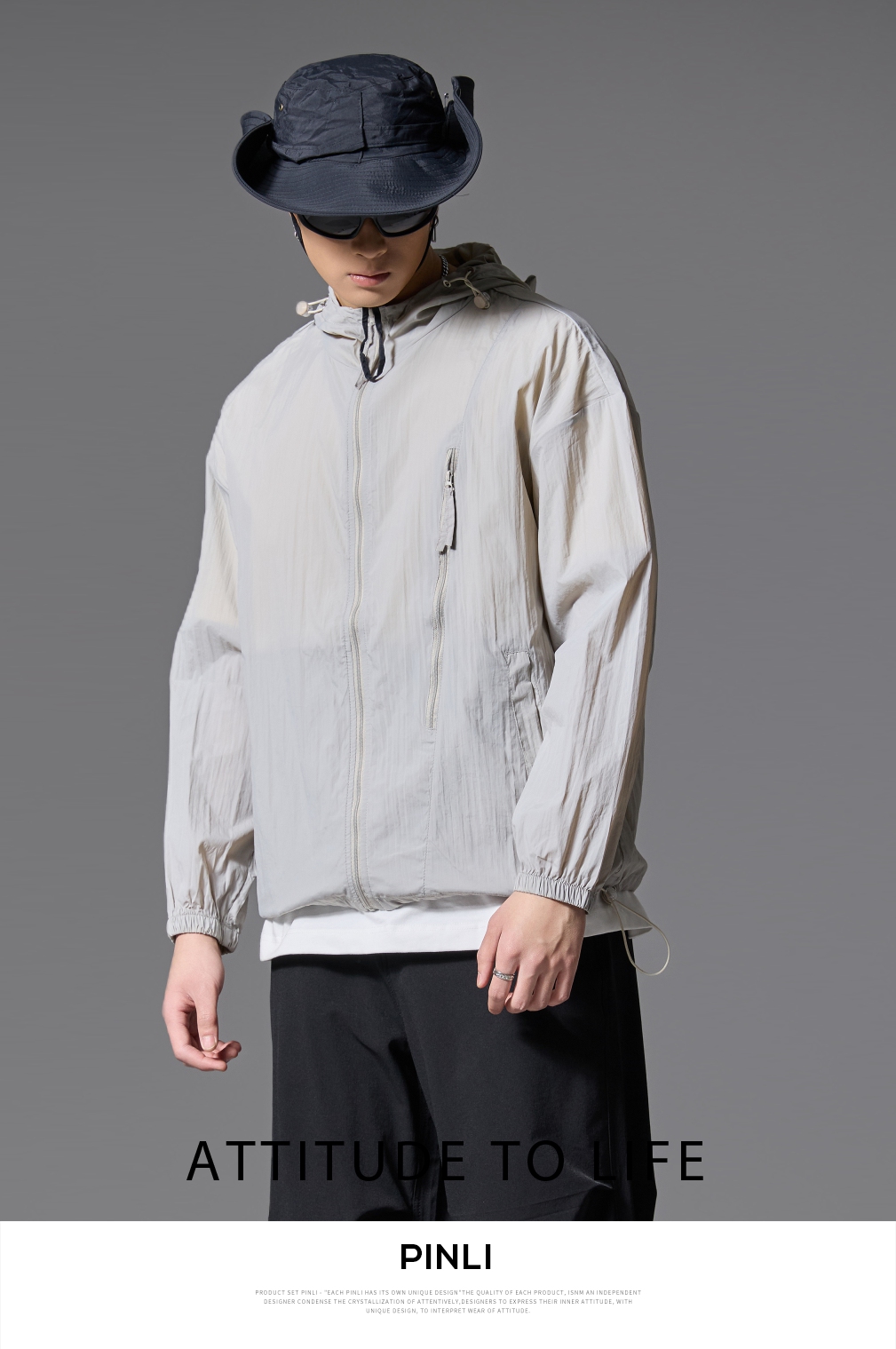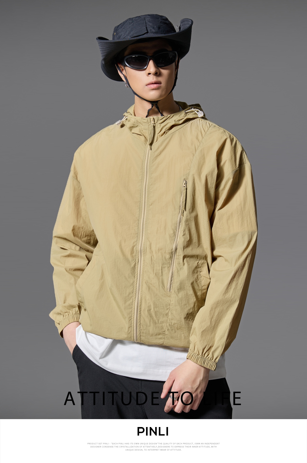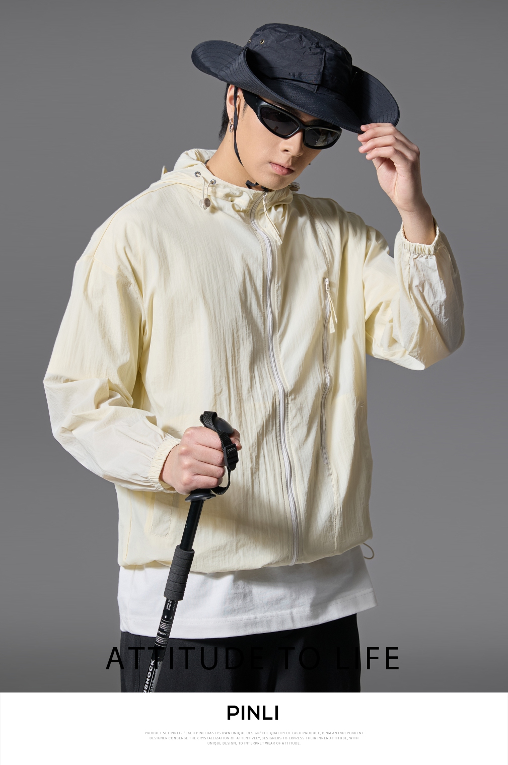 PINLI品立2025春夏新款男士轻薄户外连帽防晒衣潮牌工装夹克外套GD251104020