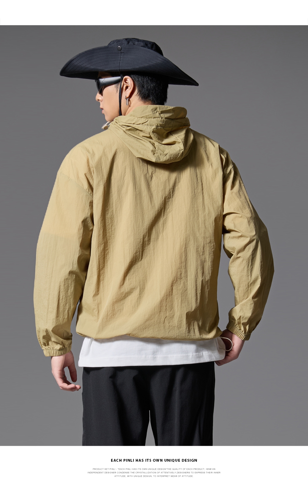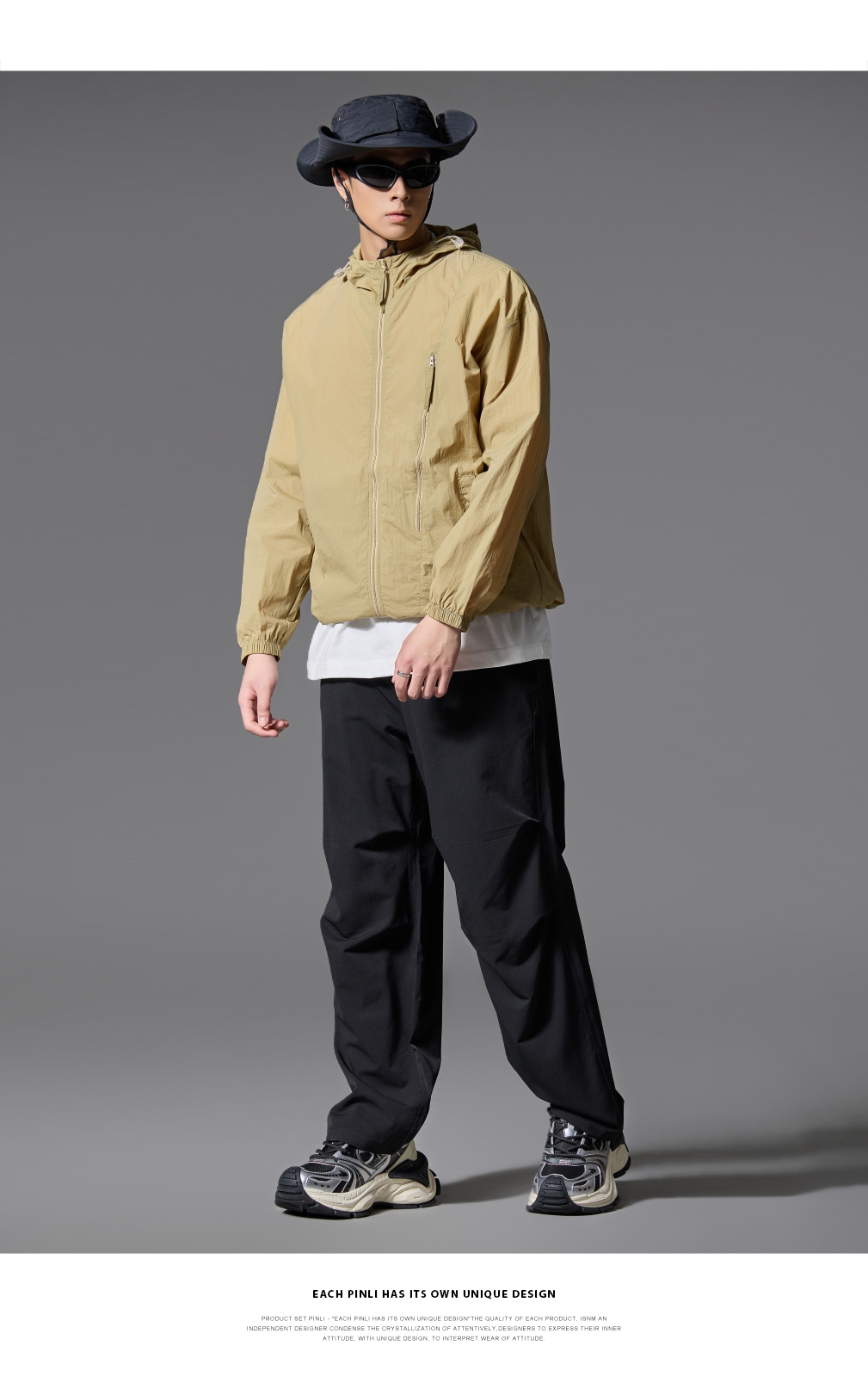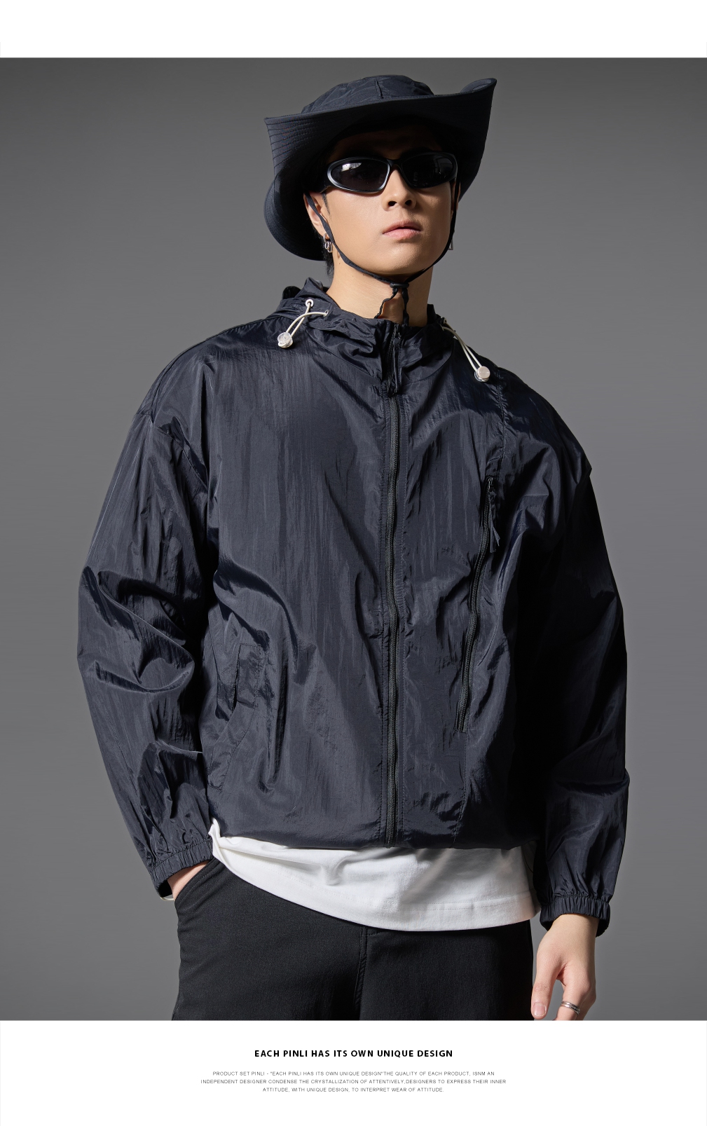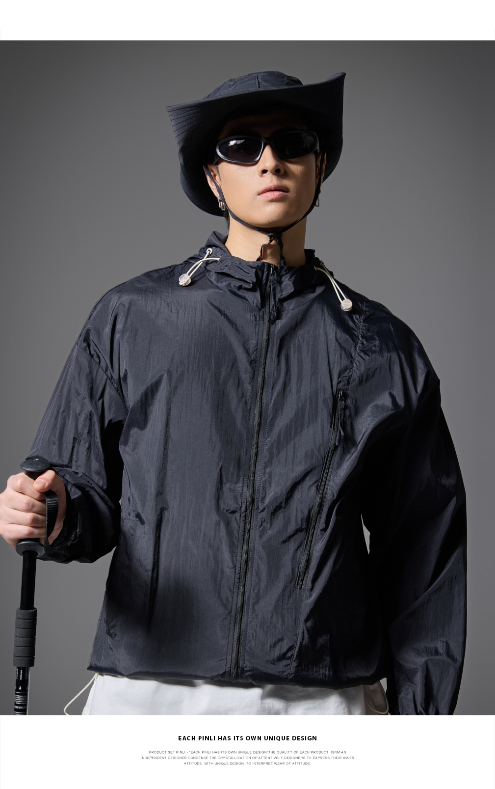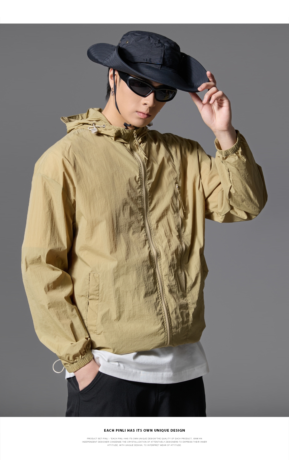 PINLI品立2025春夏新款男士轻薄户外连帽防晒衣潮牌工装夹克外套GD251104020