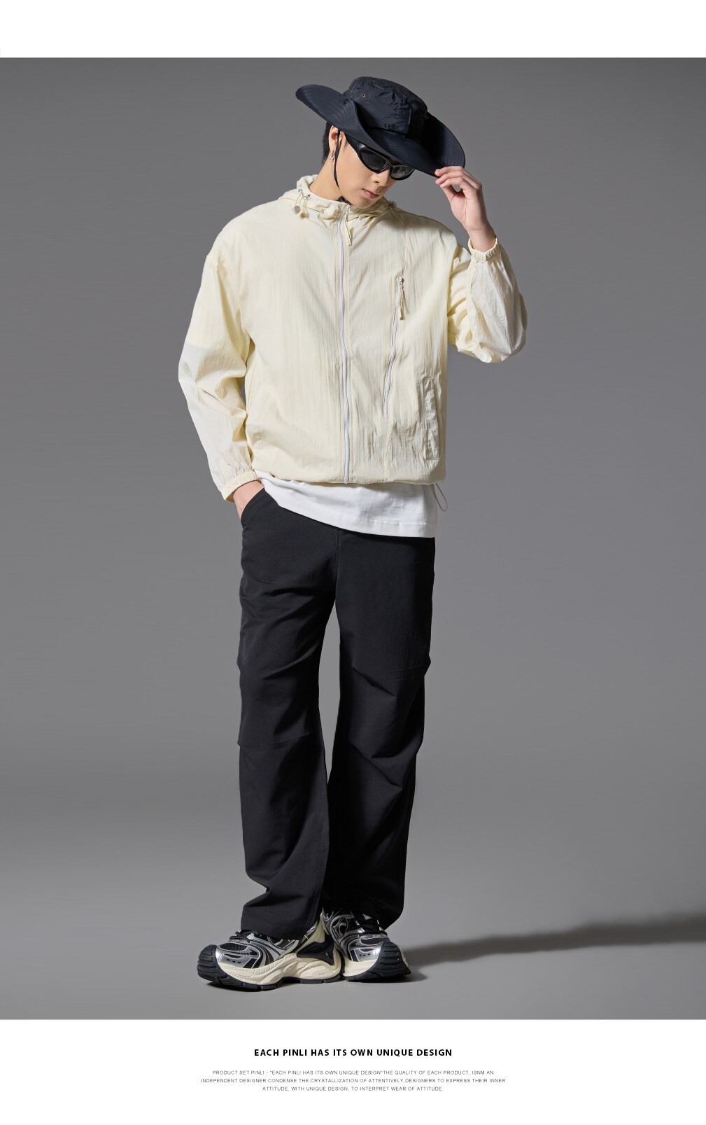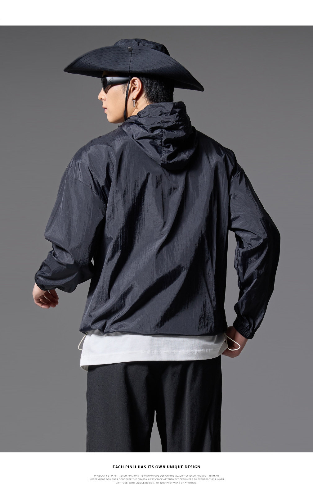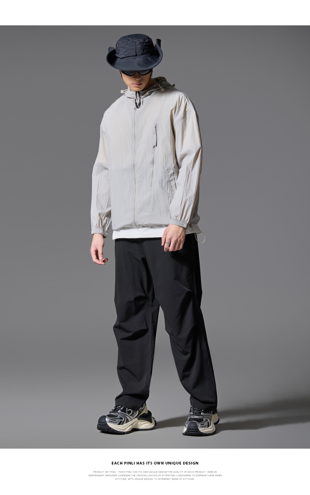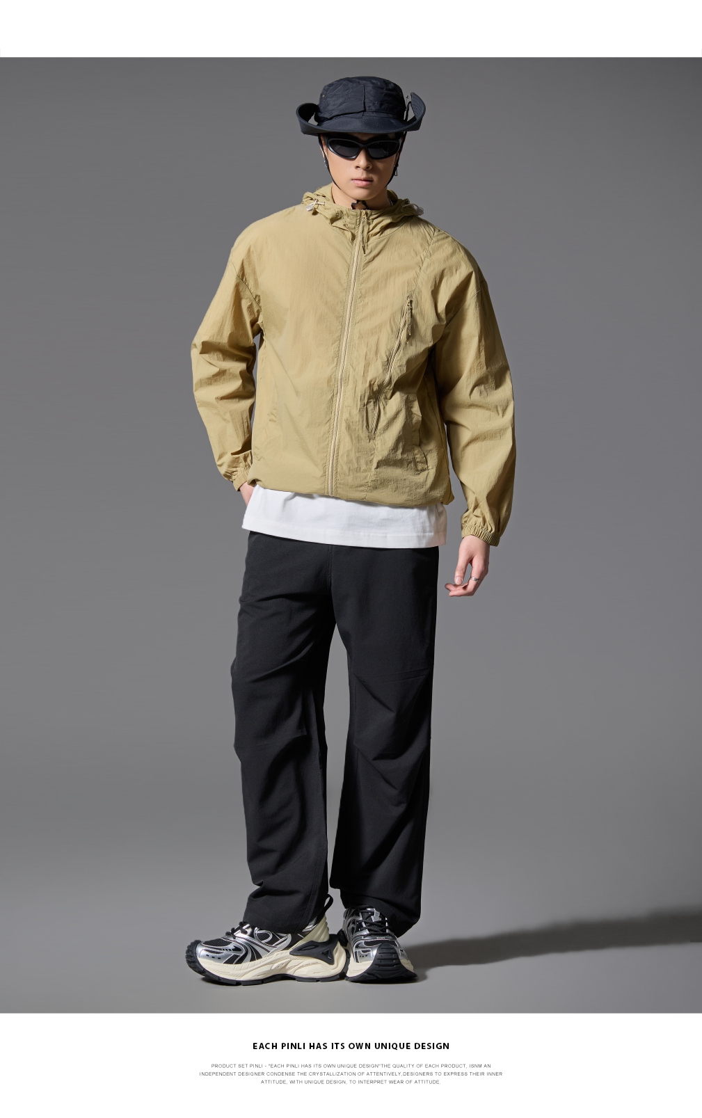 PINLI品立2025春夏新款男士轻薄户外连帽防晒衣潮牌工装夹克外套GD251104020