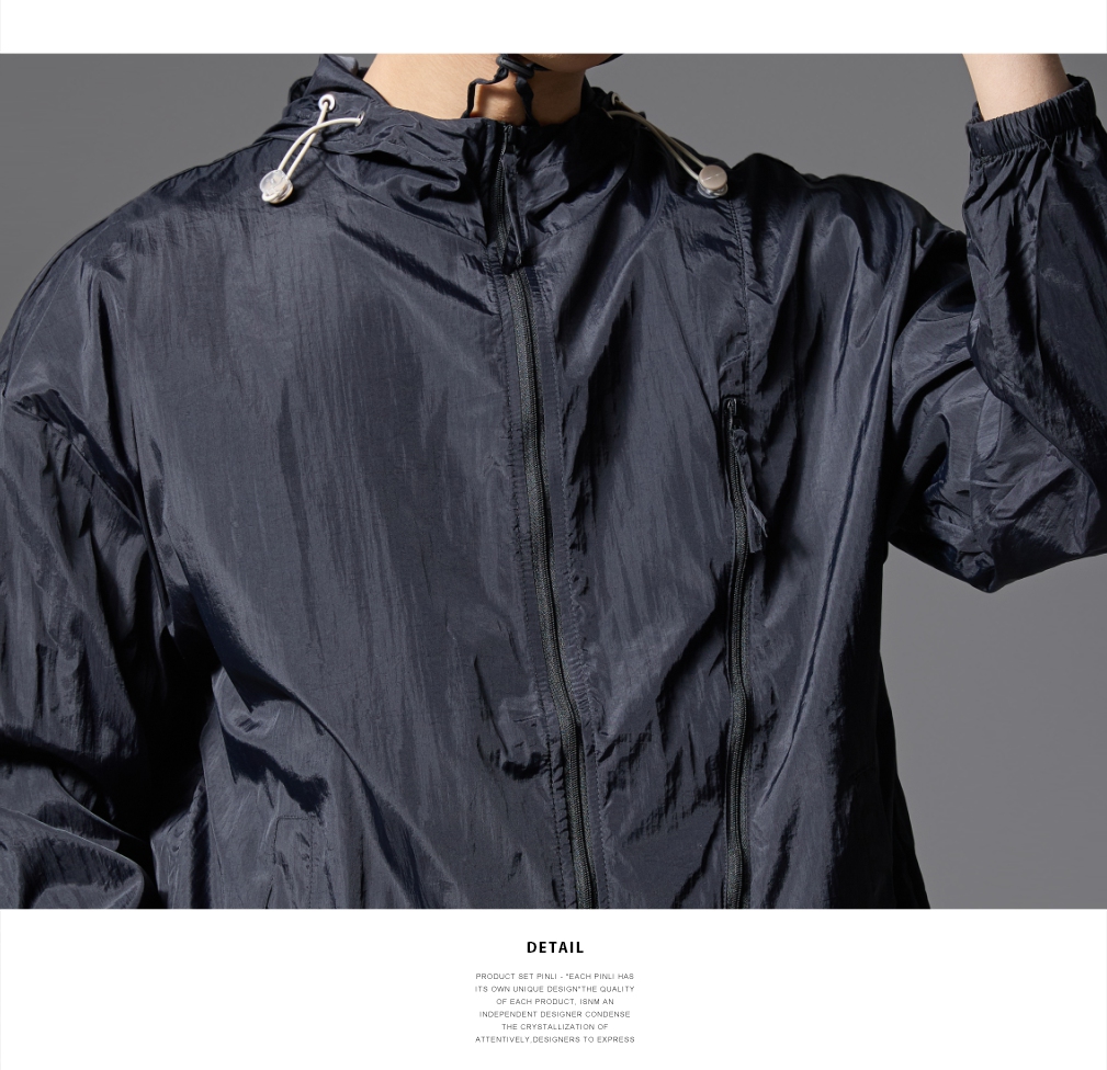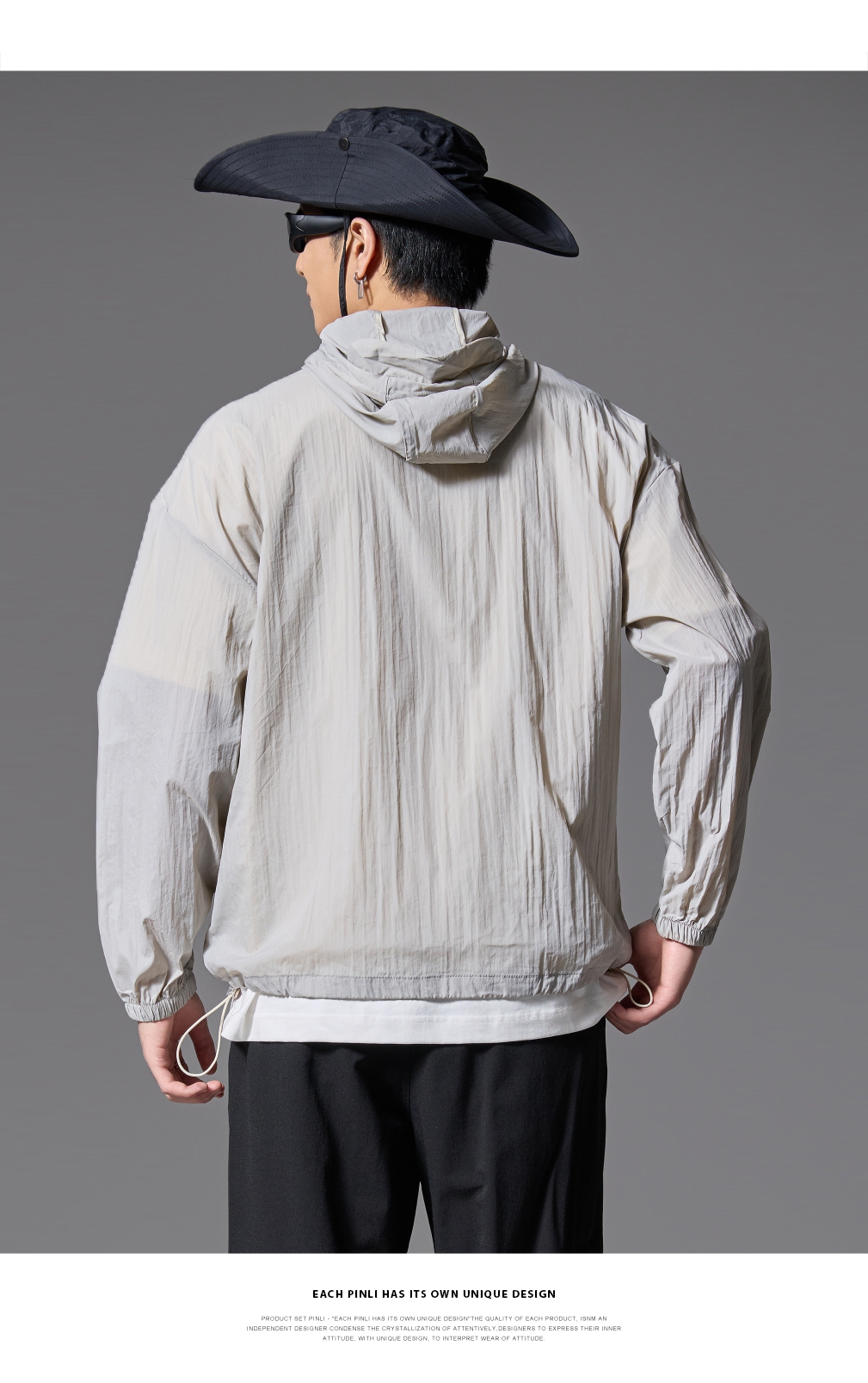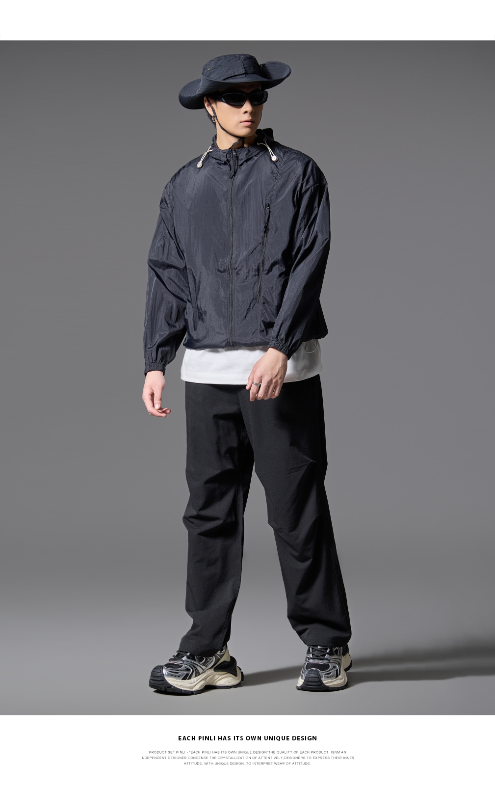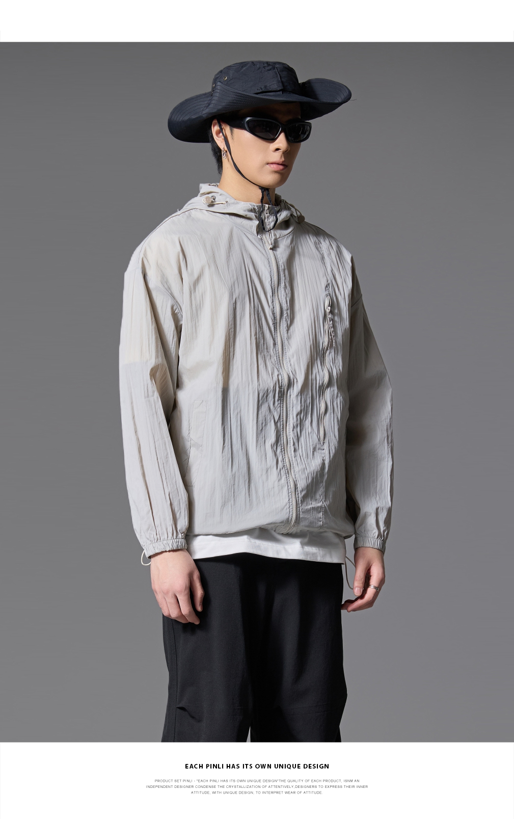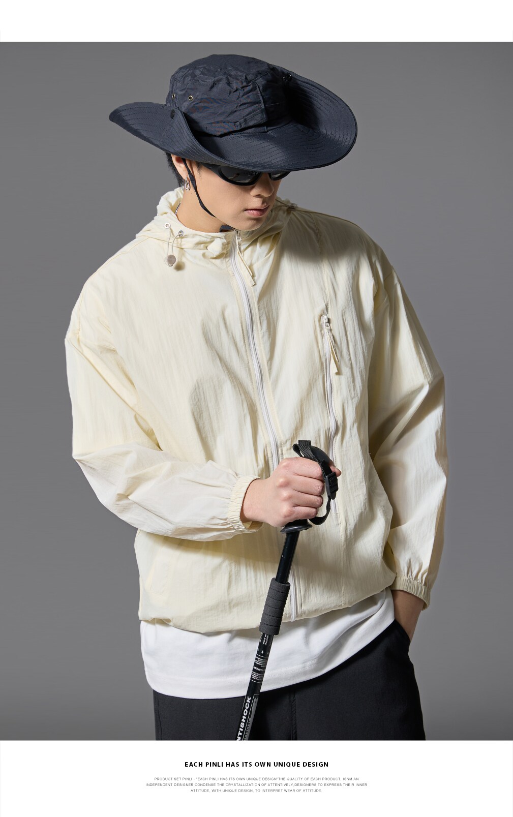 PINLI品立2025春夏新款男士轻薄户外连帽防晒衣潮牌工装夹克外套GD251104020