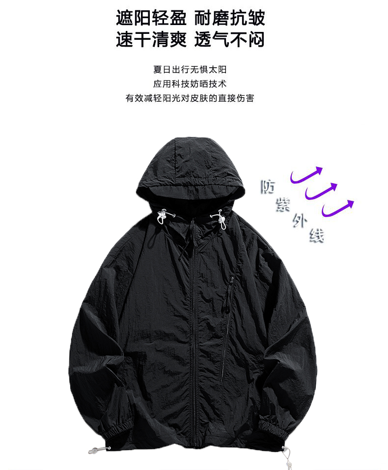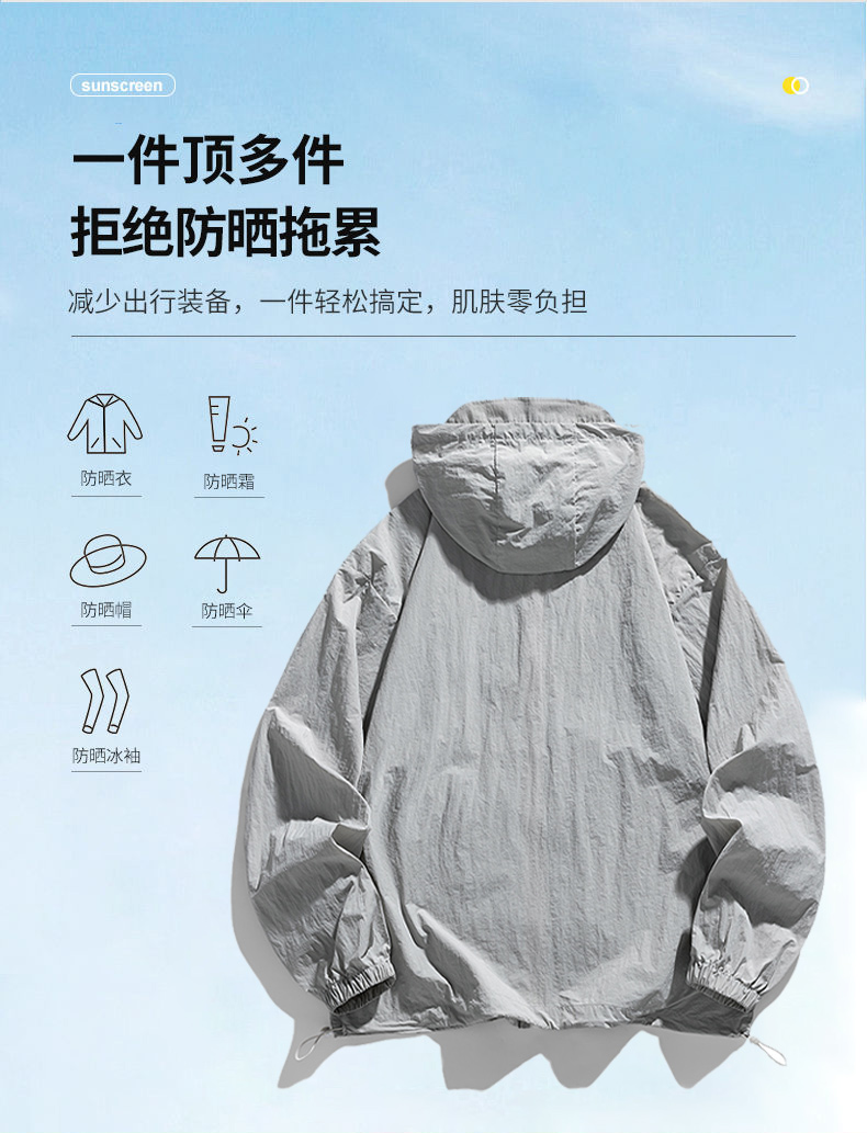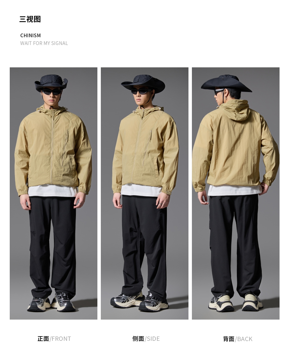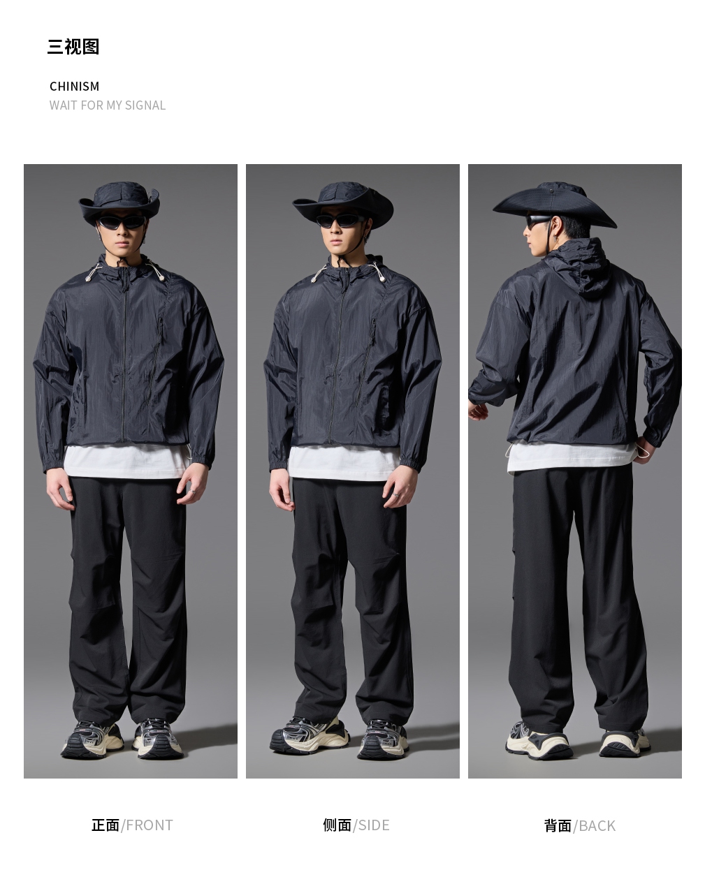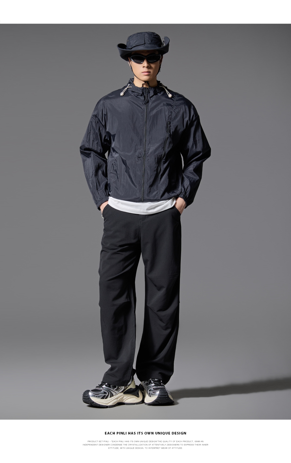 PINLI品立2025春夏新款男士轻薄户外连帽防晒衣潮牌工装夹克外套GD251104020
