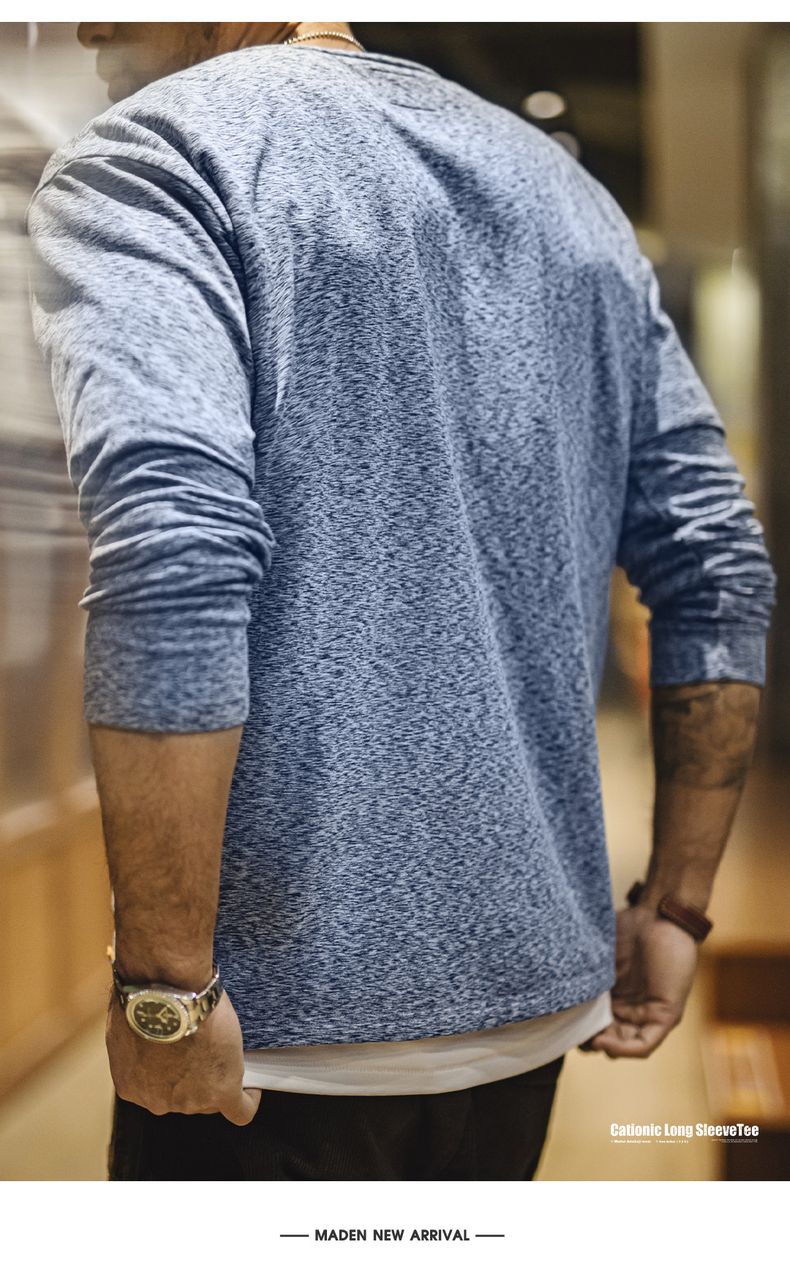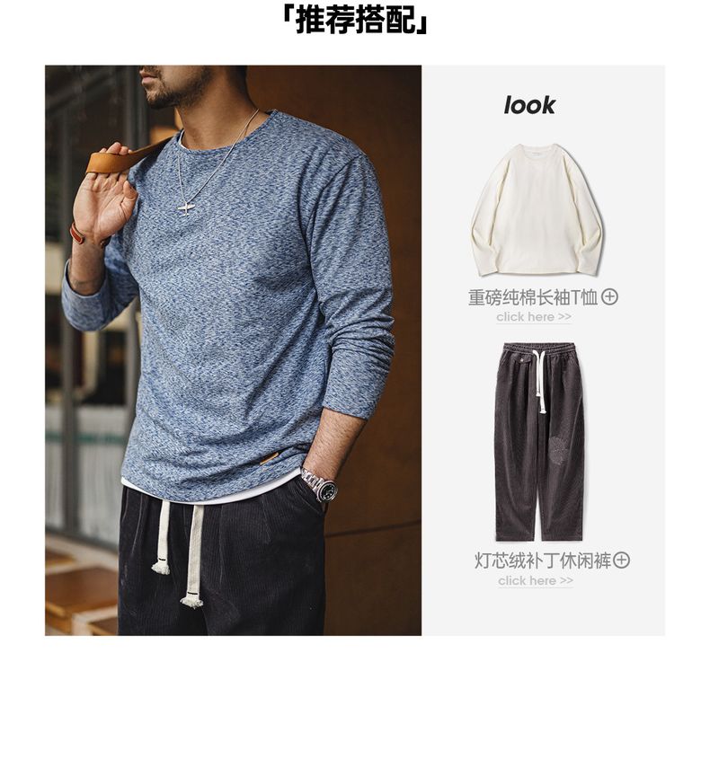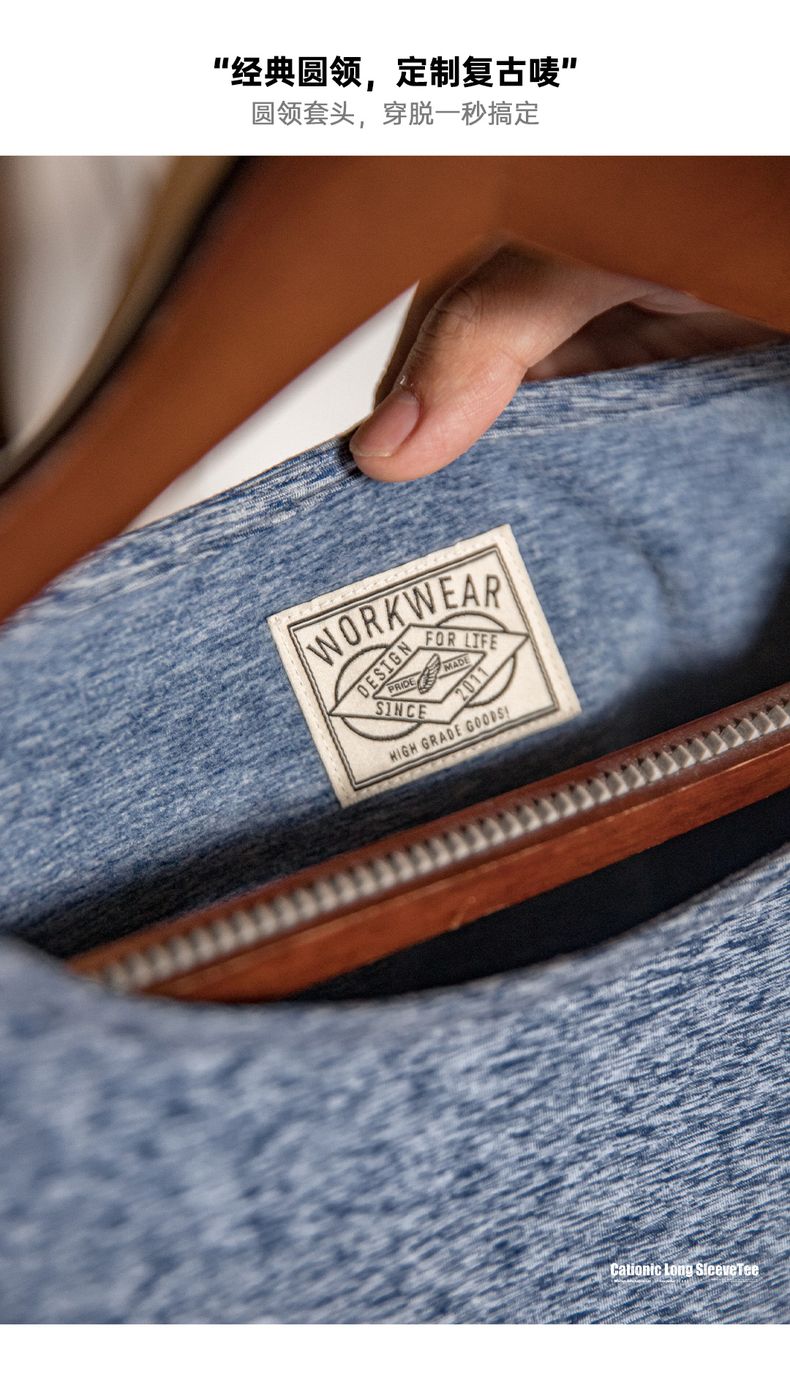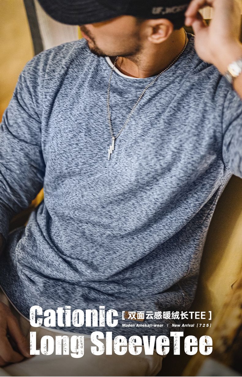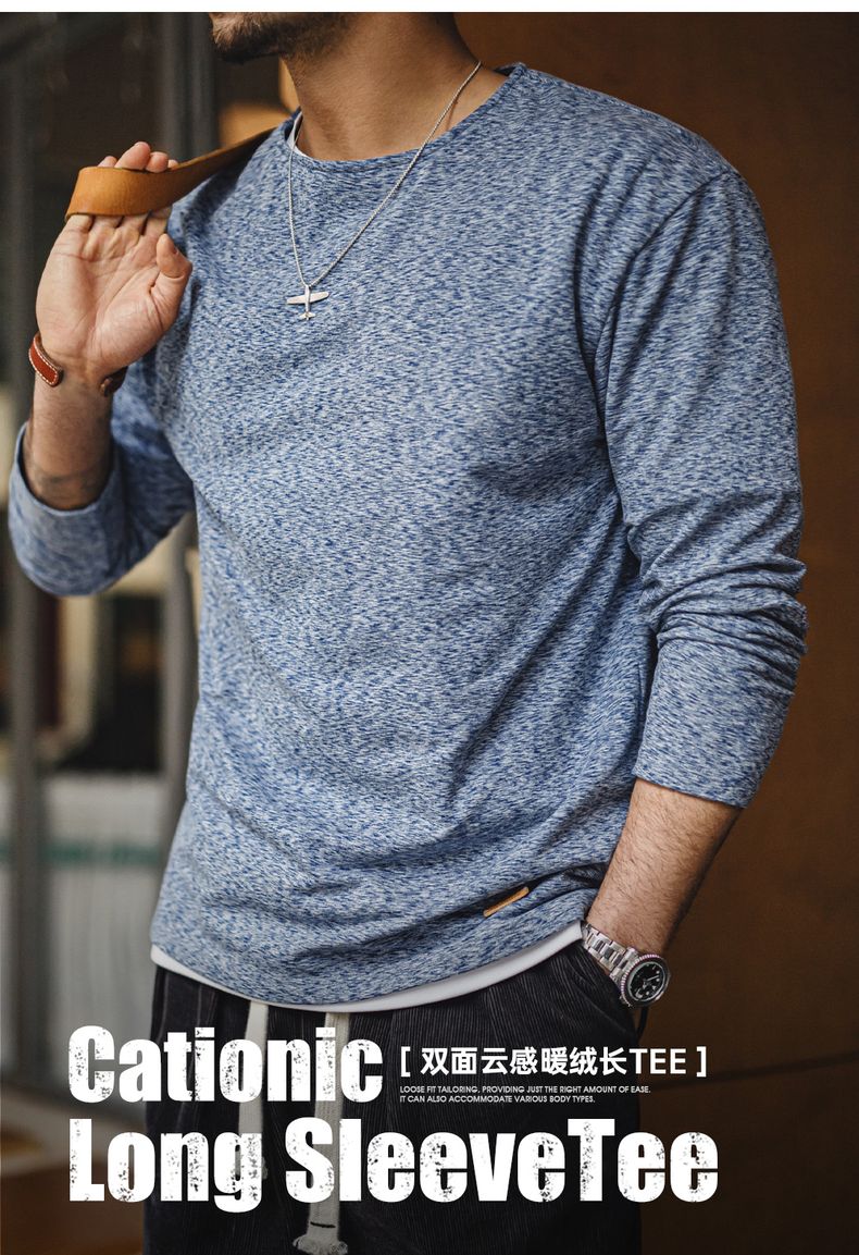 工装优选 美式复古双面绒磨毛长袖T恤保暖内搭圆领打底衫男秋冬季