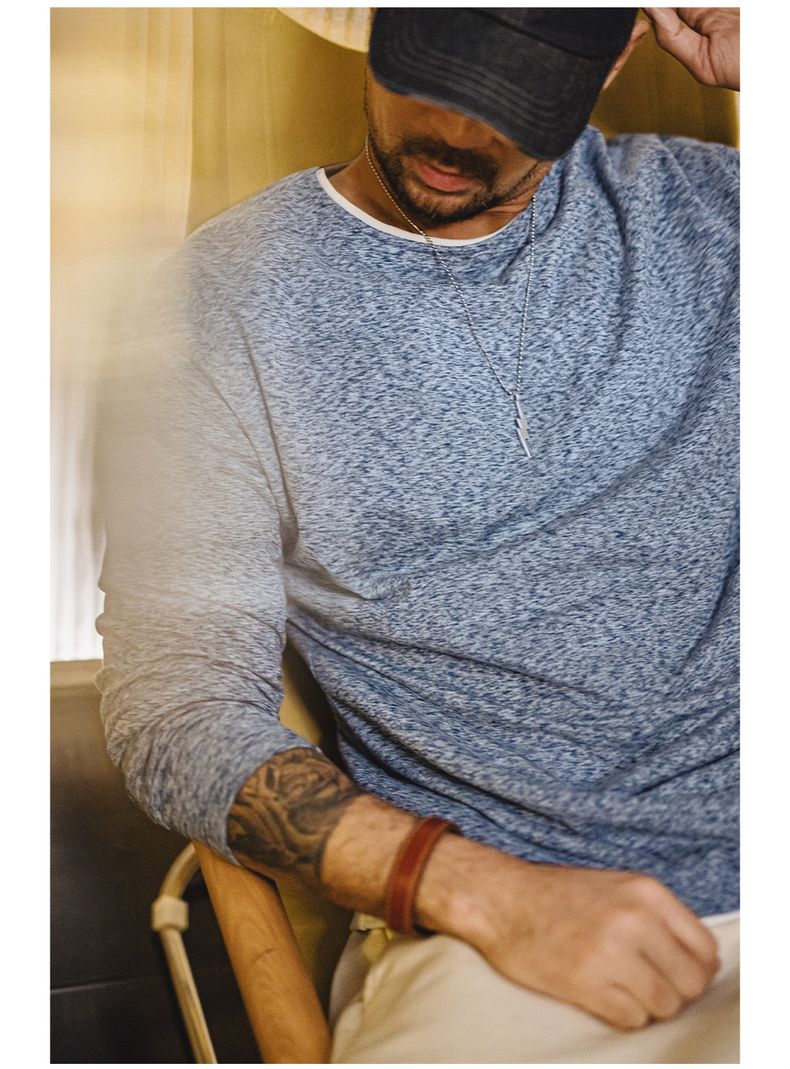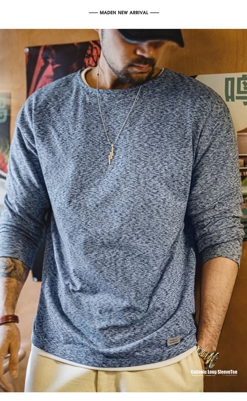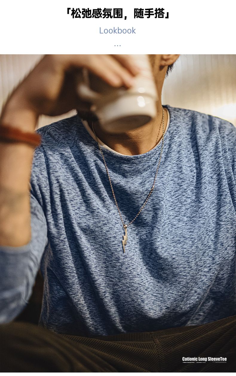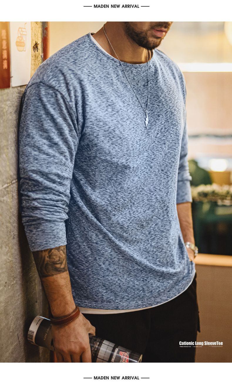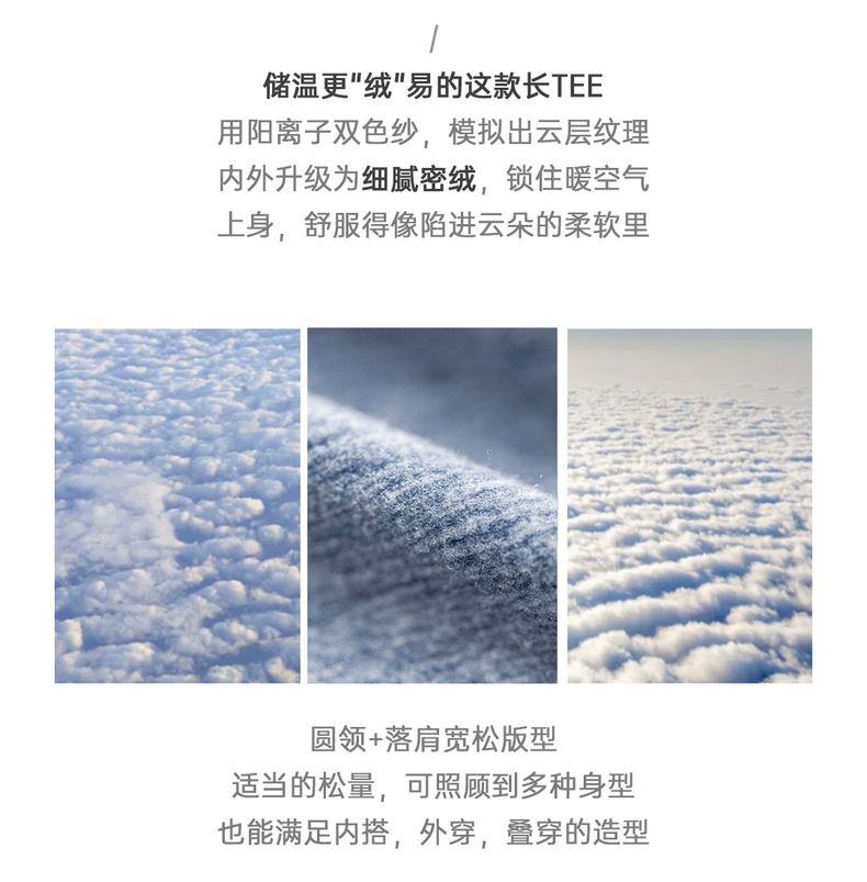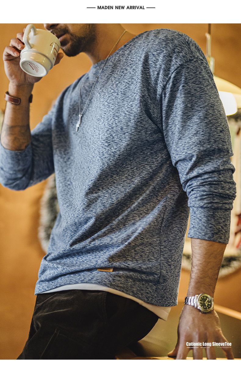 工装优选 美式复古双面绒磨毛长袖T恤保暖内搭圆领打底衫男秋冬季