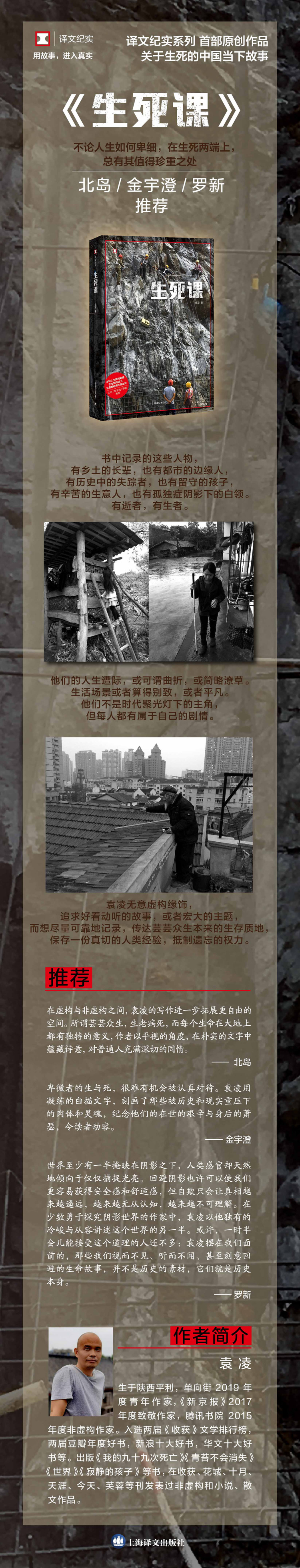 《生死课》是袁凌的短篇记录合集,记录了各色生存地面上 辗转的小人物,或是历史地层中叠压的无名氏。这些人物,大都是作者在成长经历、采访调查,以及公益探访中邂逅的,有乡土的长辈,也有都市的边缘人;有历史中的失踪者,也有留守的孩子;有辛苦的生意人,也有孤独症阴影下的白领。有逝者,有生者。他们的人生遭际,或可谓曲折,或简略潦草。生活场景或者算得别致,或者平凡。他们不是时代聚光灯下的主角,但每人都有属于自己的剧情。袁凌记录这些人的生与死,不仅为了他们的人生,也为了对自我生命的理解。