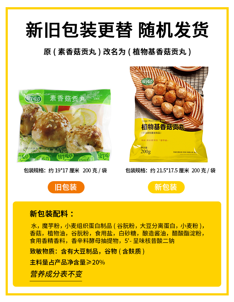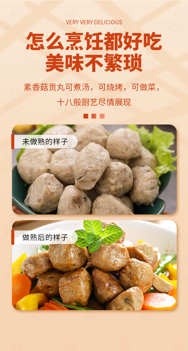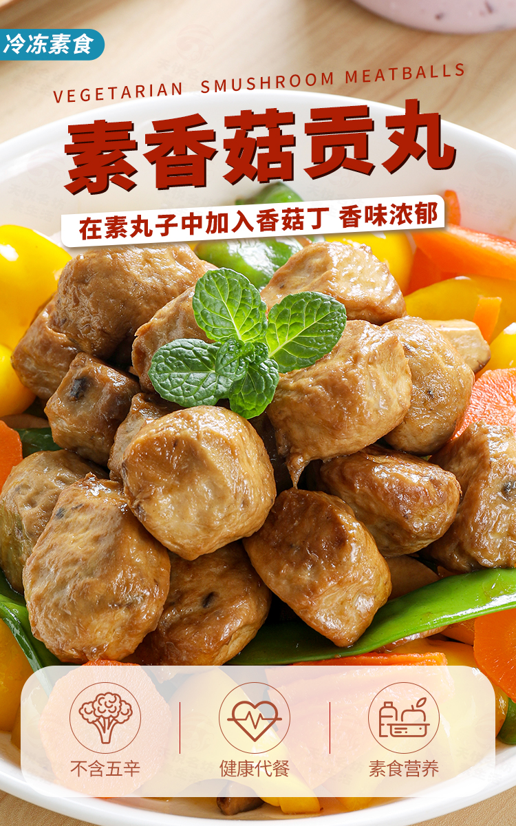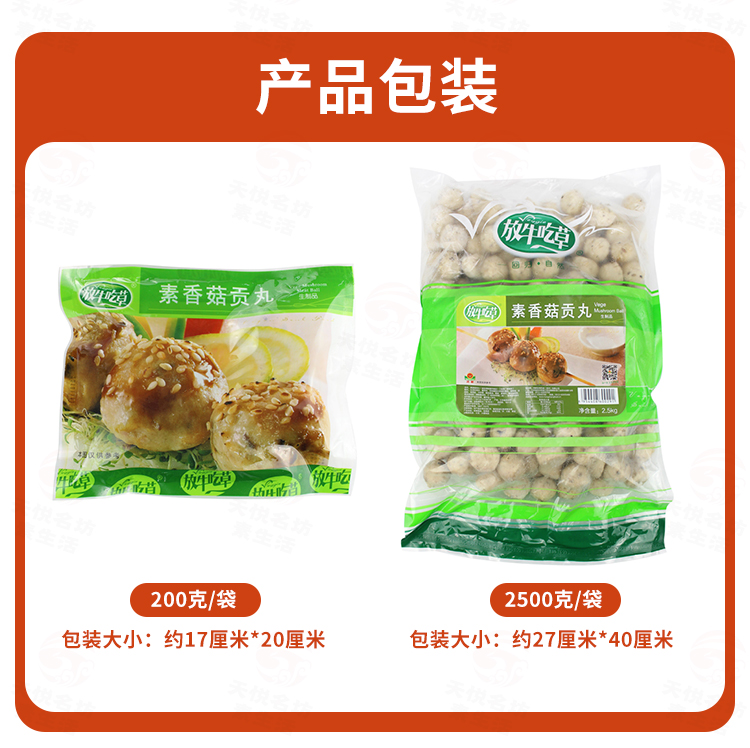 2袋素香菇贡丸 超爱吃的素肉丸子【冷冻素食】 200克