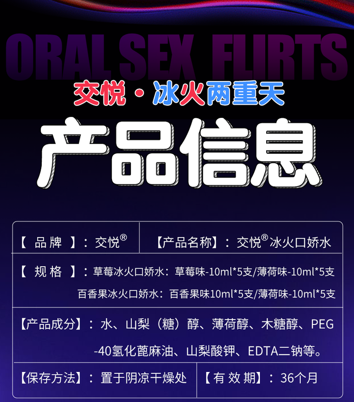 男用新品 冰火口娇水润滑液10ml*10 号5234