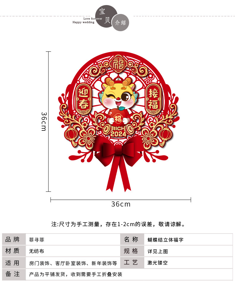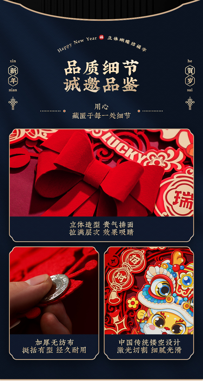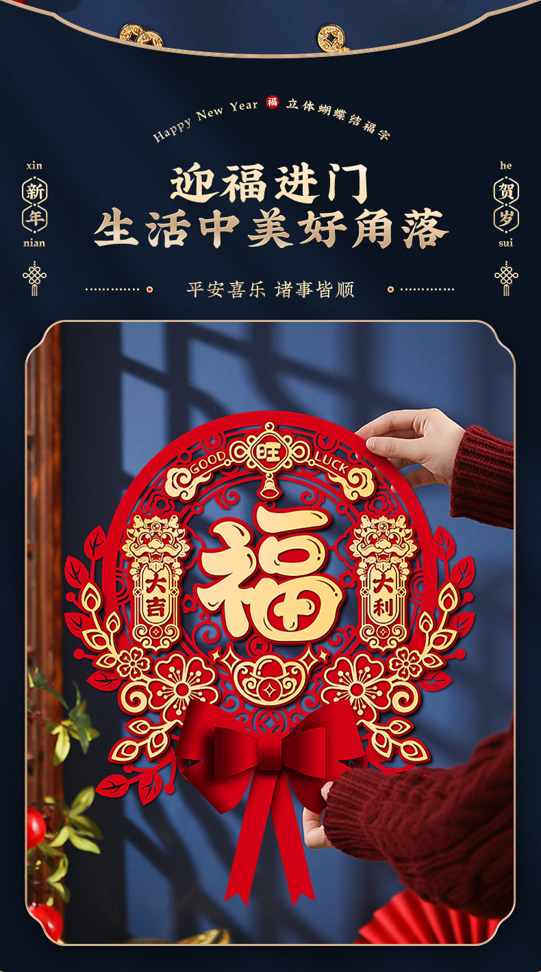 【新年蝴蝶结立体挂饰】2024龙年福字门贴新款新年贴纸春节布置入户门挂过年装饰用品挂件