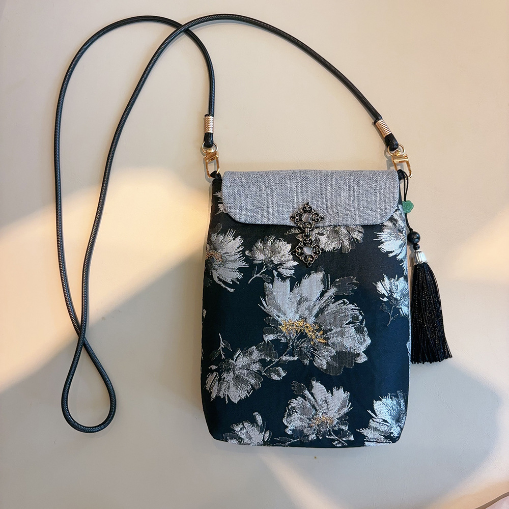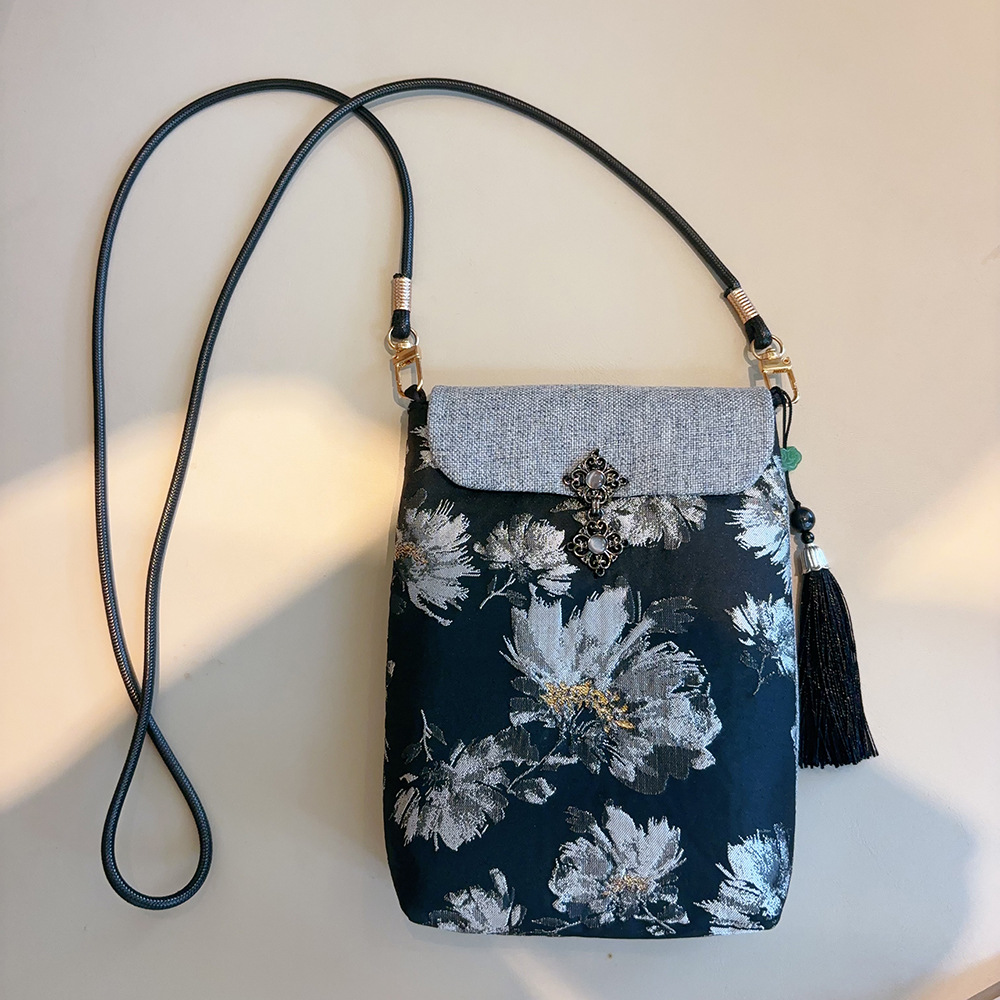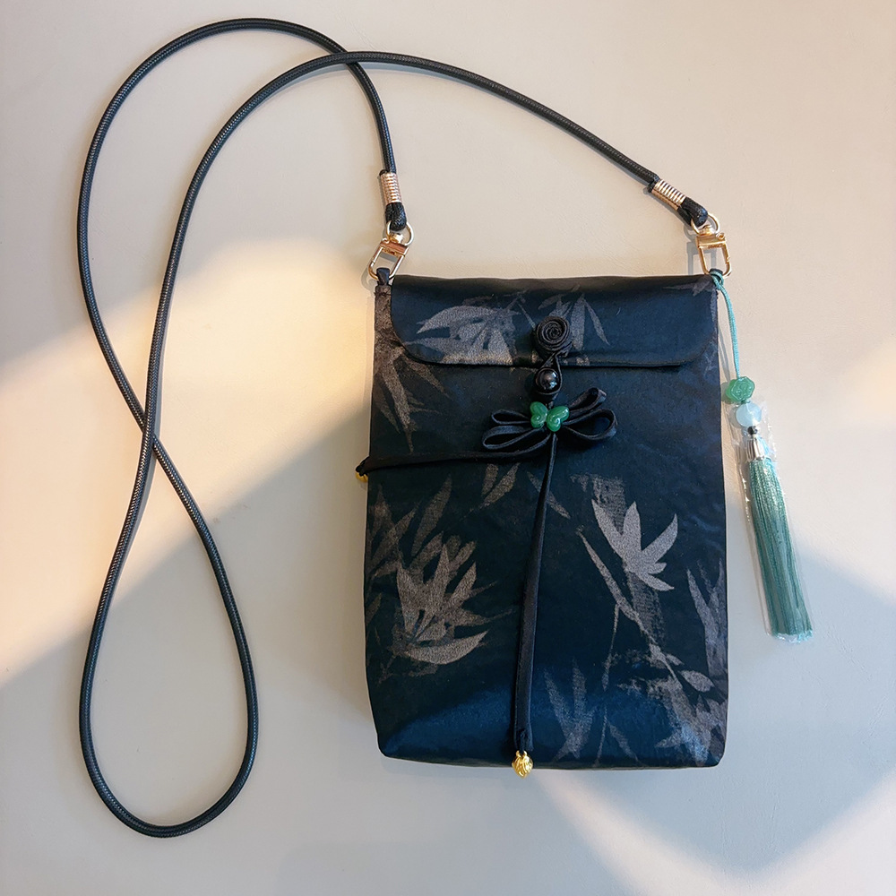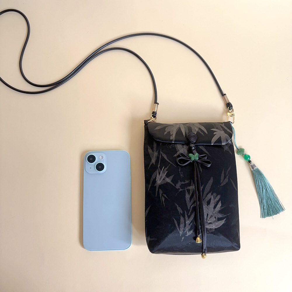 原创非遗香云纱手工手机包女新中式国风斜挎真丝高级感包迷你小包