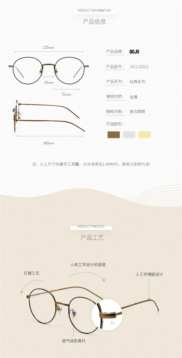 aojo 眼镜框经典系列复古圆框文艺镜架可配近视眼镜女 JACLS0021C02