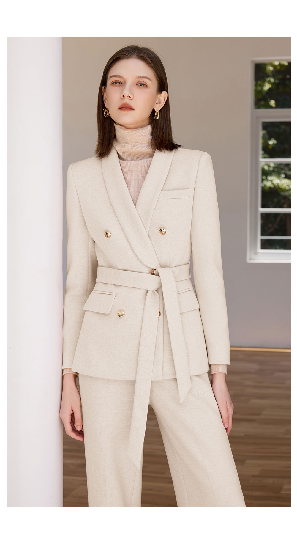 AD米白色正装女套装女2025秋冬新款显白显瘦职业装西服外套阔腿裤