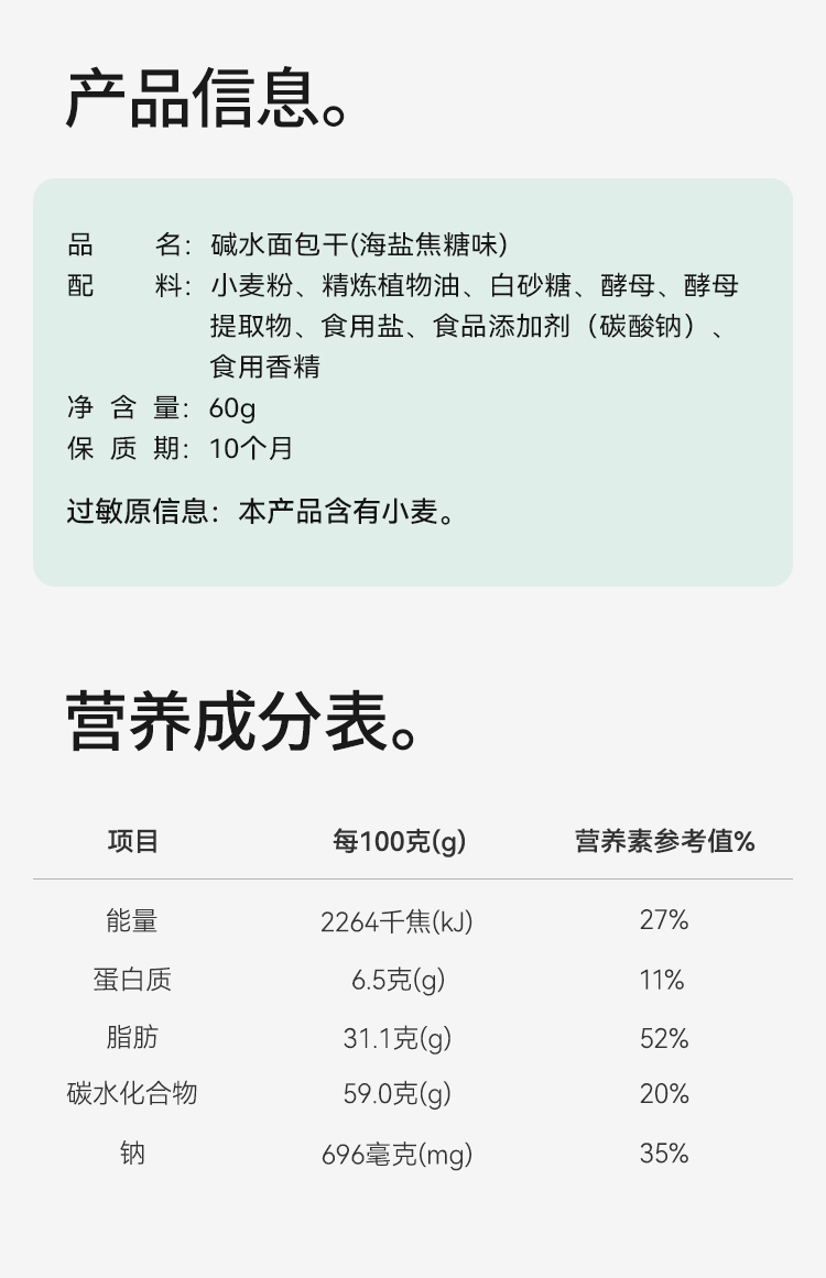 【好吃的】碱水面包干 海盐焦糖味 香脆可口 独立小包 方便携带 休闲零食 60g*4包装