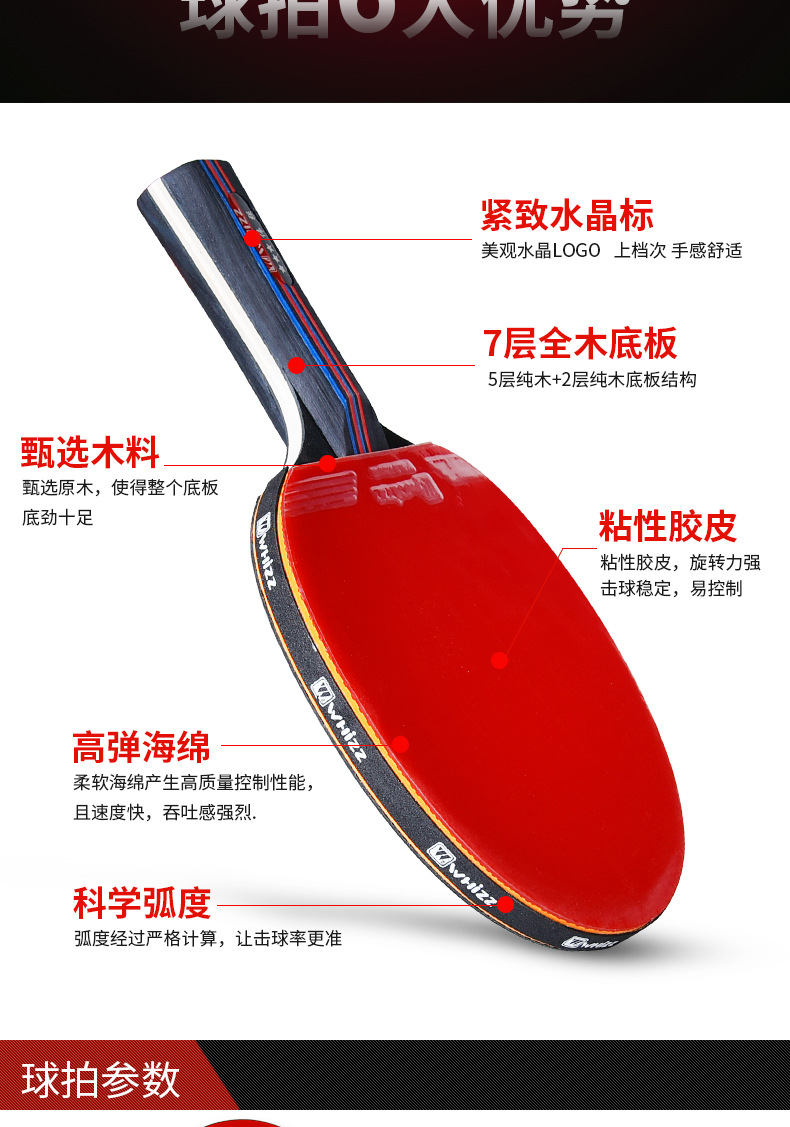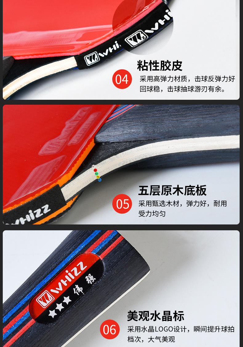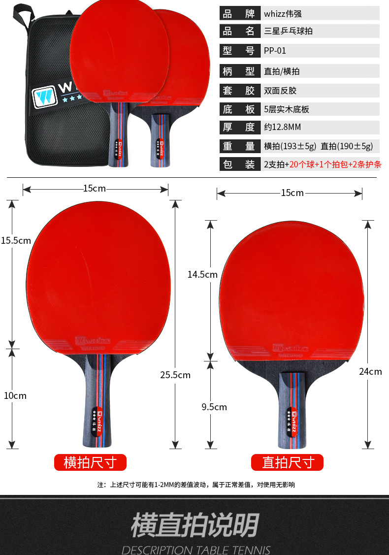 伟强三星乒乓球拍 横拍直拍耐打耐用乒乓球拍学生儿童训练比赛