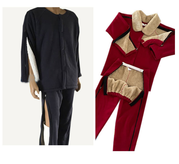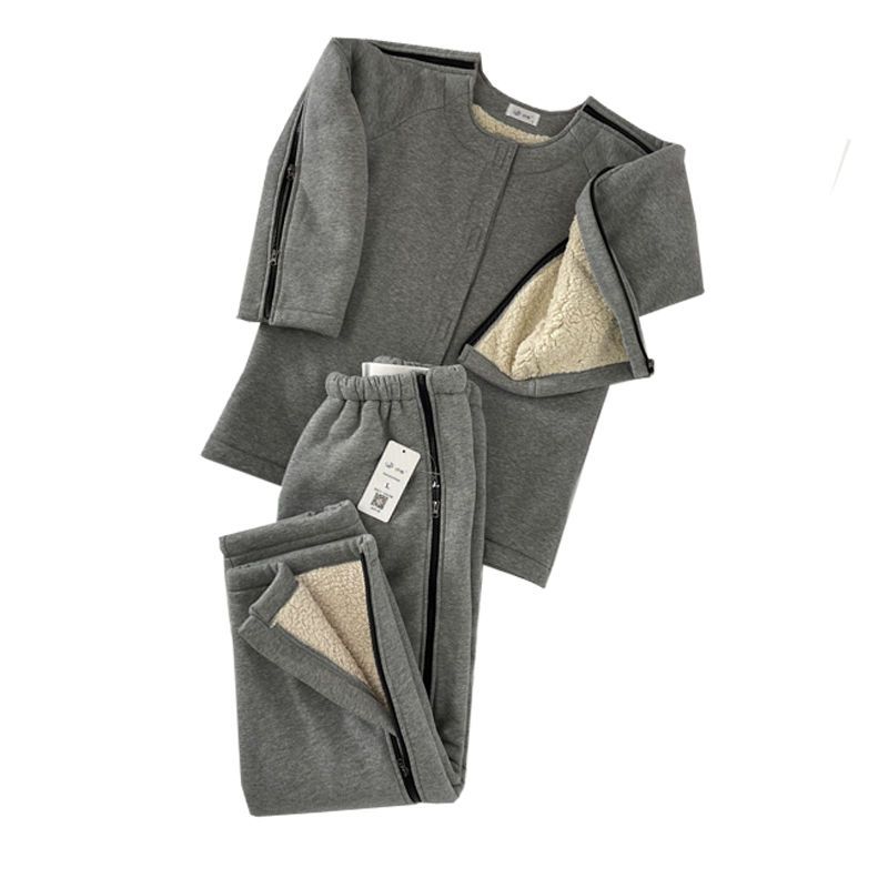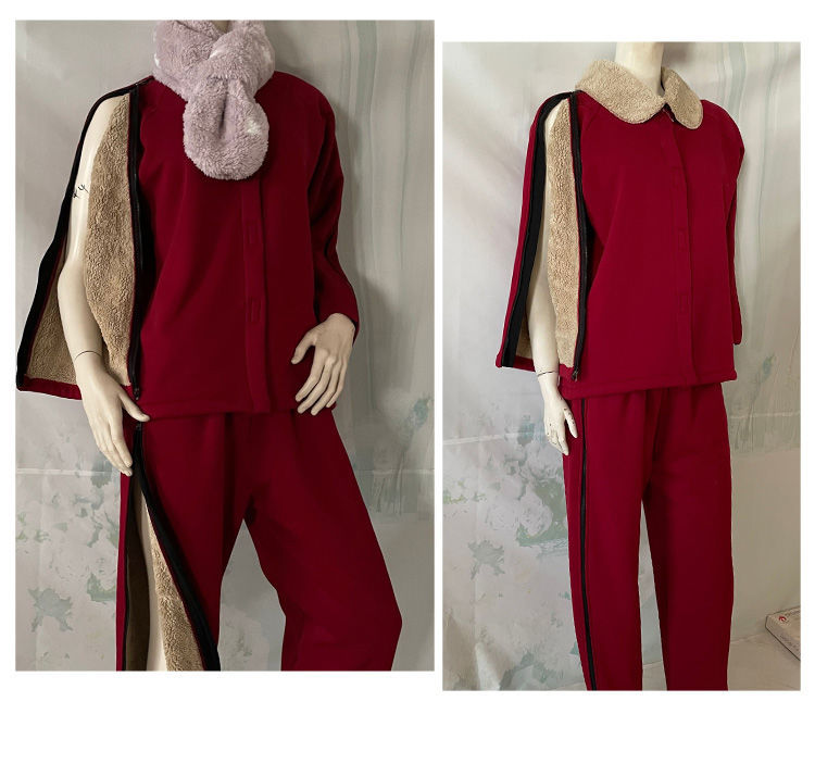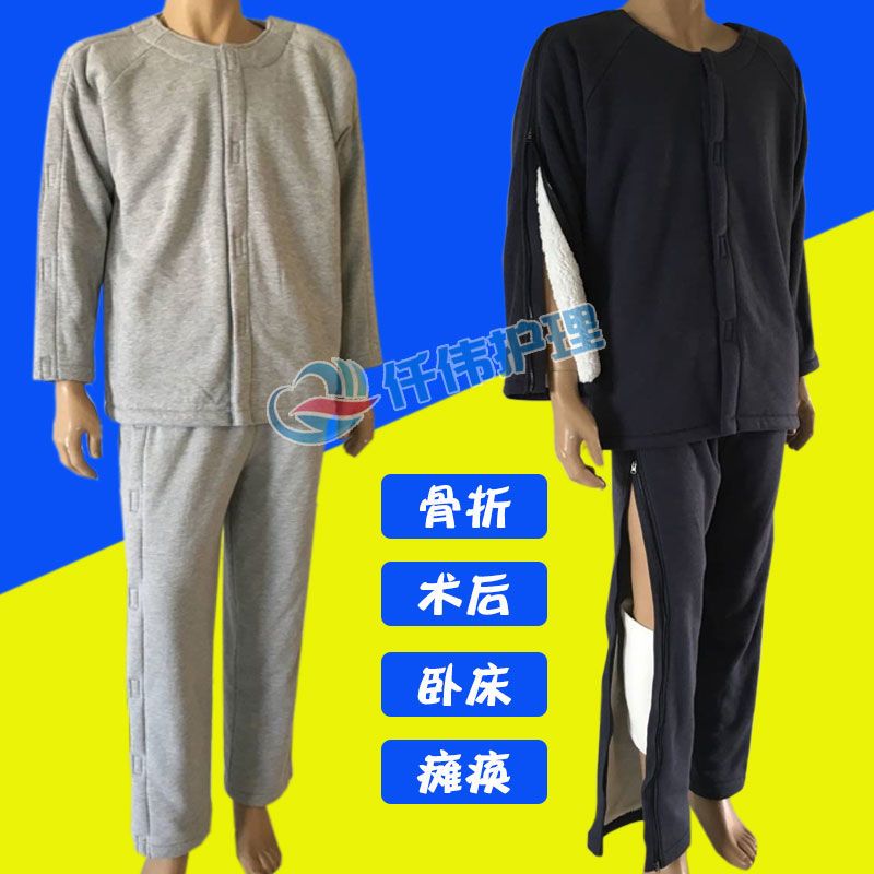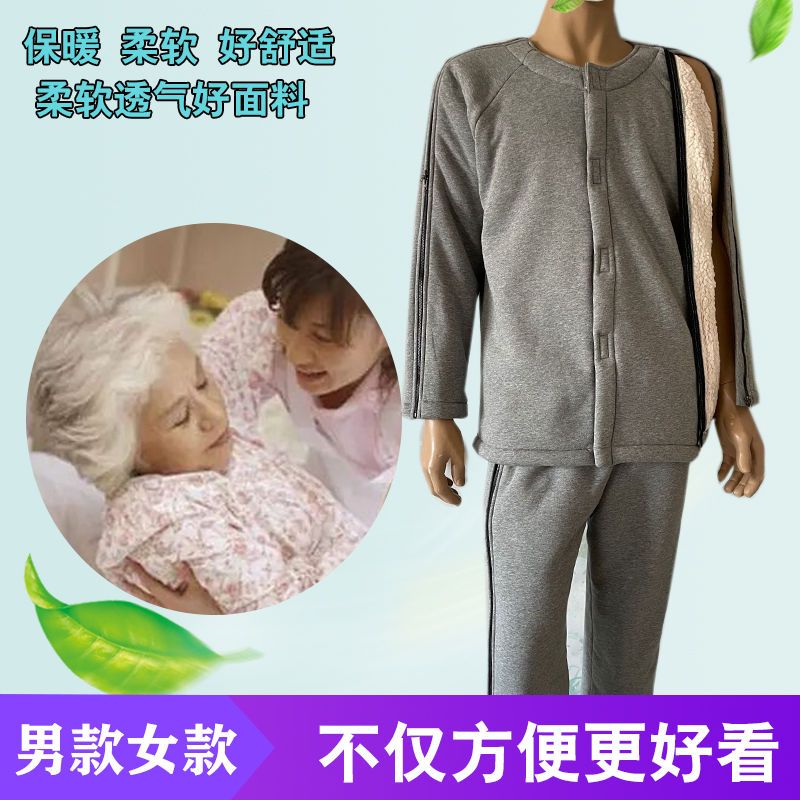 冬男女方便穿脱棉衣棉裤加厚绒瘫痪卧床老人骨折术后易穿脱护理服