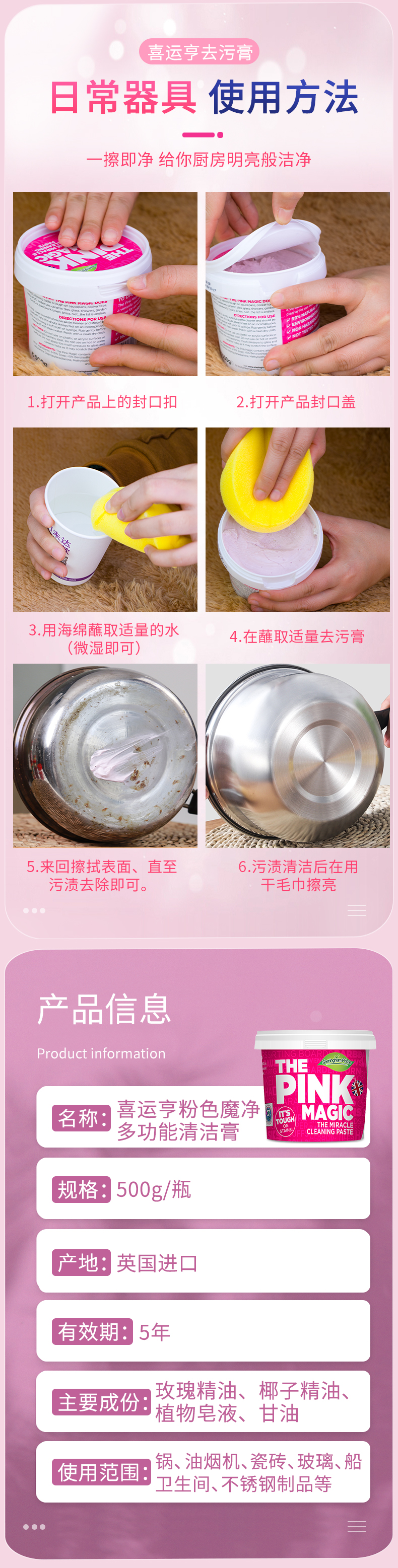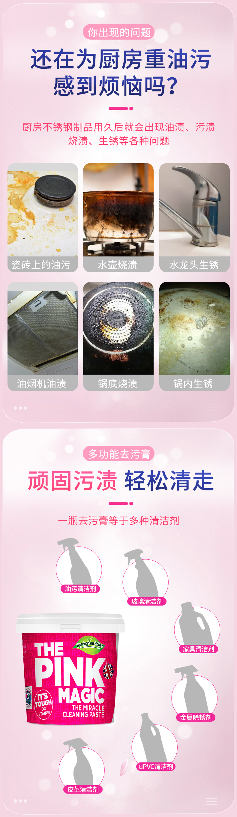 澳洲喜运亨粉色魔净去污膏 从厨房到浴室 从布艺到瓷器 一罐全搞定