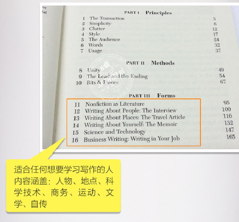 3.讲解全面,从如何准备写作到改进写作技能及风格等都有专门的指导篇章;