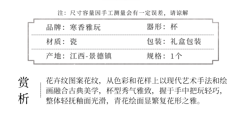 寒香雅玩青花花卉闻香杯(缺货)