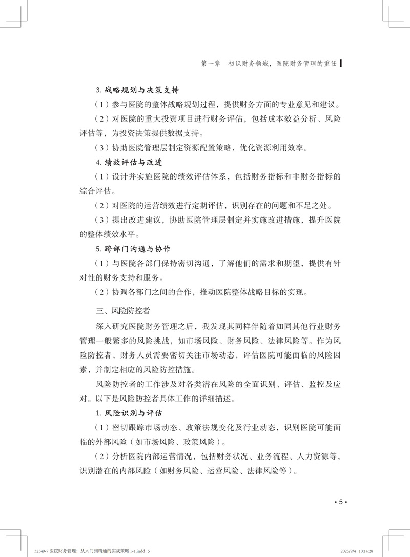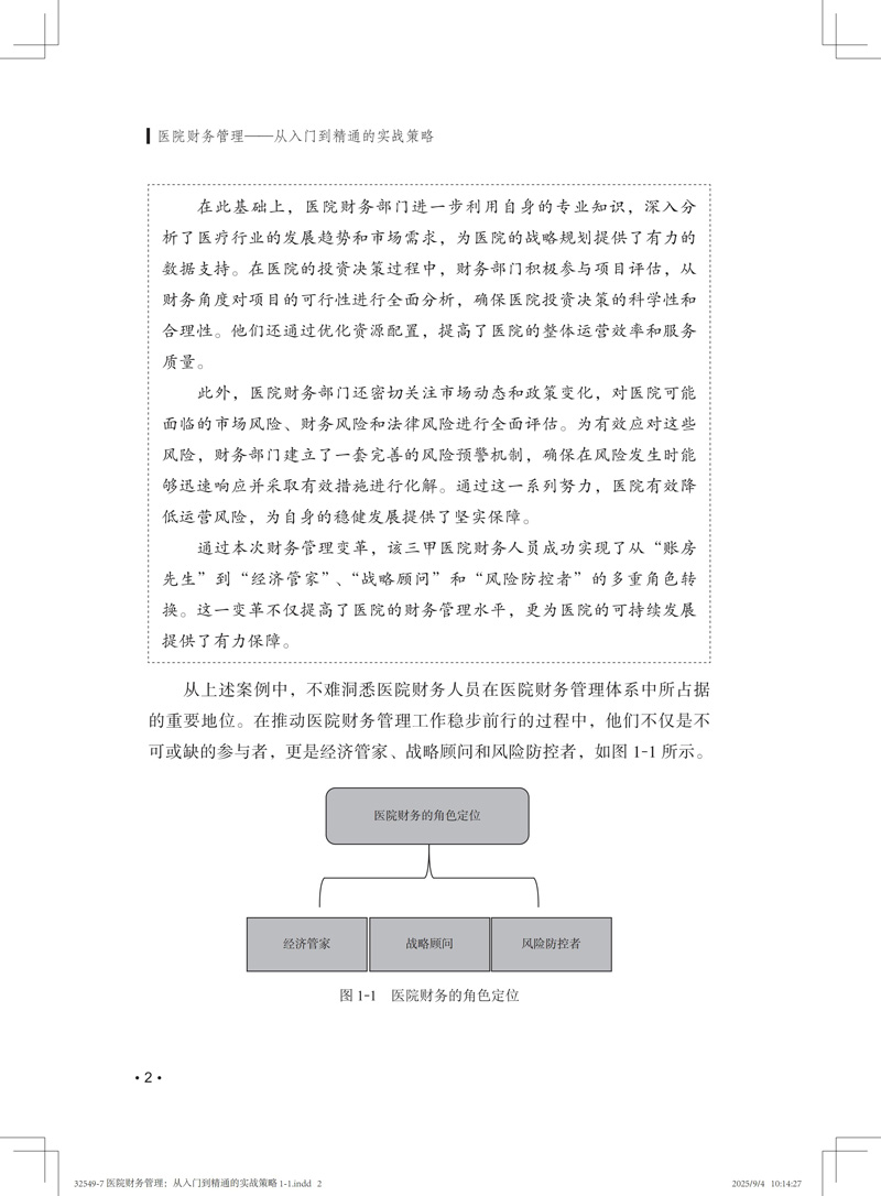 第一章 初识财务领域,医院财务管理的重任 1第一节 踏上医院财务之旅,明确角色定位 1第二节 财务管理对医院发展的关键作用 6第三节 深度理解医院财务管理的核心职责 12第二章 财务决策的智囊团 17第一节 数据驱动,为医院战略决策提供财务视角 17第二节 中长期目标的财务规划与执行策略 23第三节 利用财务数据优化医院资源配置 29第三章 财务全流程管理 34第一节 会计管理的精细化操作 34第二节 财务计划的制订与调整 40第三节 财务程序的优化与创新 48第四节 内部审计的严谨执行 54第四章 成本控制的艺术 60第一节 深入剖析医院成本结构 60第二节 制定并执行成本控制策略 65第三节 实现成本节约与效益提升的双赢 71第五章 预算管理的实战演练 75第一节 年度财务预算的精心编制 75第二节 预算执行情况的实时监控 81第三节 预算调整与优化的灵活应对 87第六章 经济与财务标准的建立与执行 95第一节 制定符合医院特点的财务标准 95第二节 强化财务程序的合规性管理 99第三节 风险控制与财务安全并重 103第七章 医院财务管理流程优化与效率提升 111第一节 现有财务流程的深入剖析 111第二节 引入先进管理工具与技术 116第三节 实现财务管理的高效运作 120第八章 全国医院的财务管理蓝图 126第一节 担任财务部部长的新挑战 126第二节 全国医院财务管理体系的构建 130第三节 成本控制、固定资产管理等多维度的协同作战 134第九章 会计核算与监督的严谨执行 140第一节 确保会计核算的准确性与及时性 140第二节 强化财务监督职能,防范风险 145第三节 为医院经营决策提供可靠依据 149第十章 审计监察的利剑出鞘 155第一节 内部审计与监察的重要性认识 155第二节 审计监察工作的全面开展 159第三节 推动医院财务管理的持续改进 166第十一章 医院财务协同管理的纵横贯通 172第一节 财务与临床、运营部门的深度协作机制 172第二节 医保支付改革下的业财联动策略 180第三节 物资供应链与财务流程的集成管理 181后 记 184