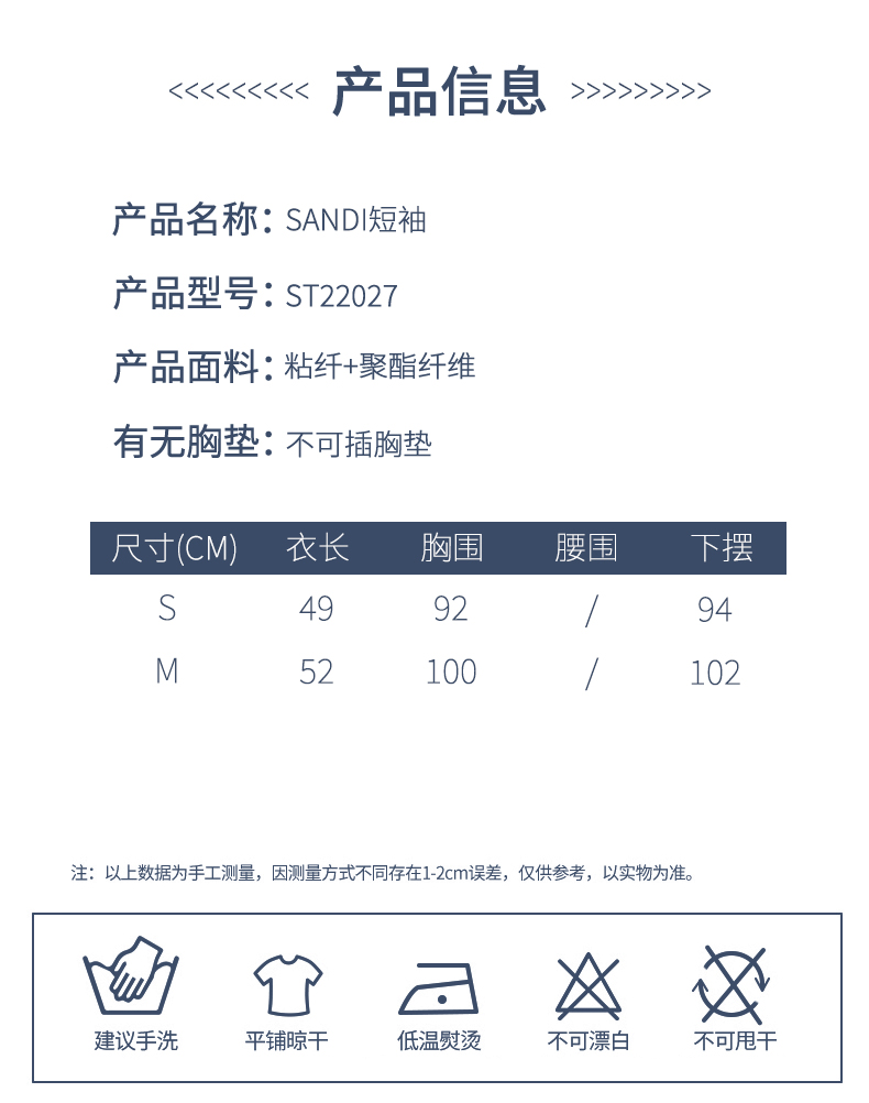 SL25007 sandi短袖不可插胸垫