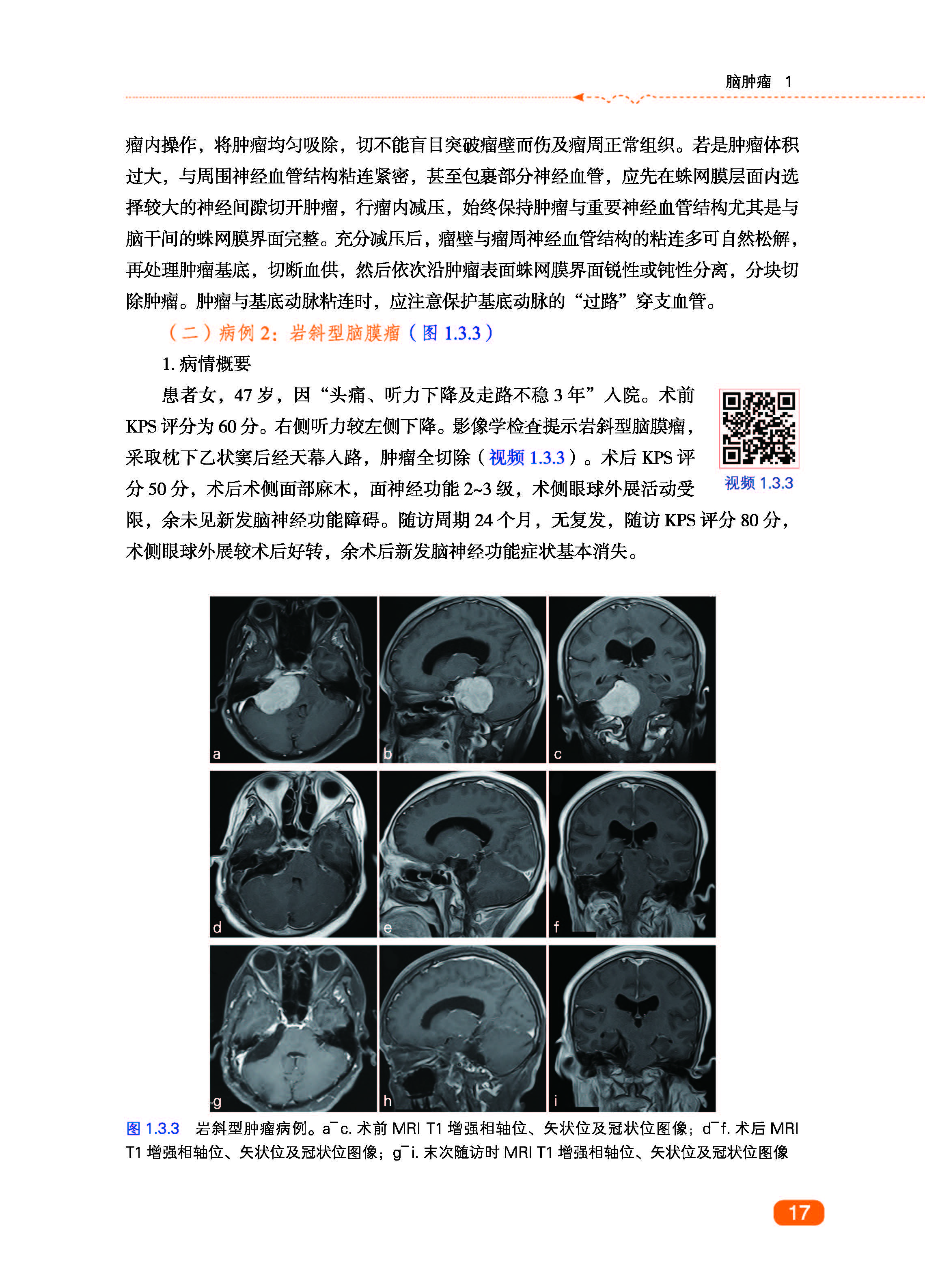 3. 内容简介:本书邀请全国30余位神经外科专家作为编者团队,内容是对各位编者独特的诊疗思路及方式、技术技巧进行展示,令读者通过学习典型病例,从而在临床上融会贯通,达到举一反三的目的。具体内容主要分为三大部分:一为概述,对相应疾病给出简要描述,如定义、症状、发病率等;二为典型病例,分为病情概要和手术技术两部分,病情概要中写明性别、年龄,与手术相关的主诉、既往史、佐证诊断的典型临床表现和关键辅助检查、手术适应证和手术方法,手术技术部分重点写明手术入路和手术要点;三为思路点拨,是本书的重点,由病例引出,上升至对整个疾病的叙述,重点放在经验与教训上,突出个人学术思想。读者通过随文二维码可获取专家采访视频或音频,更直观感受专家风采。