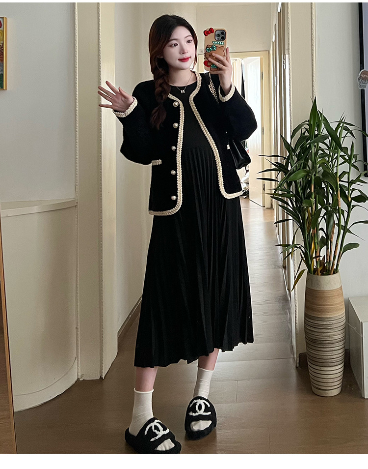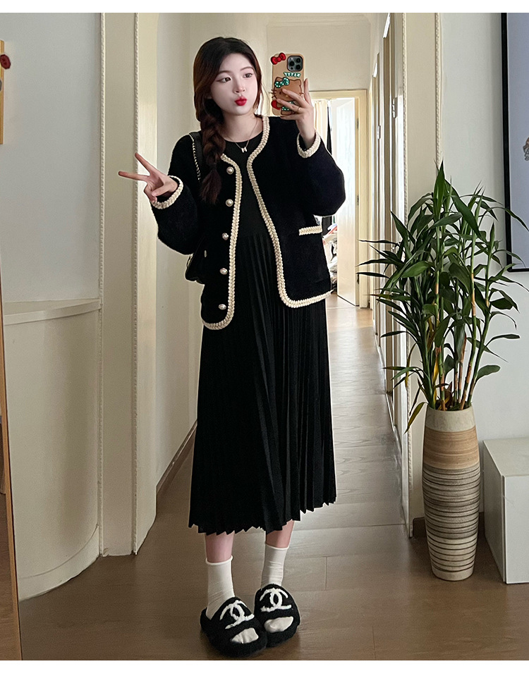 【时尚显瘦辣妈❗️秋装套装】新款秋季小香风外套百褶连衣裙洋气时髦秋冬 商品图3
