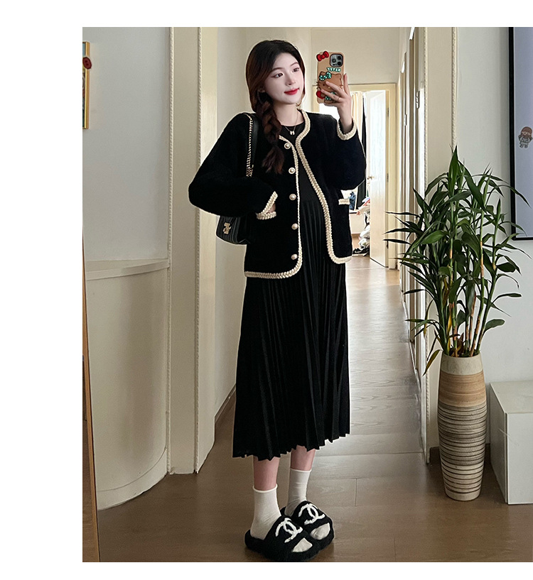 【时尚显瘦辣妈❗️秋装套装】新款秋季小香风外套百褶连衣裙洋气时髦秋冬 商品图4