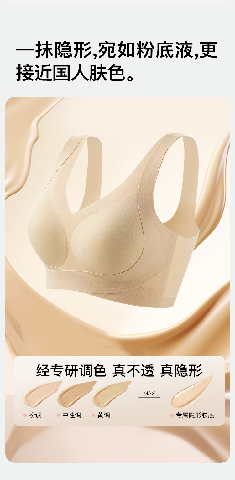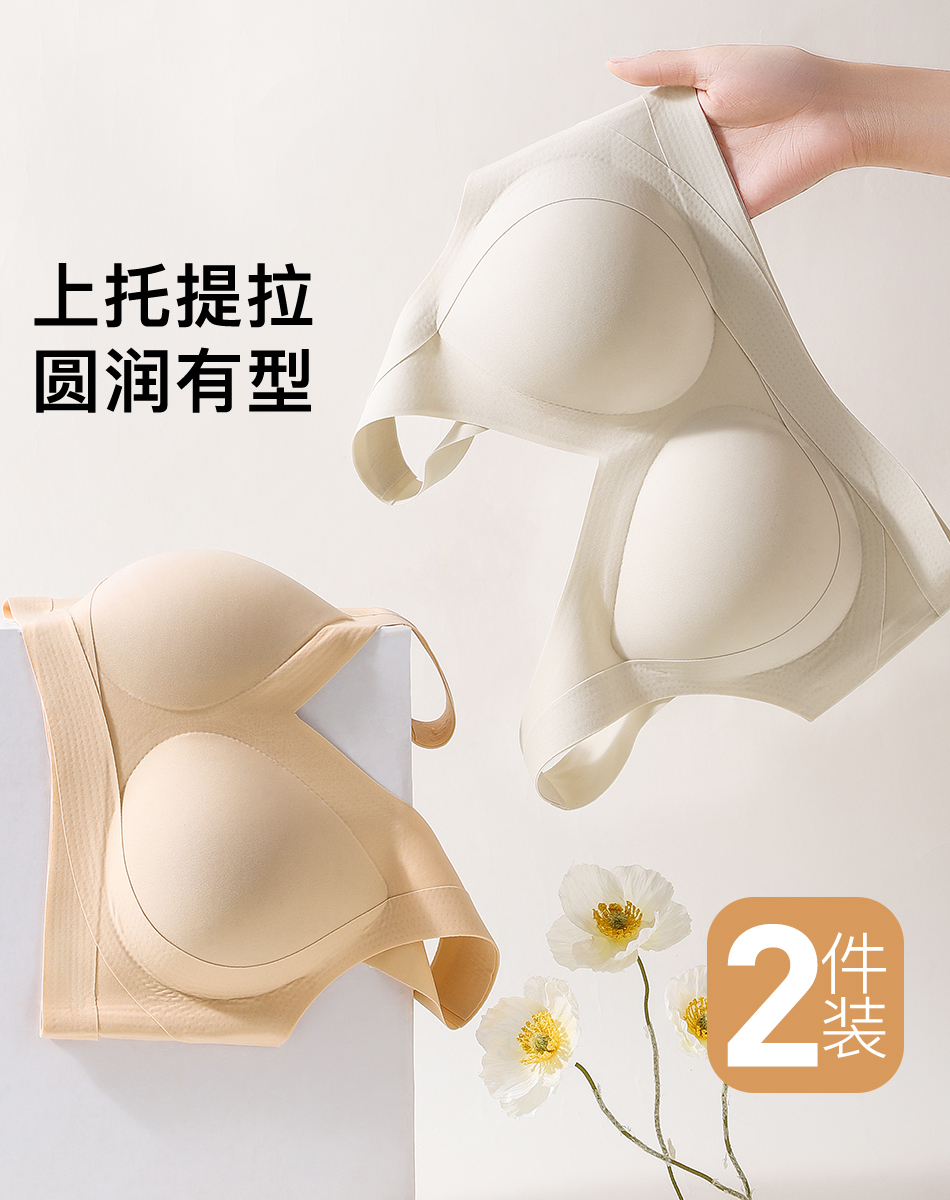 【2件装】隐形粉底液内衣女聚拢交叉提拉防垂无痕美背收副乳文胸诗情舞韵