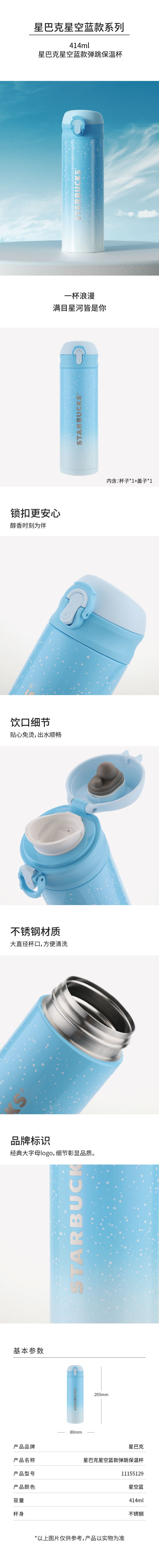 星巴克星空蓝款弹跳保温杯414ml