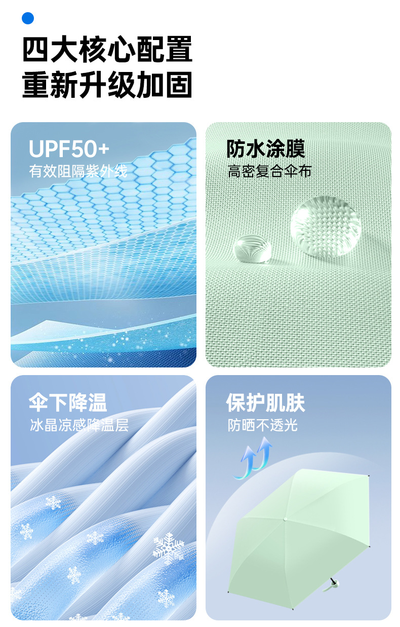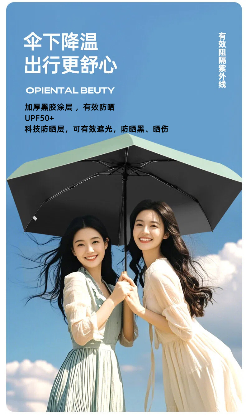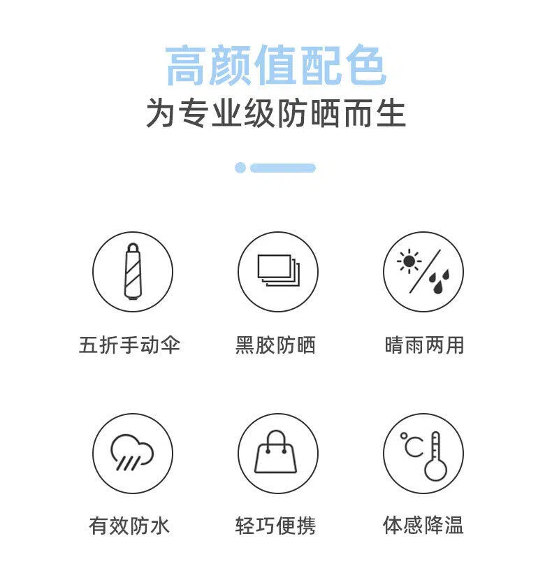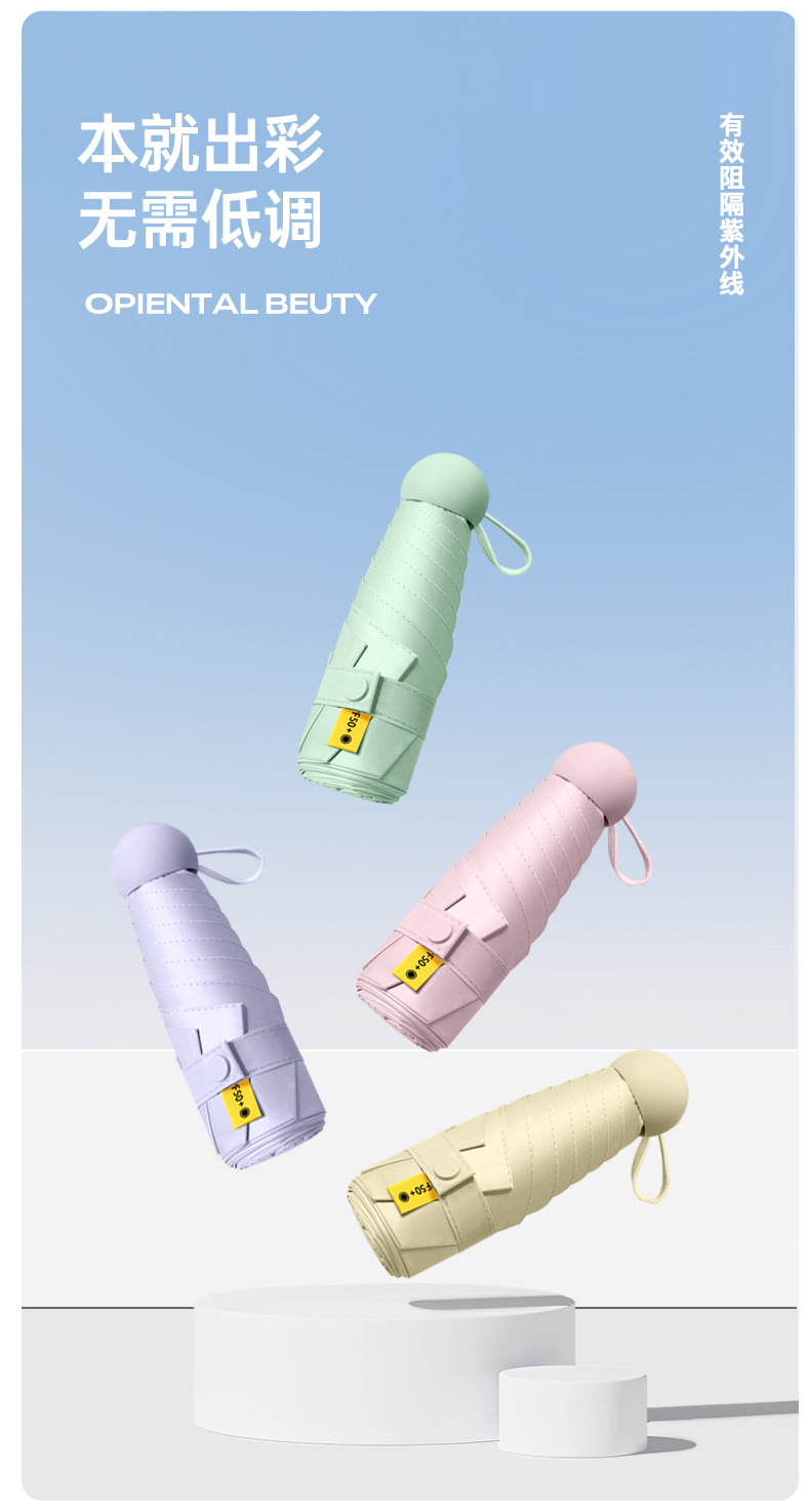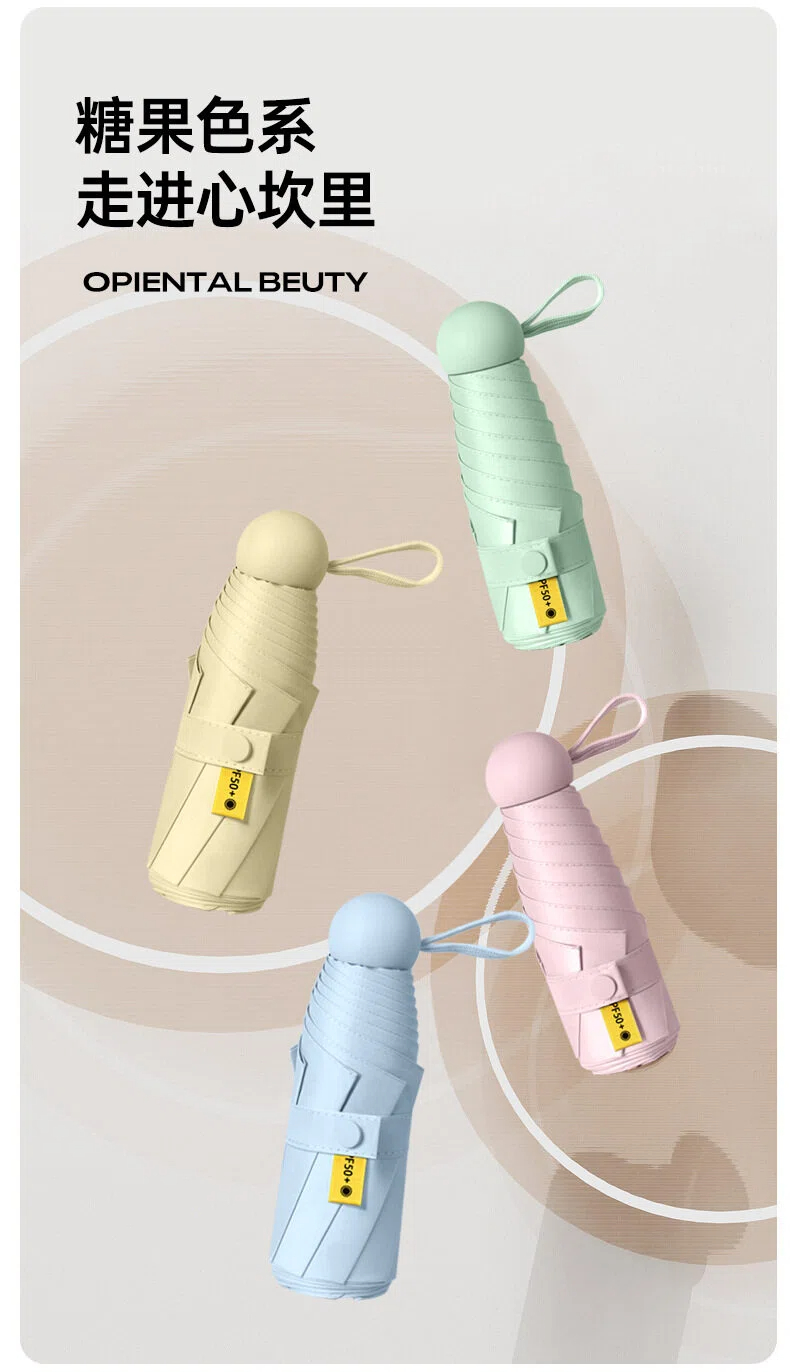 『任选两件69.9元』【糖果色系 7色可选】mini便携黑胶晴雨两用防晒伞 五折六骨 加厚伞布