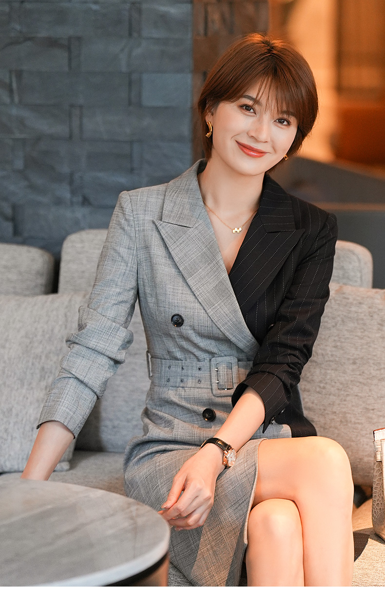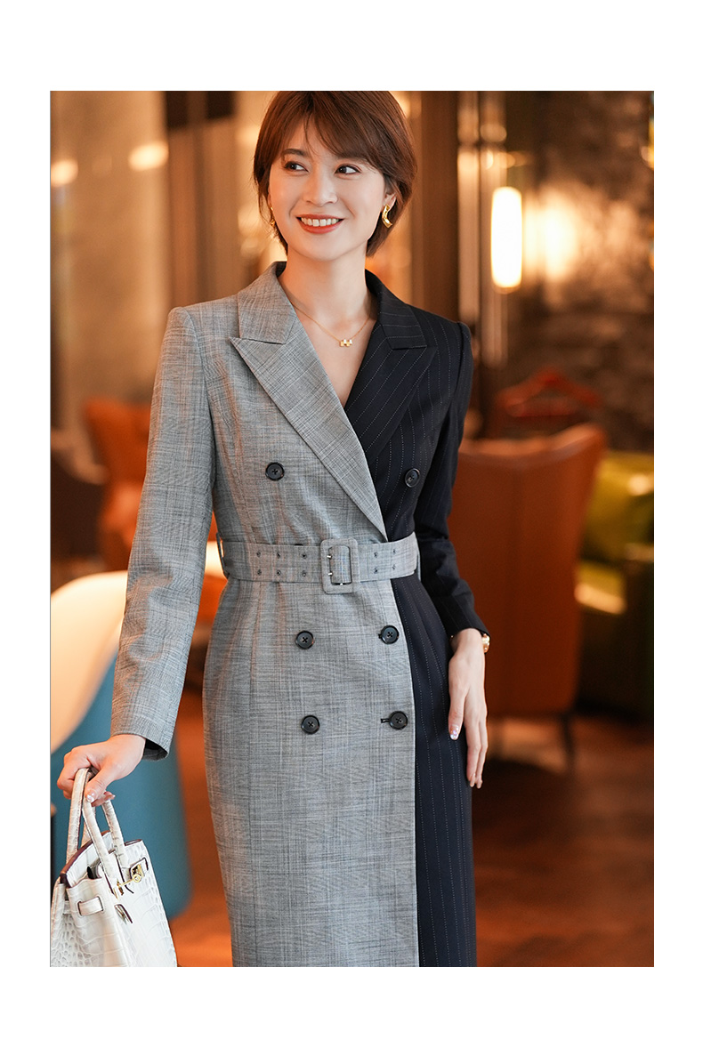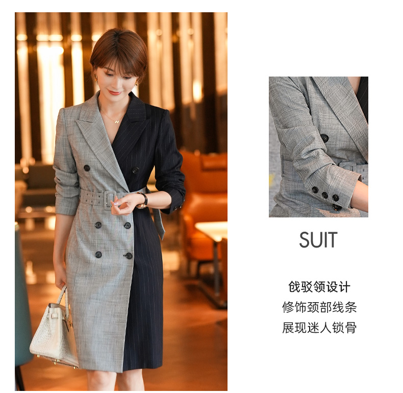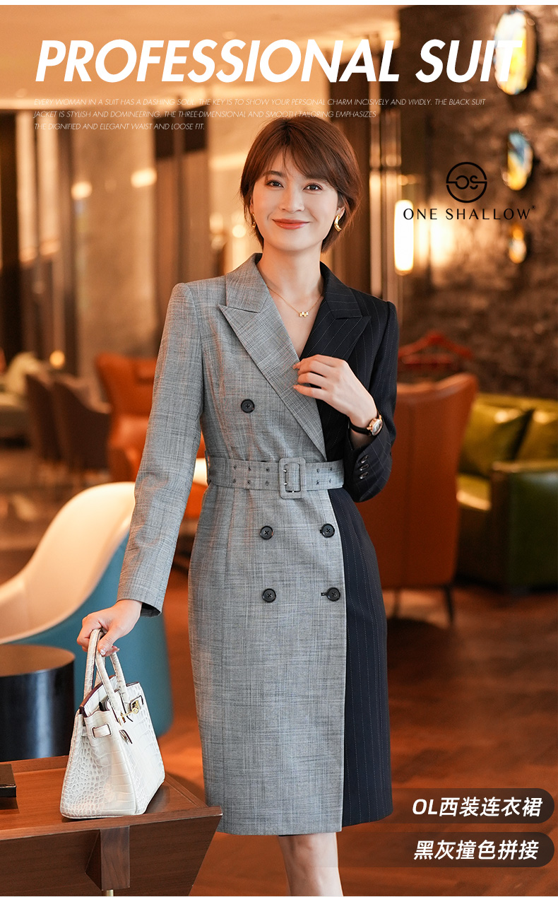 西装连衣裙女2023秋装新款职业通勤拼接气质收腰裙子