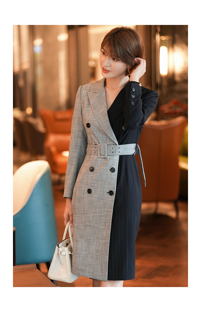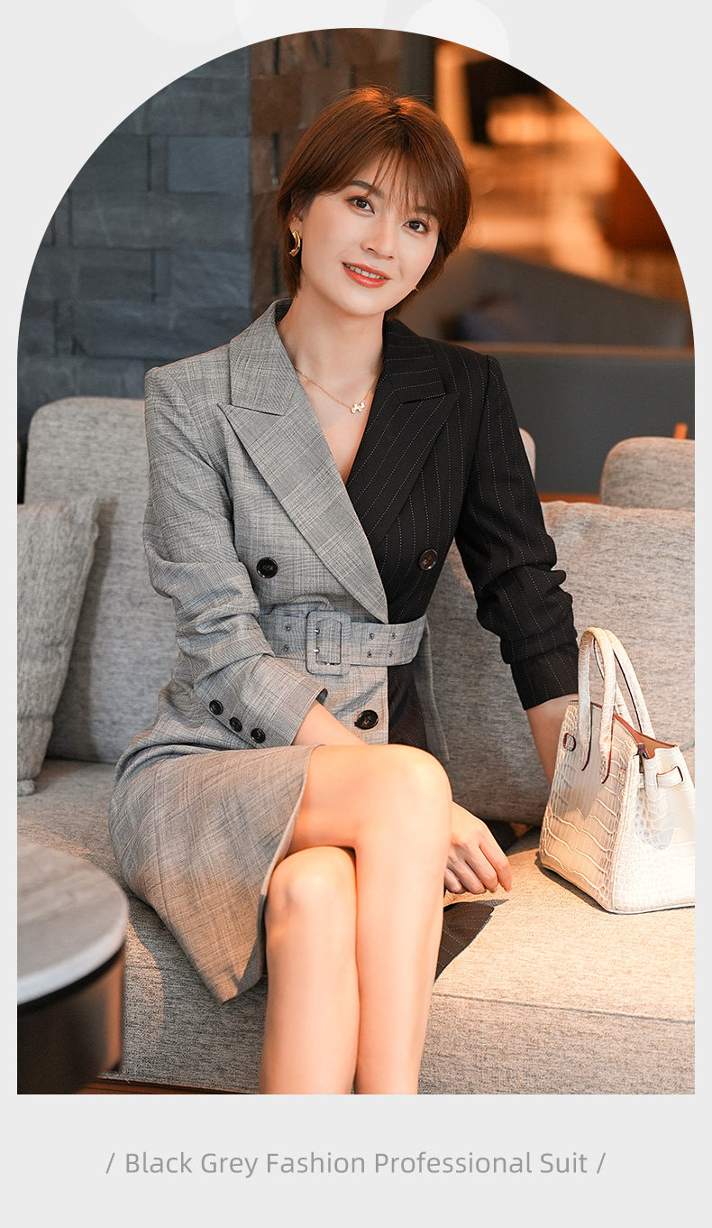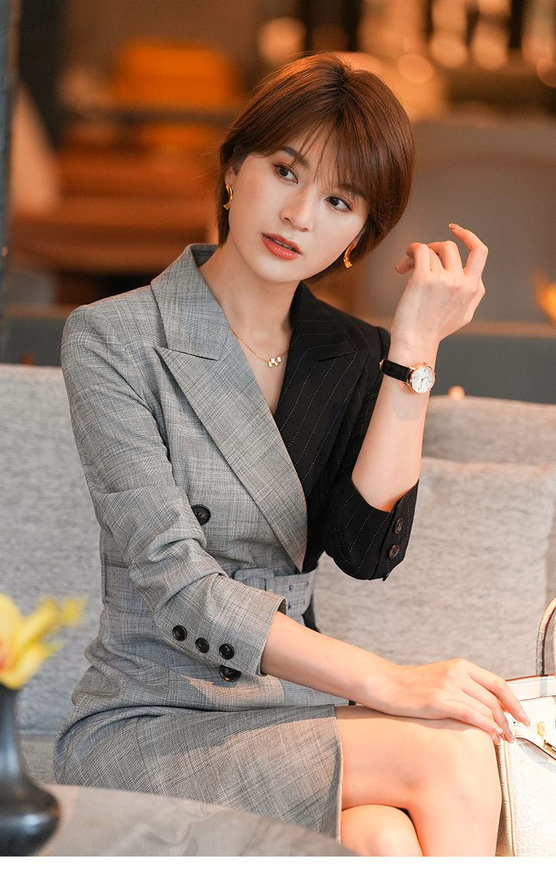 西装连衣裙女2023秋装新款职业通勤拼接气质收腰裙子