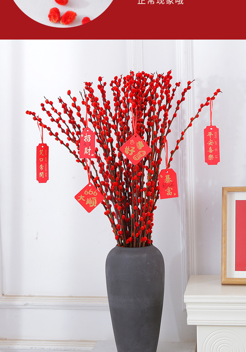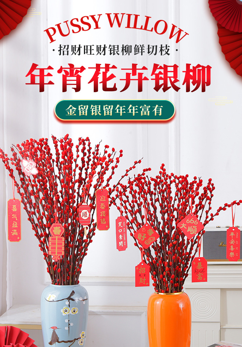【银柳年年有!越过越富有】银柳真花鲜枝客厅干花摆件红色年宵花卉水培植物室内干枝红柳,招财旺财银柳鲜切枝。ry