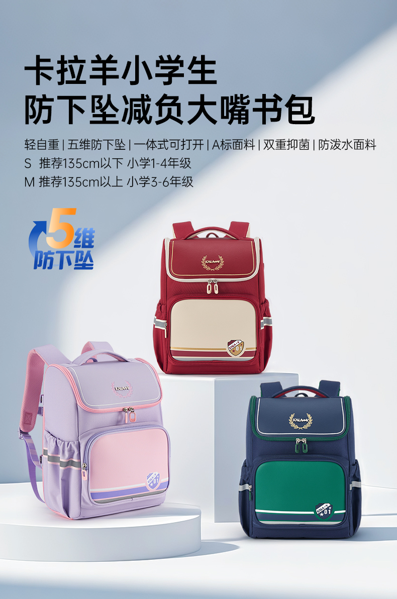 卡拉羊小学生1-6年级5维减负防下坠超轻抑菌大嘴书包光辉CX2281+2550