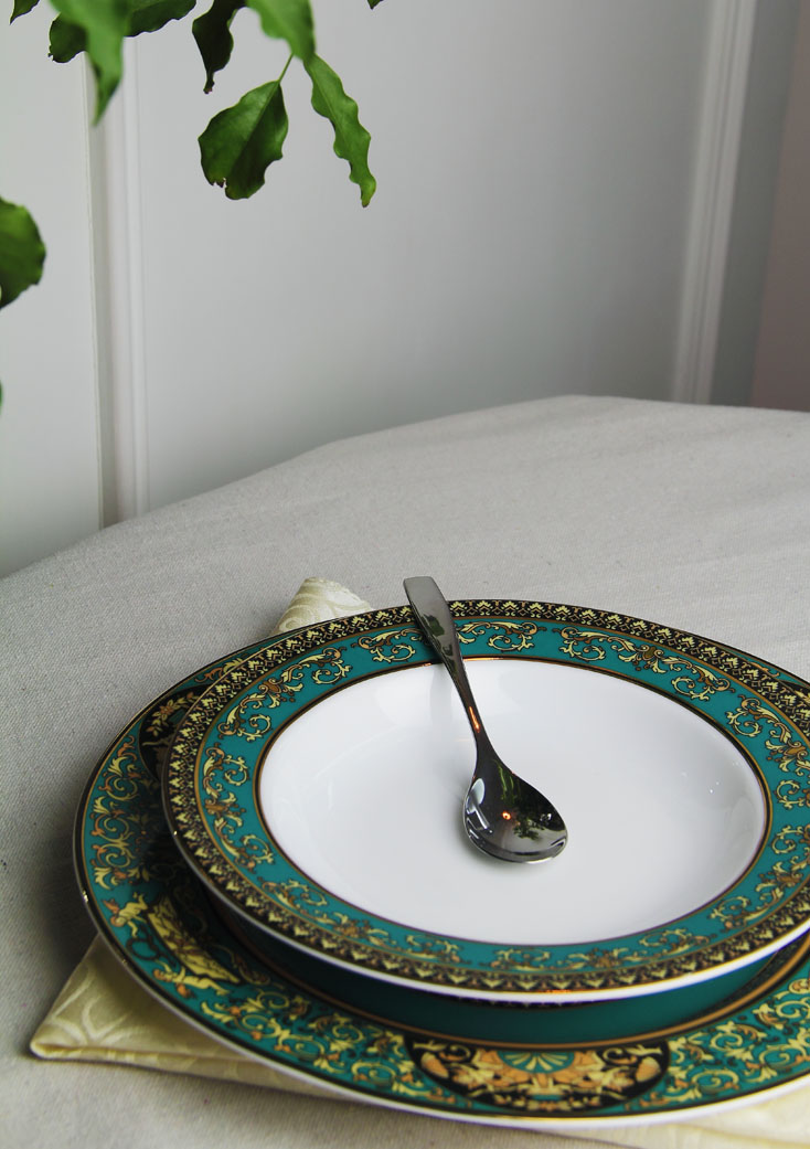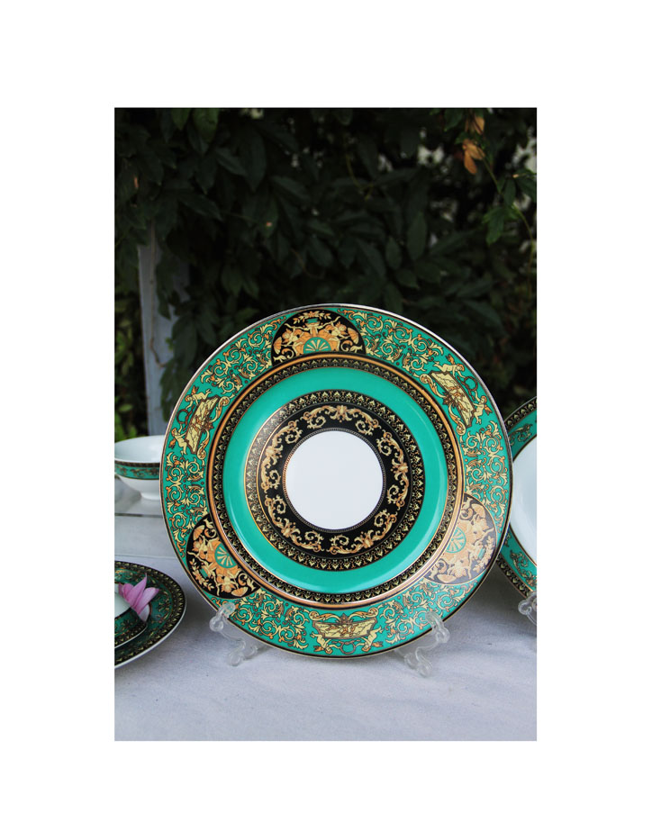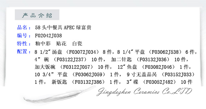 景德镇陶瓷国瓷红叶58头APEC绿金富贵餐具