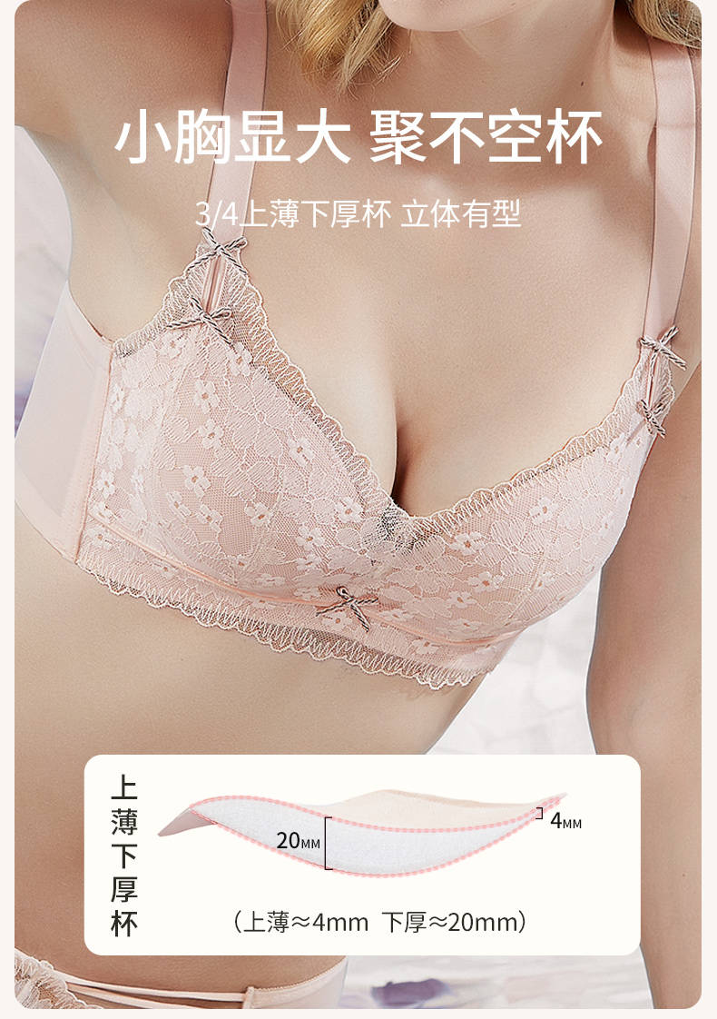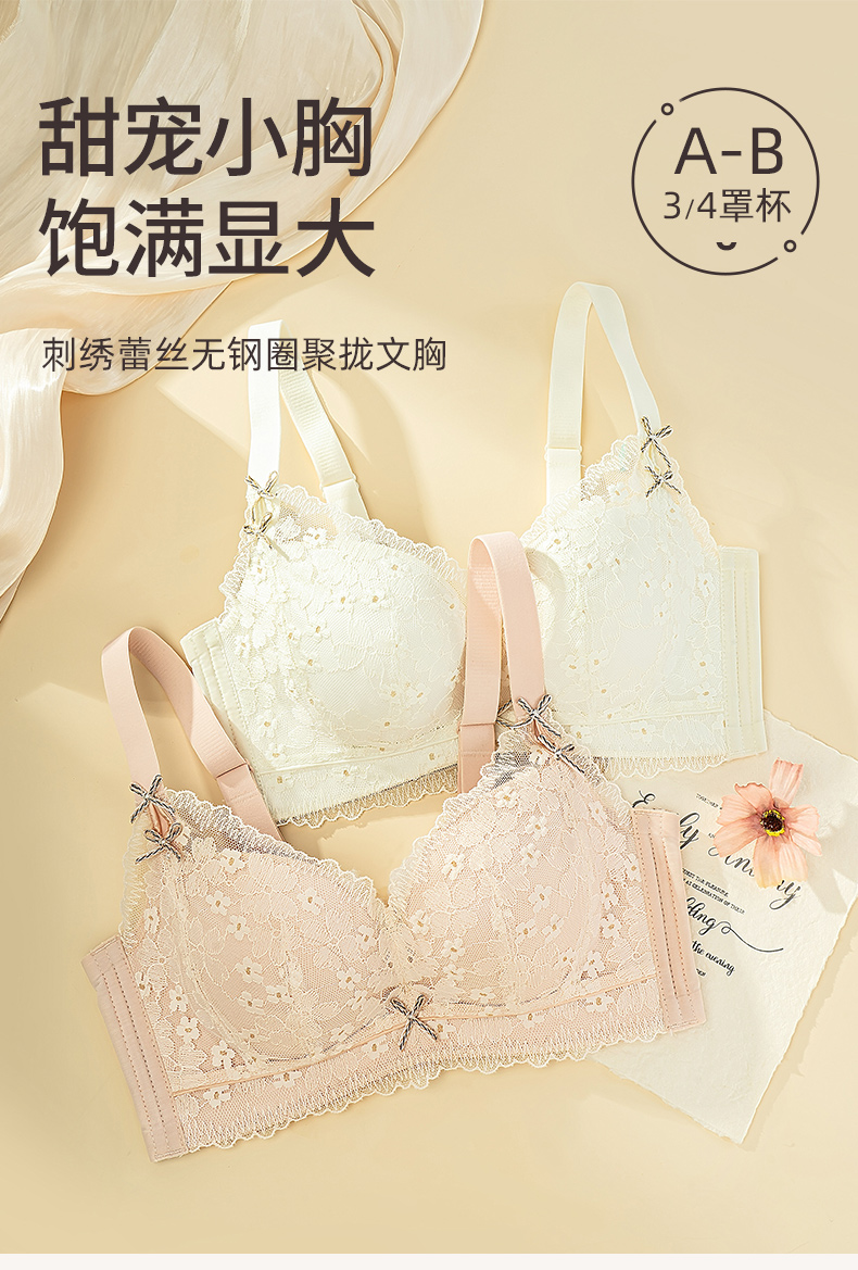 雅黛丽内衣女小胸聚拢收副乳防下垂文胸无钢圈性感美背调整型胸罩