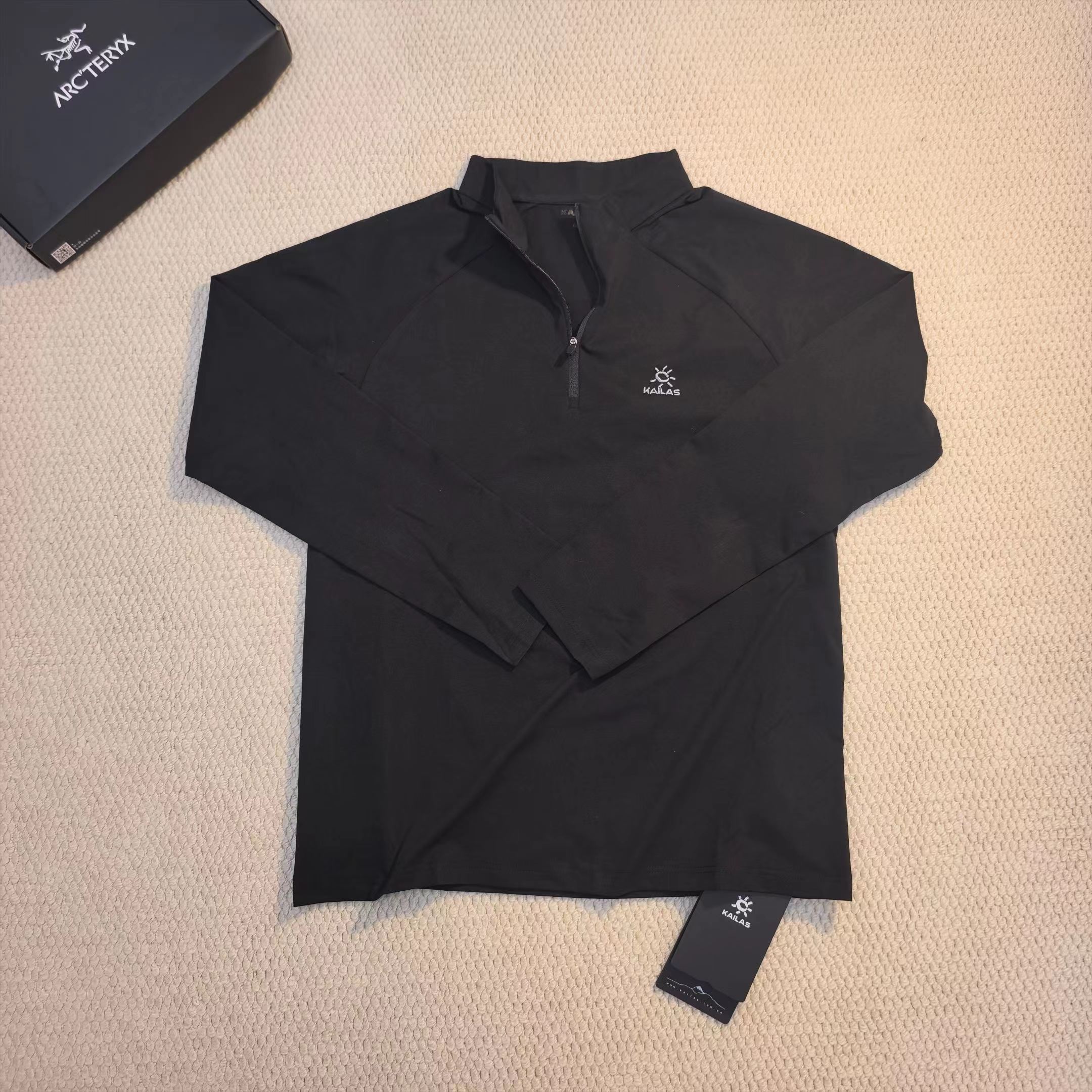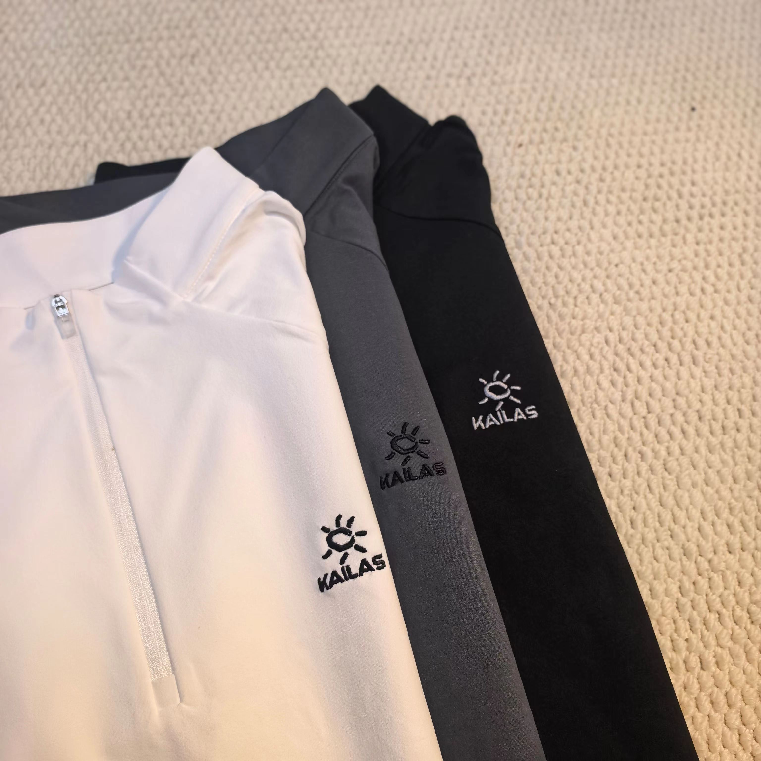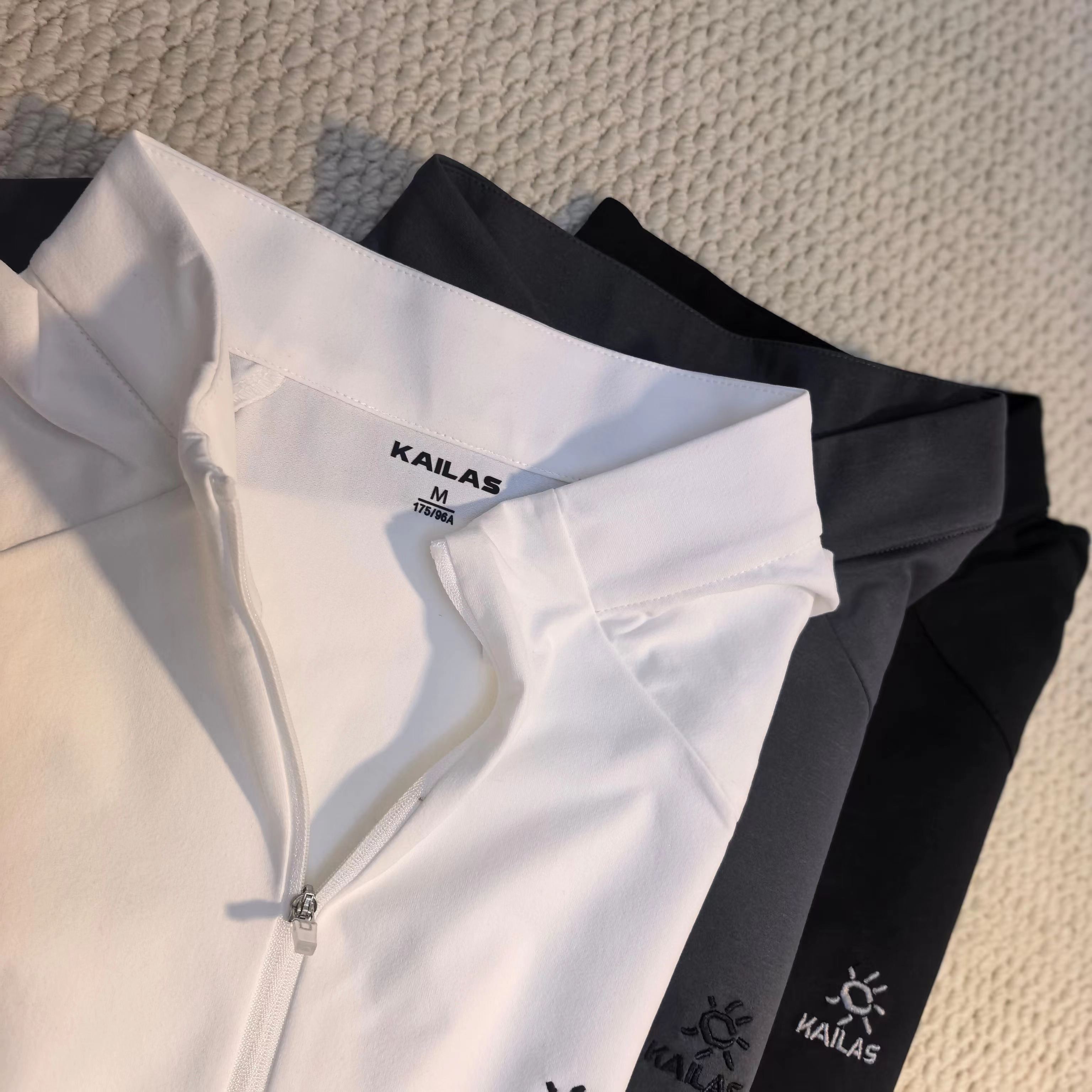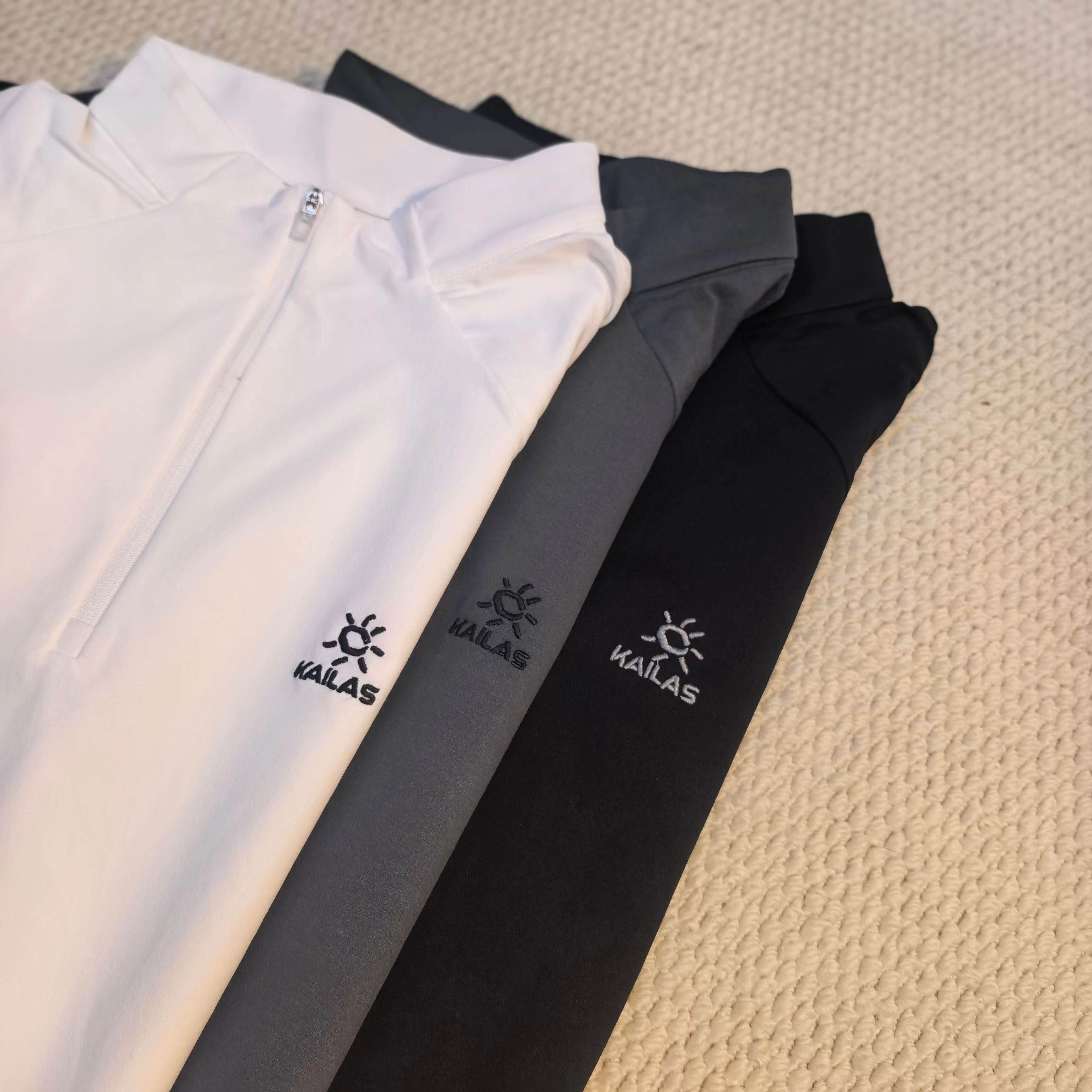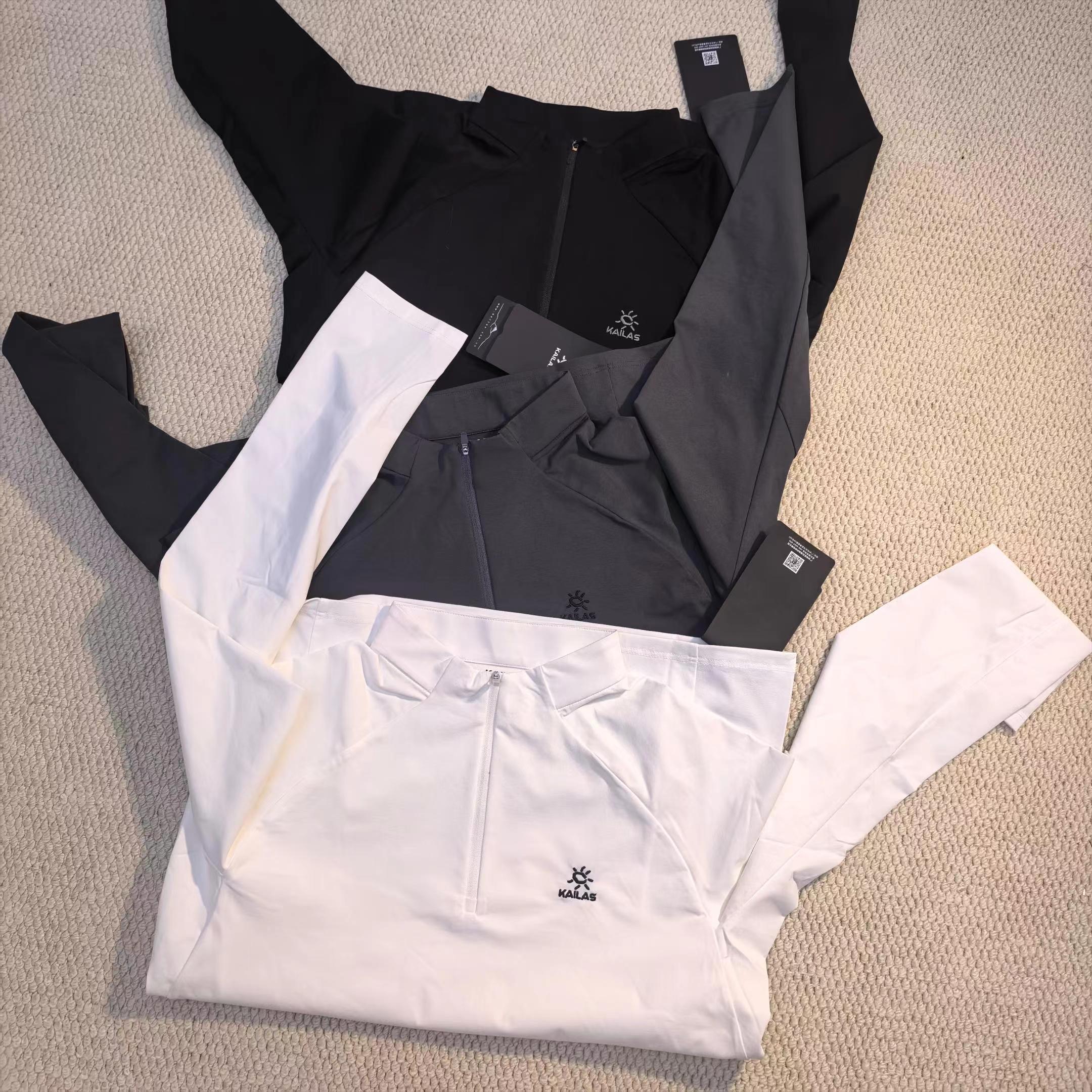 运动户外速干吸汗排汗半开胸立领长袖T恤,速干排汗:采用拒水速排科技面料,汗水刚冒出来,十秒内就能迅速排干,全程不粘身哦。就算是高强度的登山运动或者长时间徒步,衣服也能始终保持干爽,让你告别湿闷黏腻。防晒耐用:UPF50+,能有效阻隔高海拔的强紫外线,减少晒伤风险,就像给皮肤撑起了一把隐形的保护伞。而且面料还很耐磨,不用担心在户外被刮坏,使用寿命超长。半开胸立领:半拉链设计超方便,热了拉开快速散热,冷了拉上锁住温暖,穿脱也轻松。立领不仅能防风,还能有效防止紫外线伤害颈部,细节满满。插肩袖+立体拼接:插肩袖和立体拼接的工艺,让活动更加灵活,无论你是攀岩、登山还是做其他大幅度的运动,都不会有束缚感。精致刺绣:胸前精致的刺绣logo,立体感十足,简约又好看。登山徒步风:搭配专业的登山裤和登山鞋,再背上登山包,妥妥的专业户外装备,让你在登山徒步时舒适又自在。运动休闲风:配上运动裤和运动鞋,日常运动、跑步、健身都很合适,出街也能轻松成为焦点,时尚又有活力。叠穿搭配:春秋季可以在外面搭配冲锋衣或者薄外套,增加保暖性和层次感;冬天还能作为内搭,在保暖的同时保持干爽。