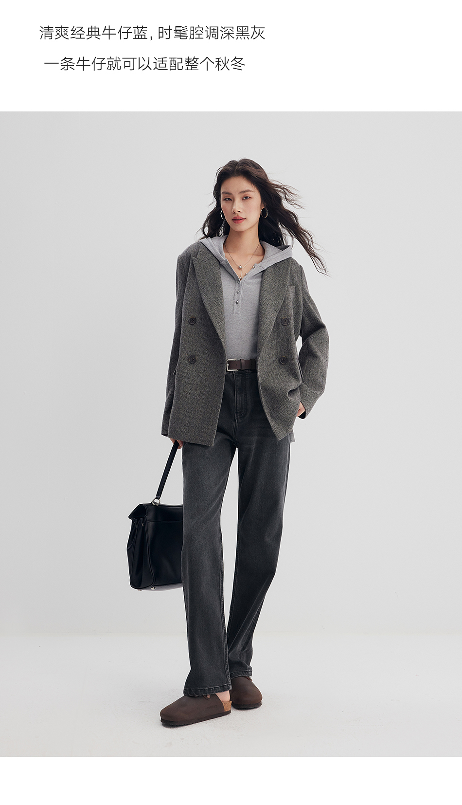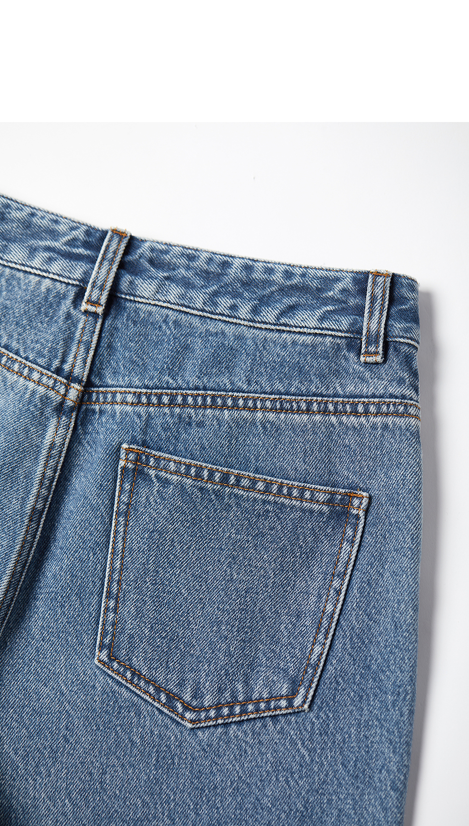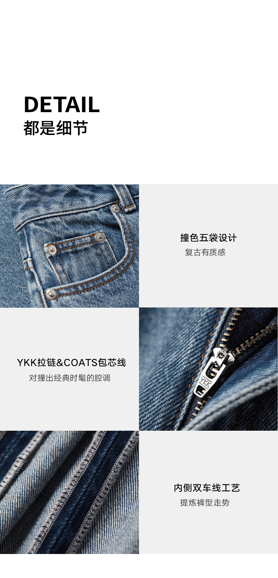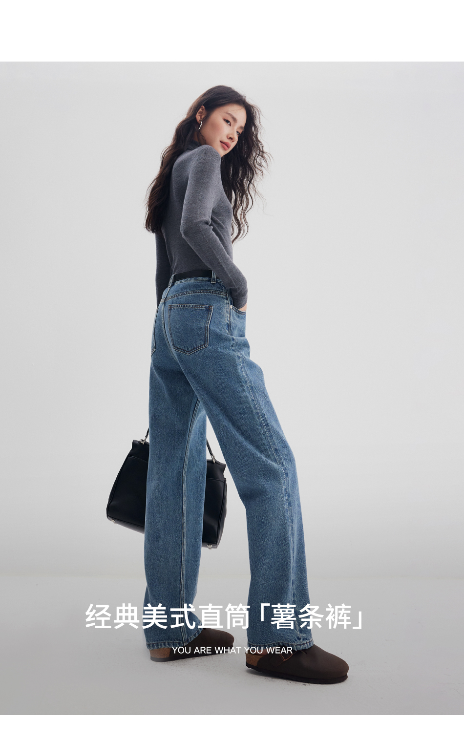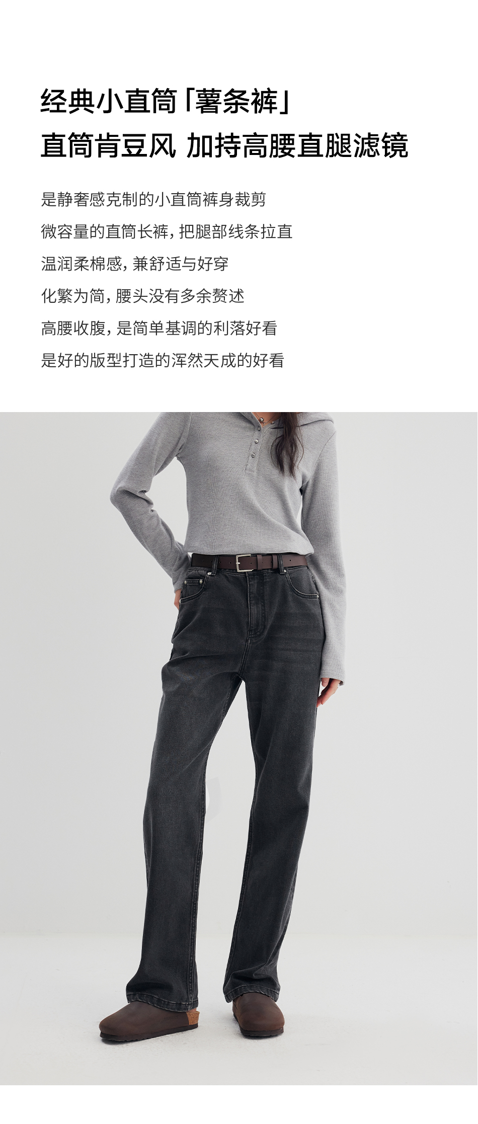 棉仓356619006-初棉肯豆裤薯条裤经典美式高腰瘦直筒牛仔裤