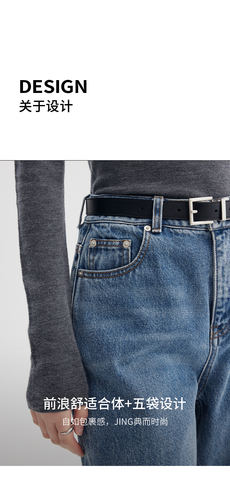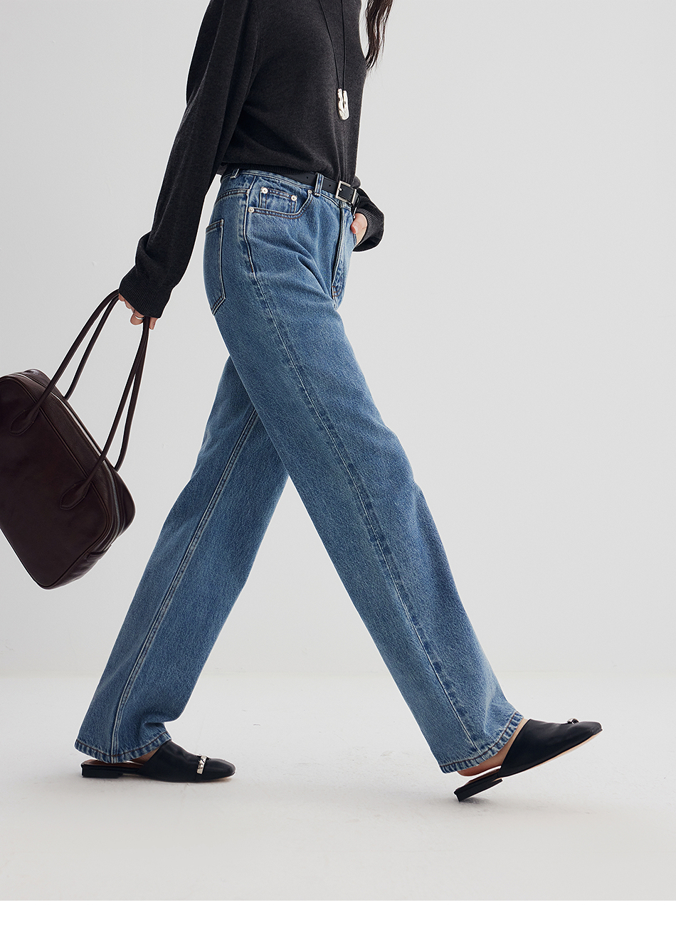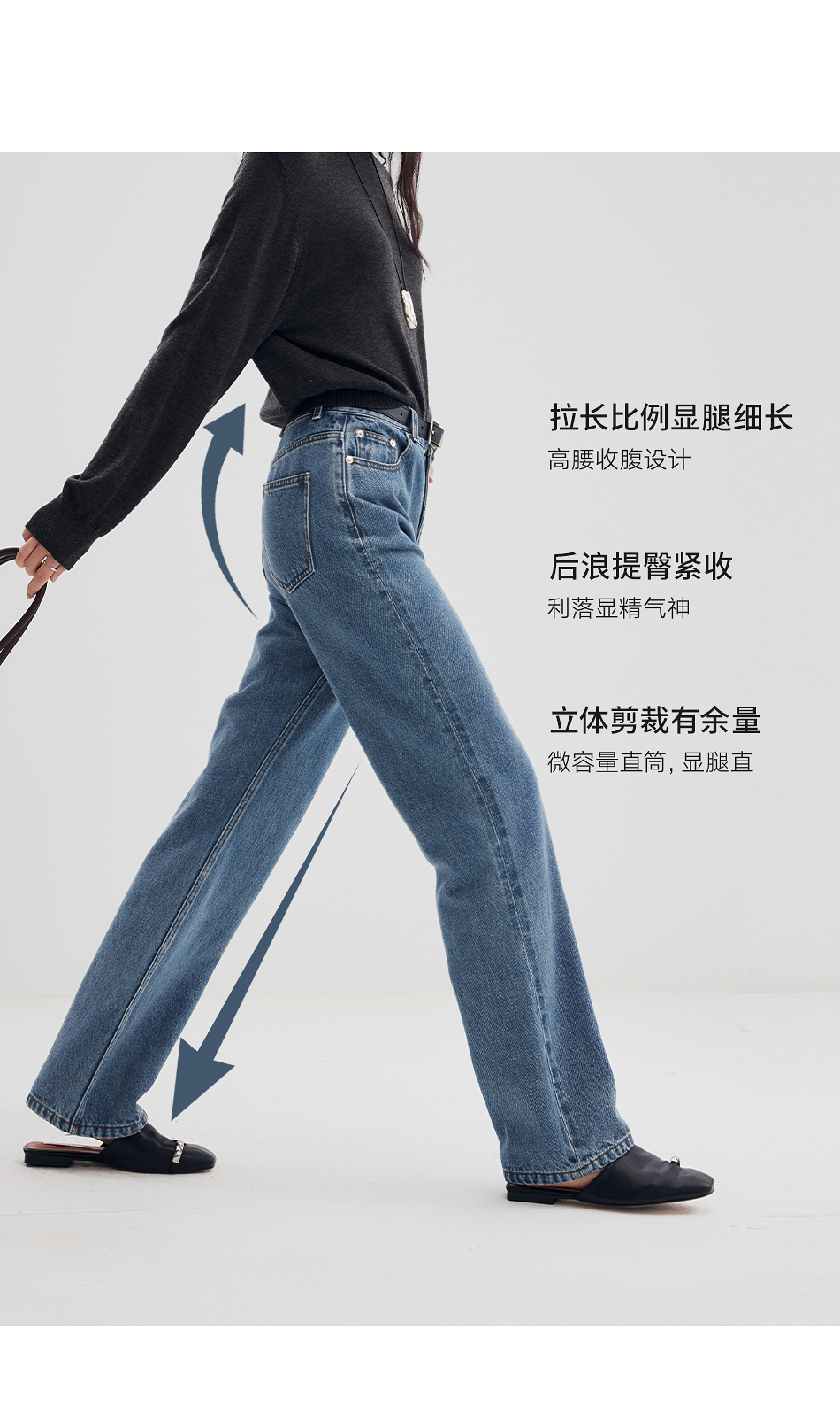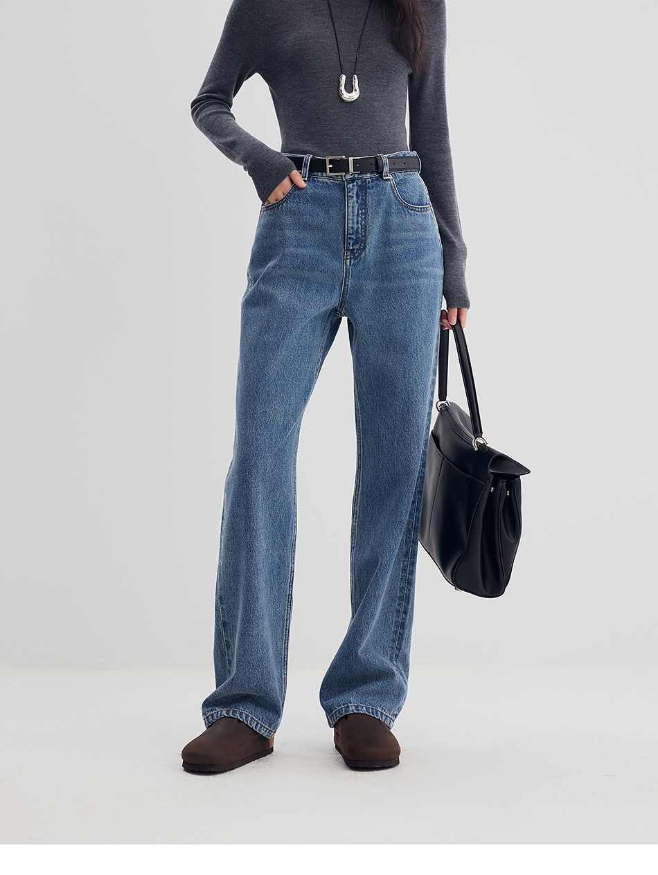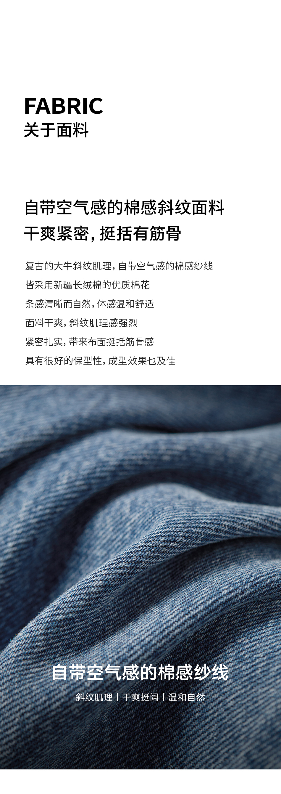 棉仓356619006-初棉肯豆裤薯条裤经典美式高腰瘦直筒牛仔裤
