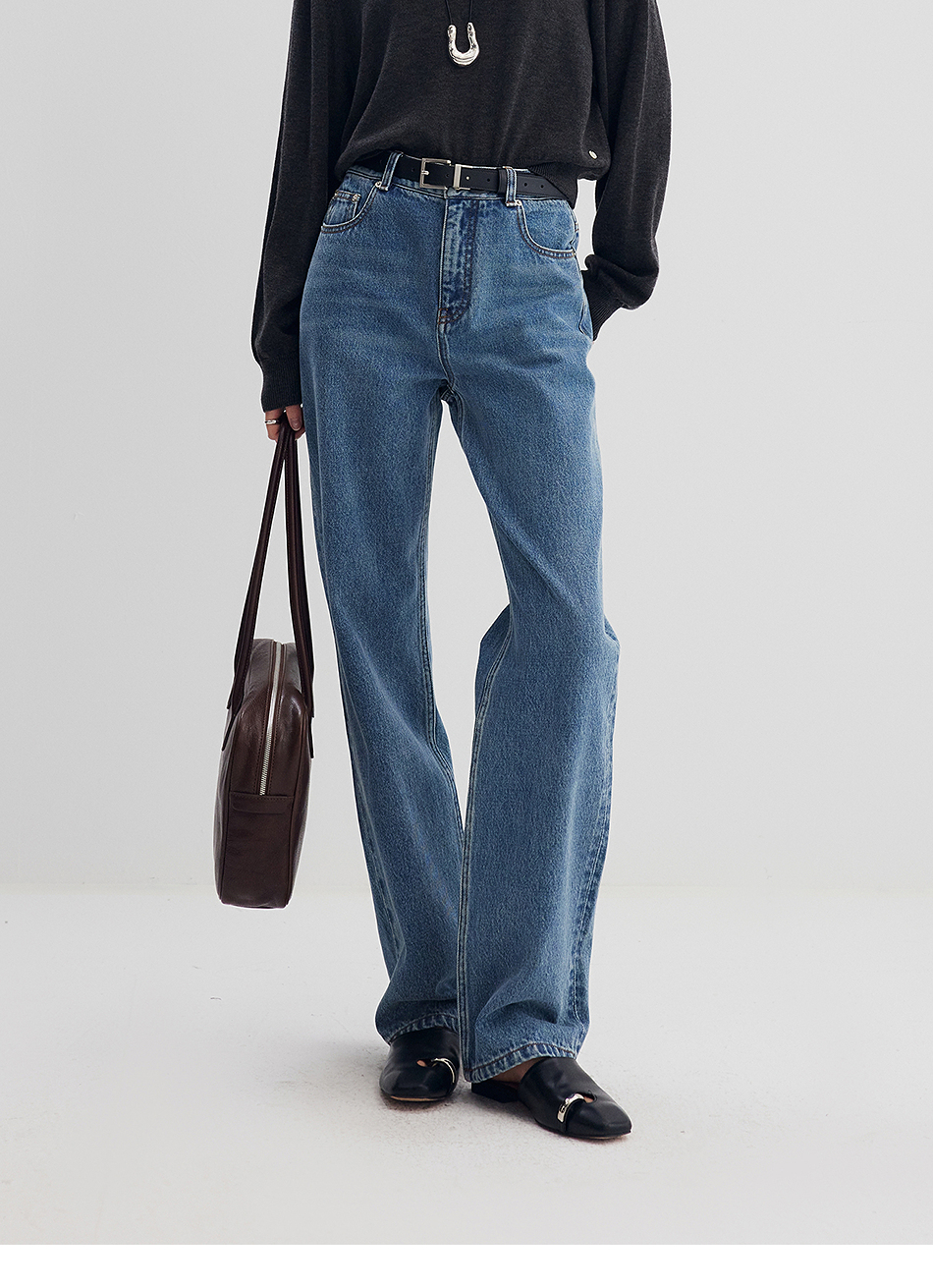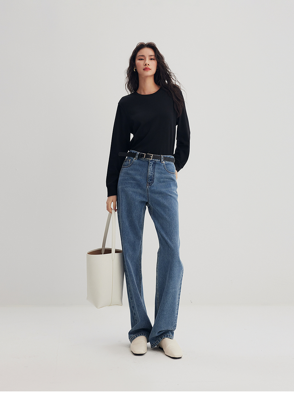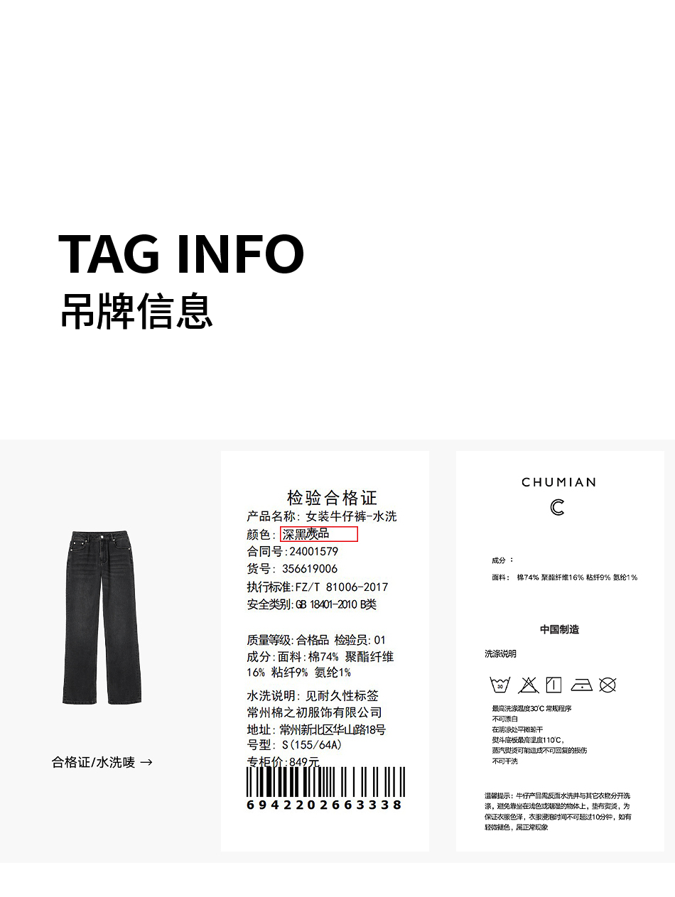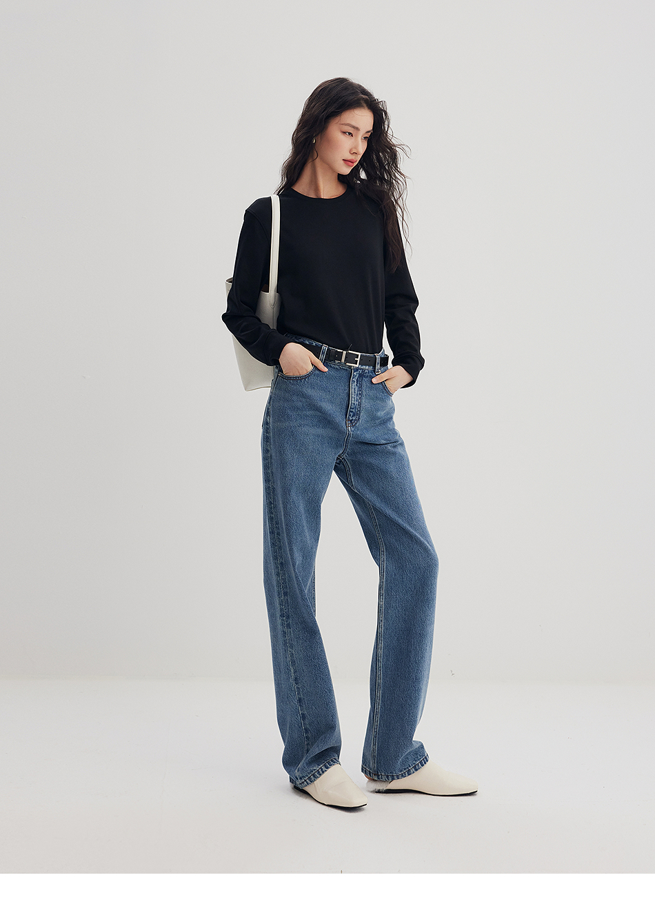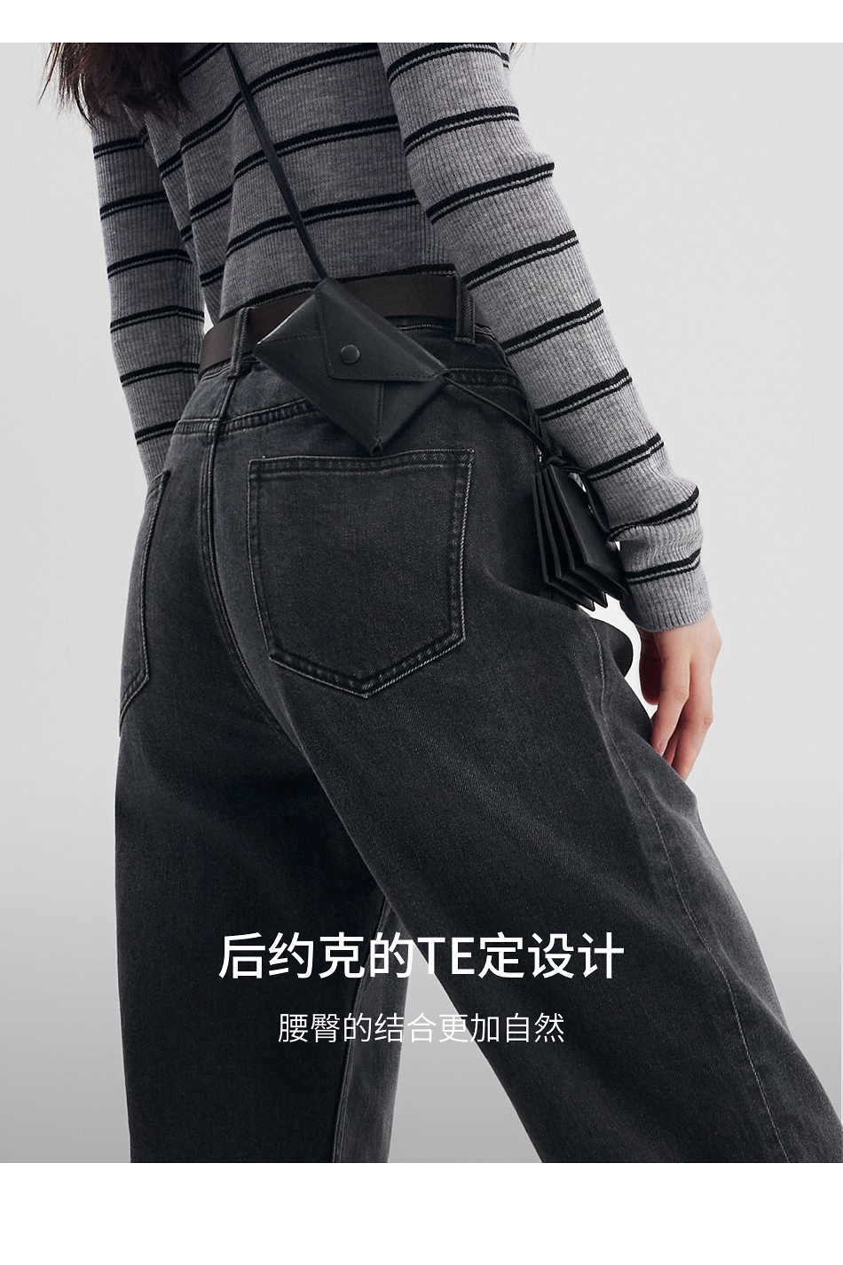 棉仓356619006-初棉肯豆裤薯条裤经典美式高腰瘦直筒牛仔裤
