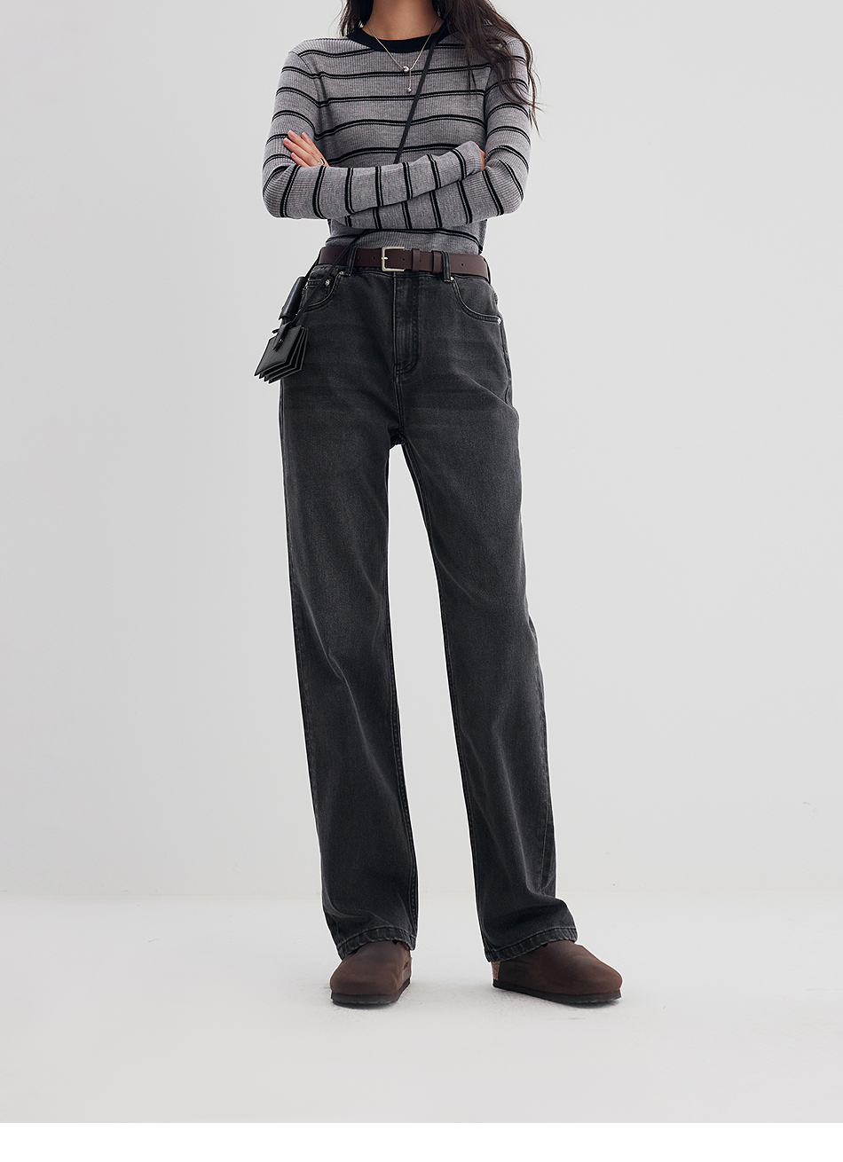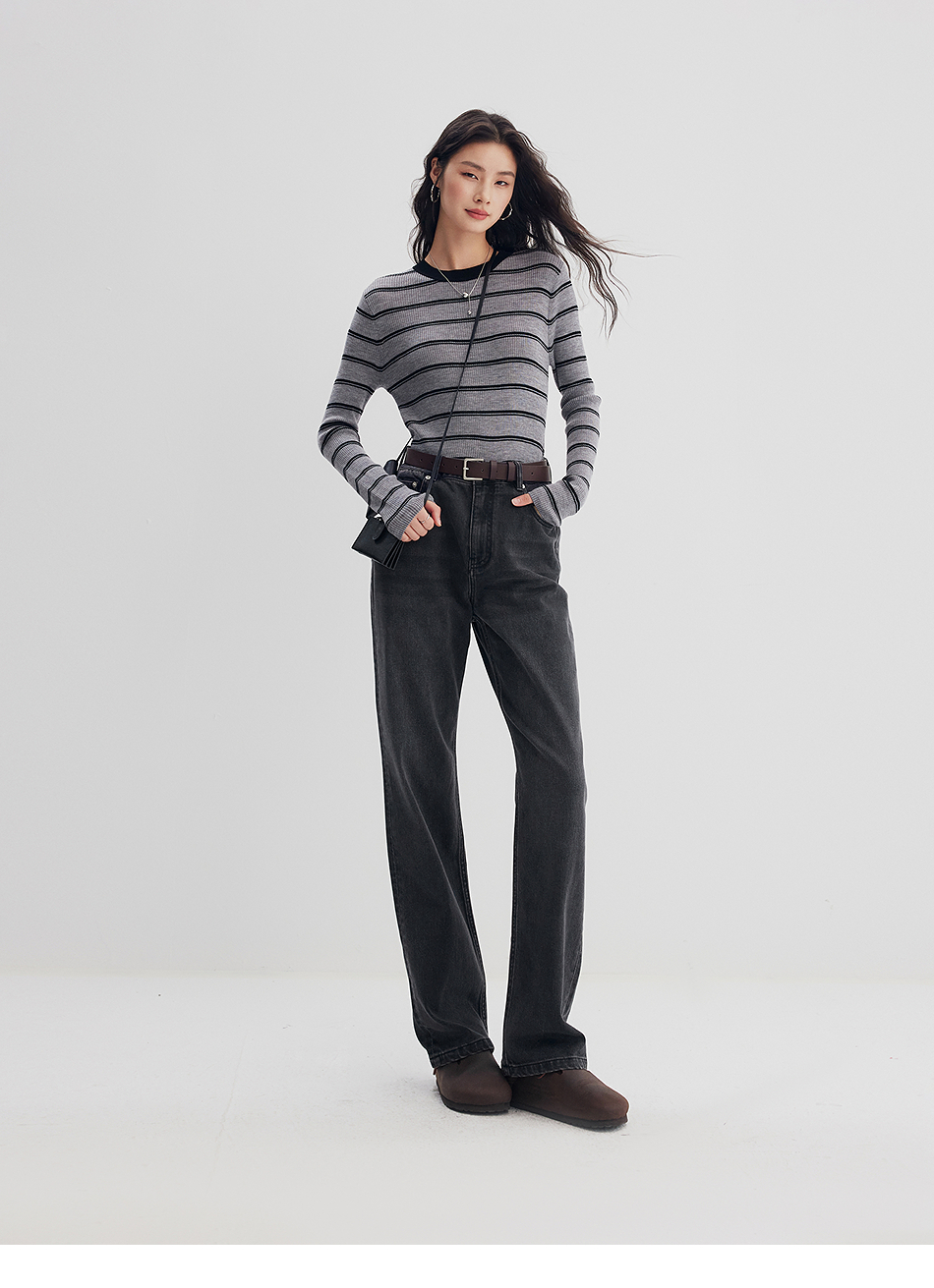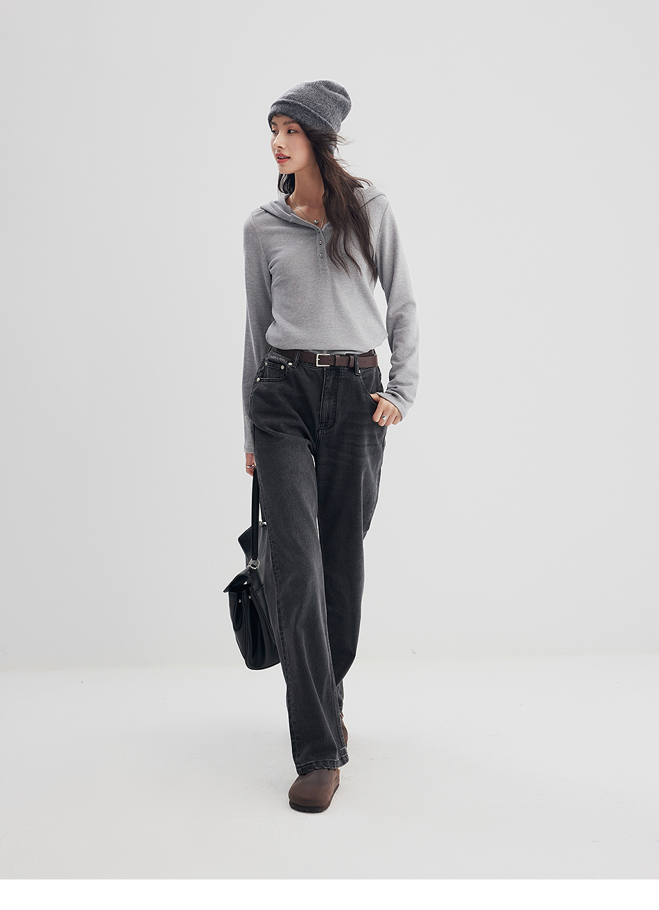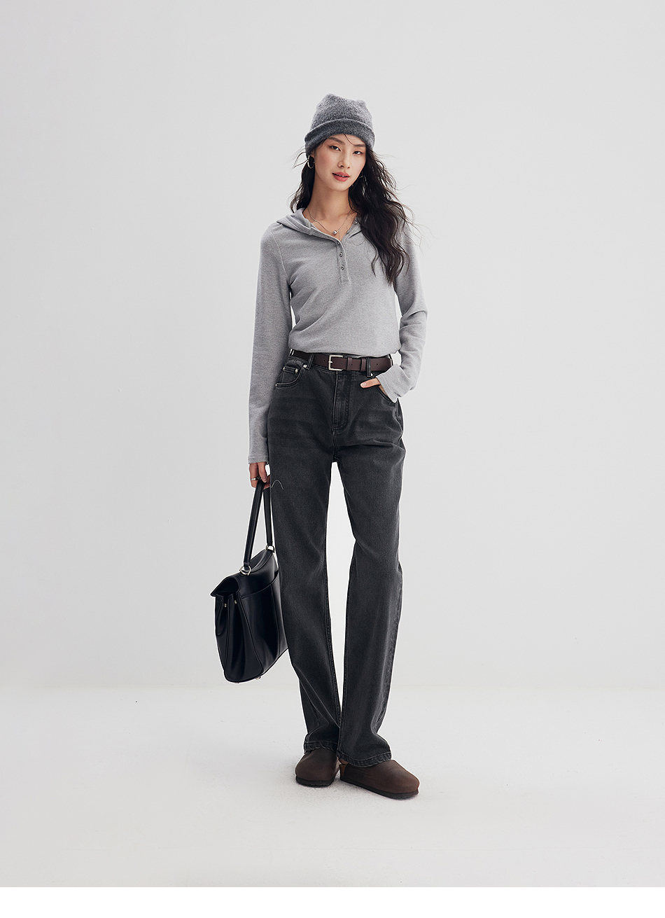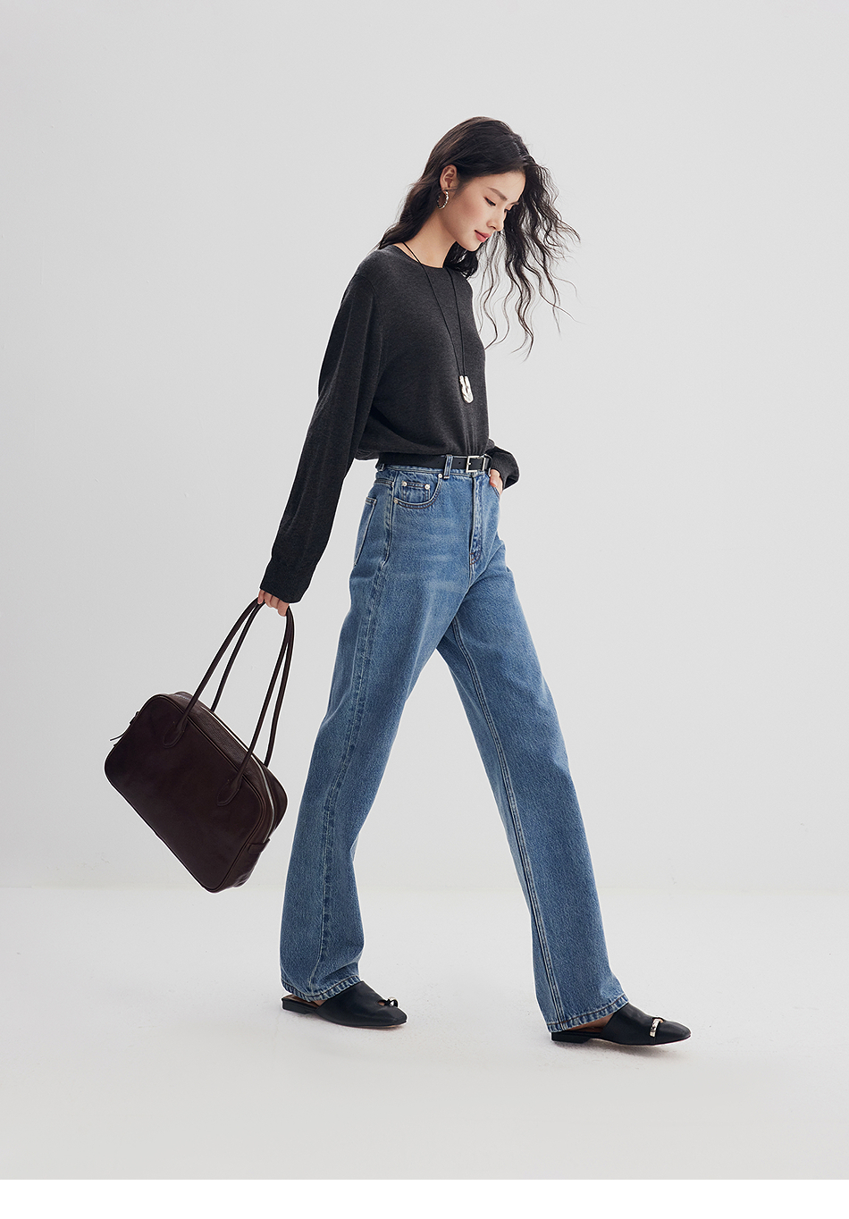 棉仓356619006-初棉肯豆裤薯条裤经典美式高腰瘦直筒牛仔裤