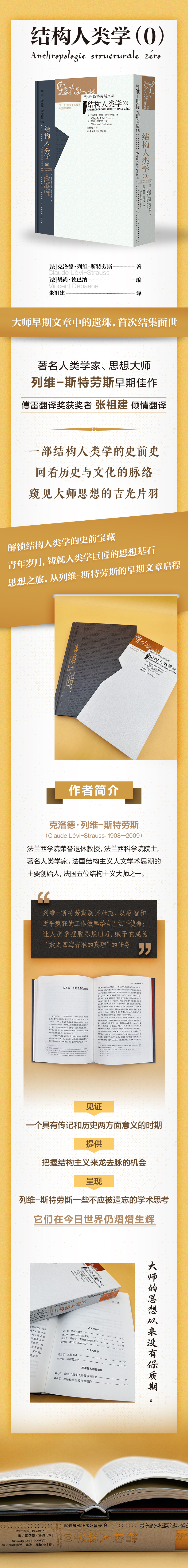 无论如何,本书把一些常被忽略的重要文章汇集起来,以飨读者。它们大多起初用英文写就,发表它们的各种刊物如今大多难以寻觅。这17篇列维斯特劳斯1958年搁置的文章,除了本身的价值以外,能够勾勒出一部结构人类学的史前史,是一个反溯的证据,能够让我们更清楚地了解列维斯特劳斯在20世纪50年代中期的理论计划及其工作方向。