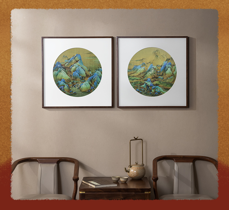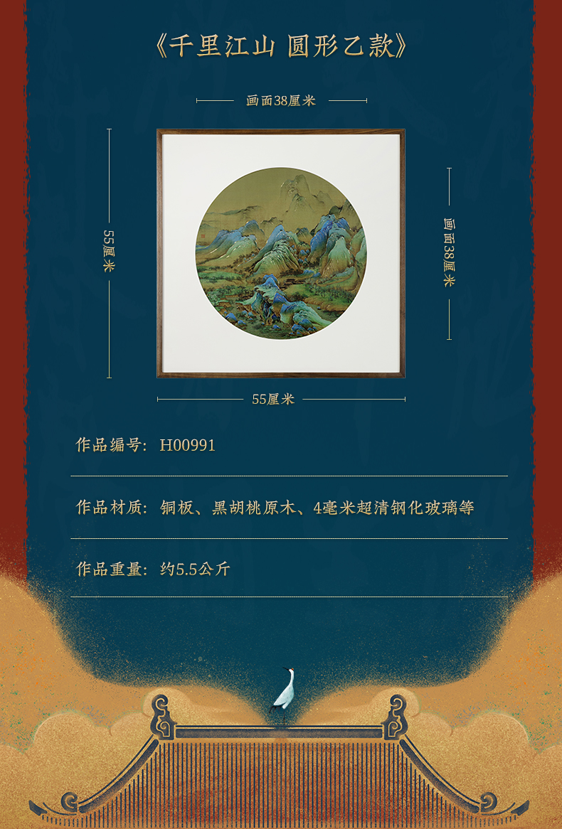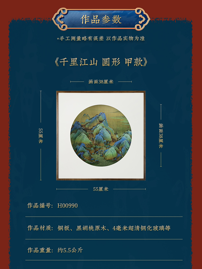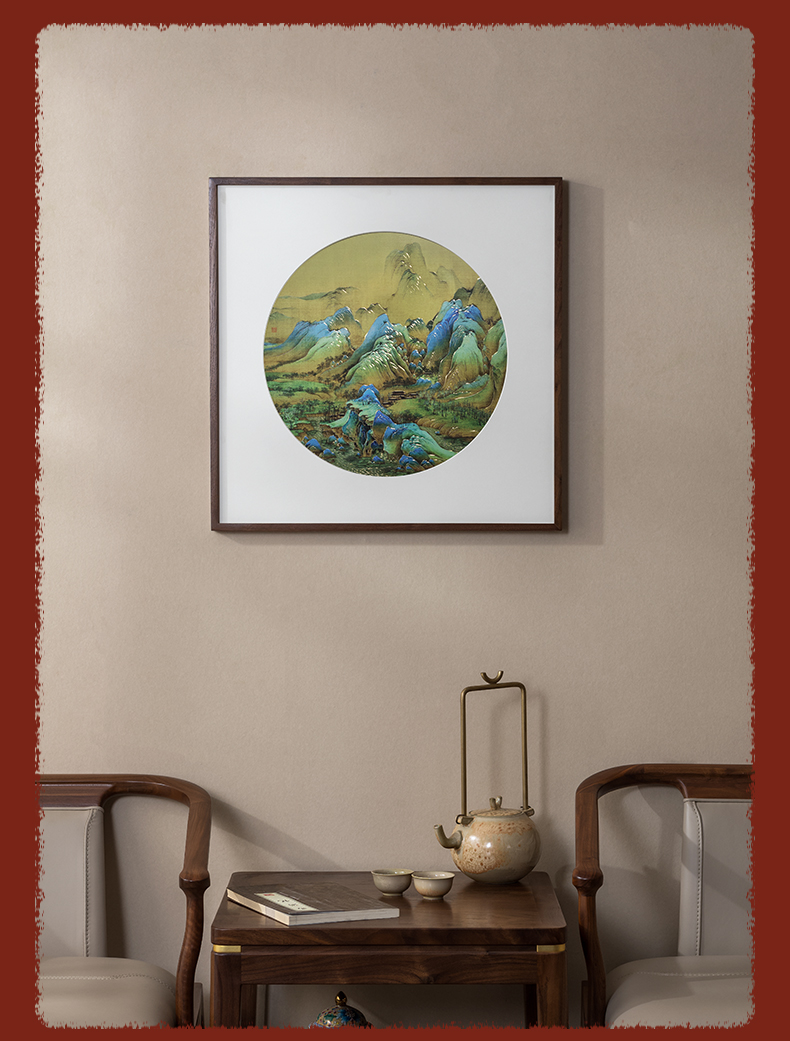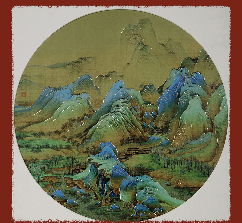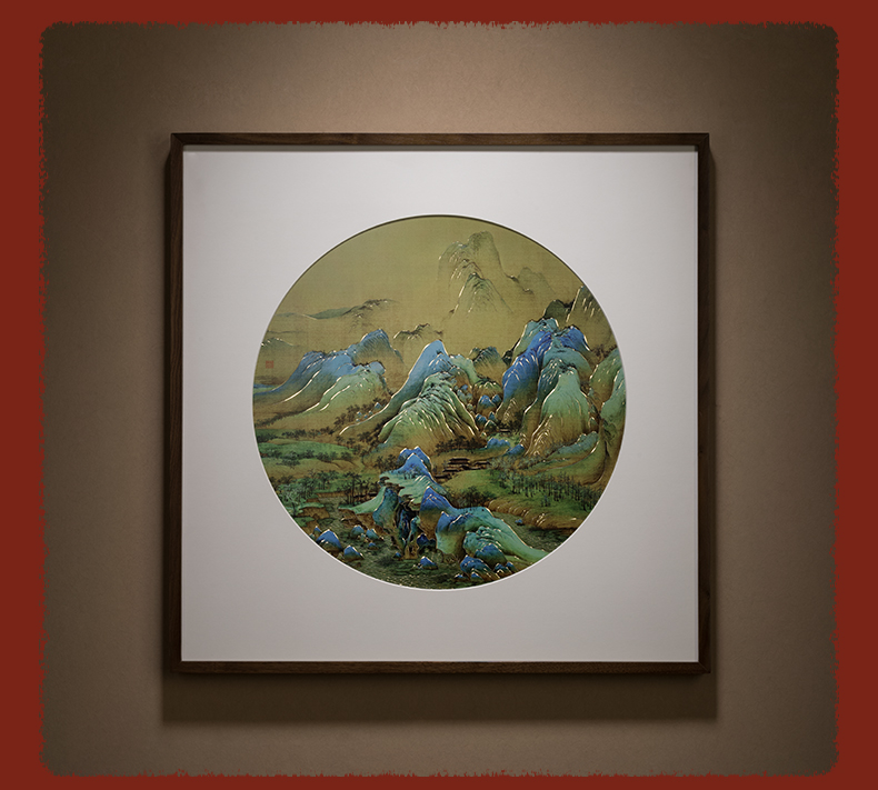 铜师傅 手工錾刻 铜雕画《千里江山 圆形》客厅背景墙装饰挂画