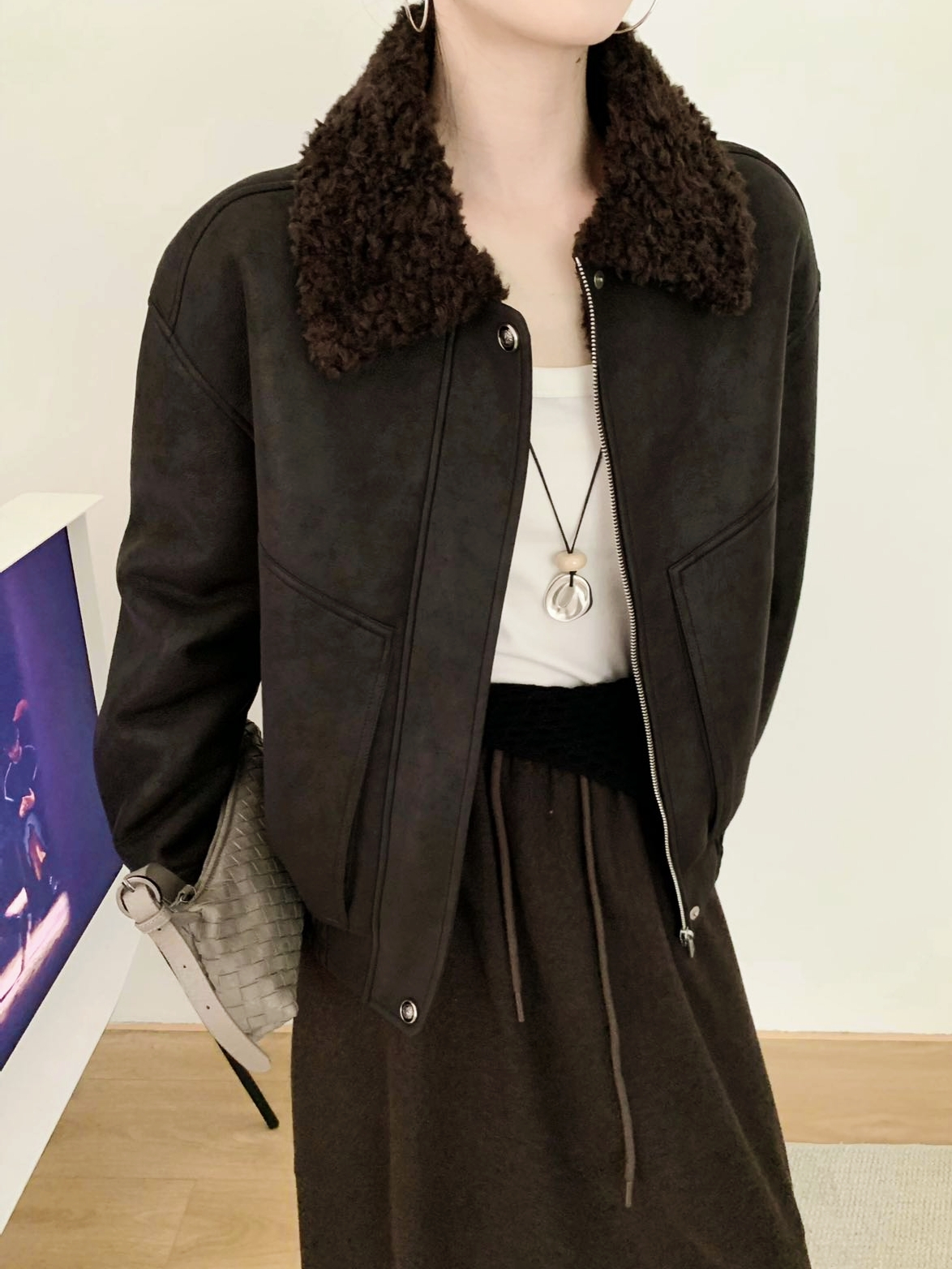 [特价]韩系机车皮夹克羊毛羊羔毛拉链皮毛一体2508065