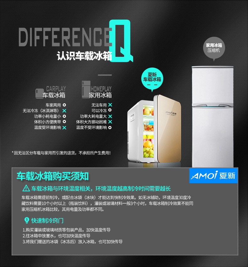 【快速降温 车家两用】Amoi 夏新迷你小冰箱小型家用宿舍车家两用学生车载制冷藏单人用