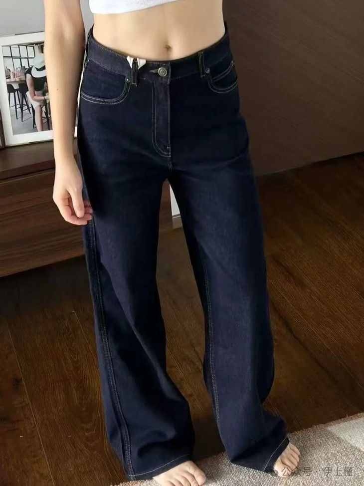 腰线配合直筒黄金分割,从髋部至脚踝形成流畅垂直的线条,巧妙修饰女性的腰臀过渡区,裤腿内的隐形弧线收省,在行走时制造出微妙的动态延伸感,后袋精密定位,在视觉上自然提拉臀线。