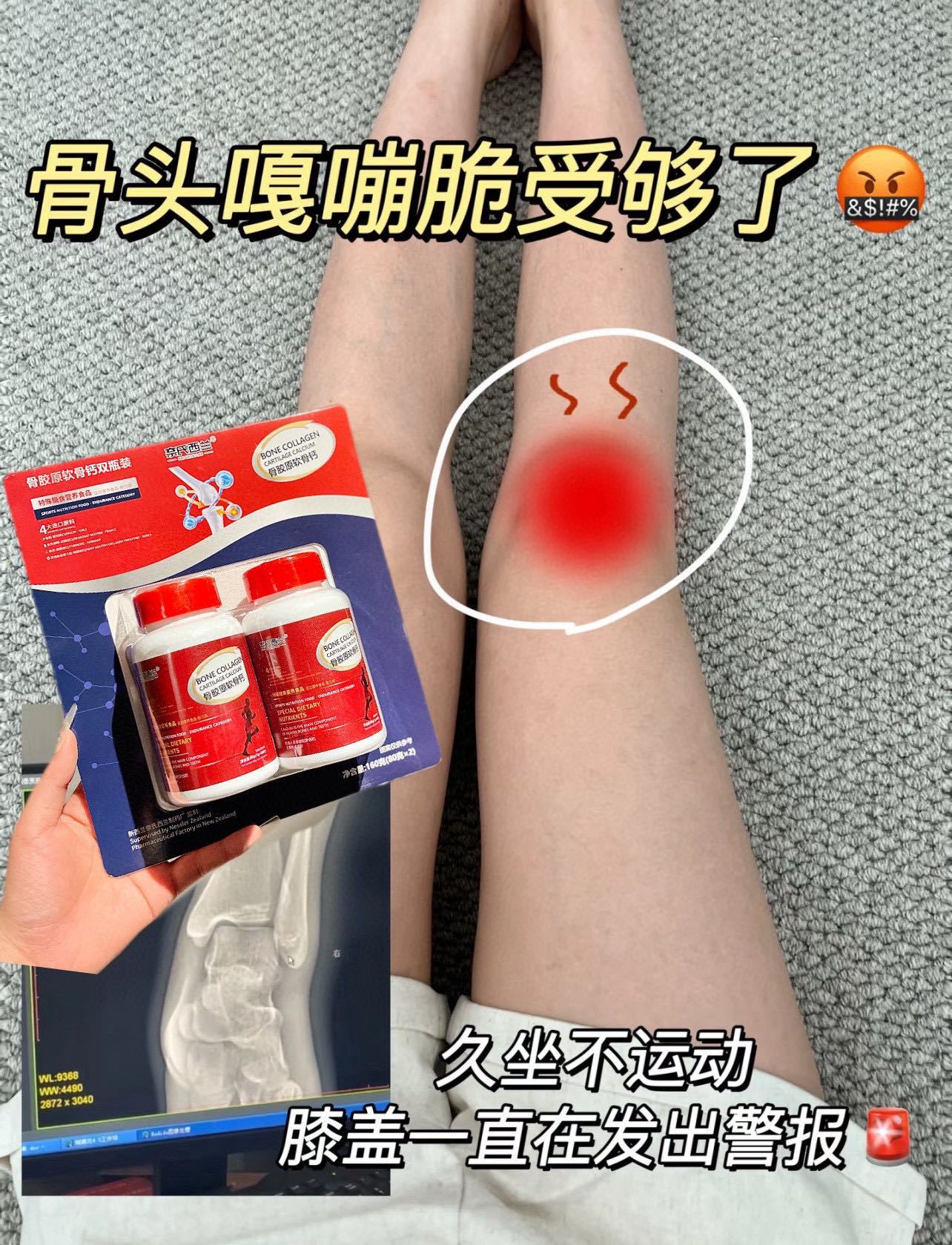 膝盖痛关节痛必入,减轻疼痛,提前吃骨胶原软骨钙保养关节,预防关节炎。补钙入骨~
