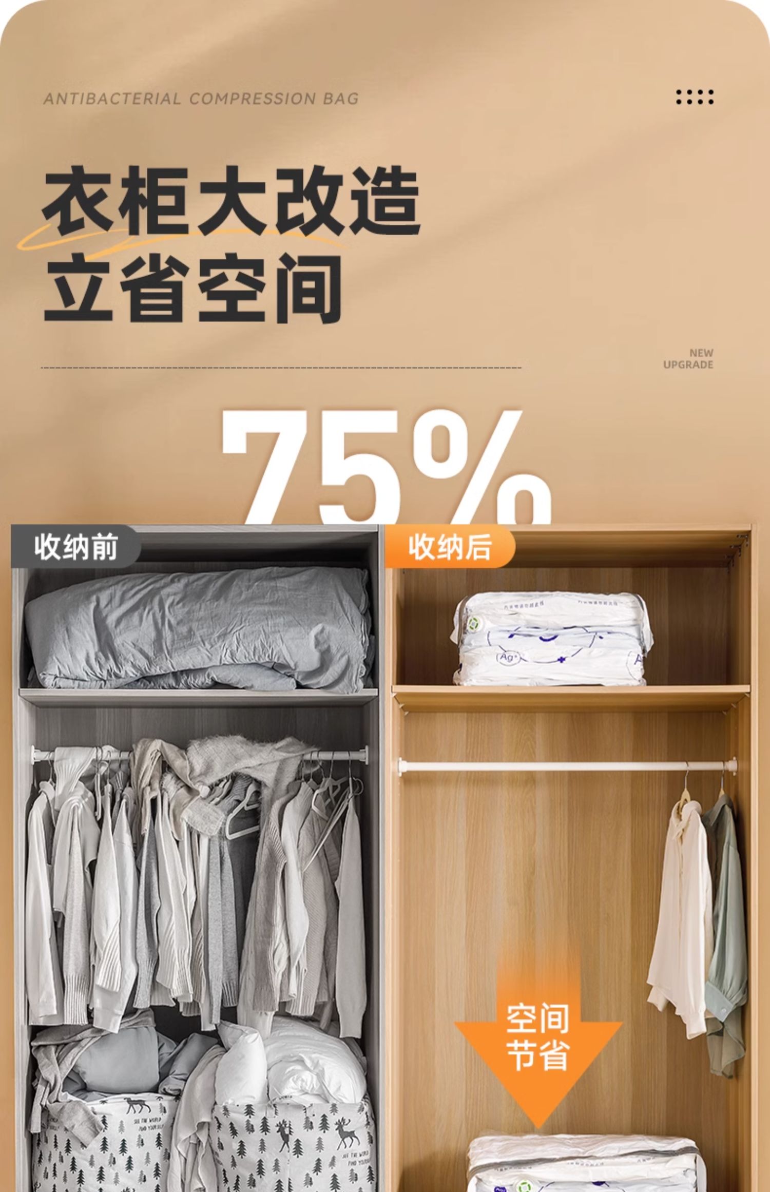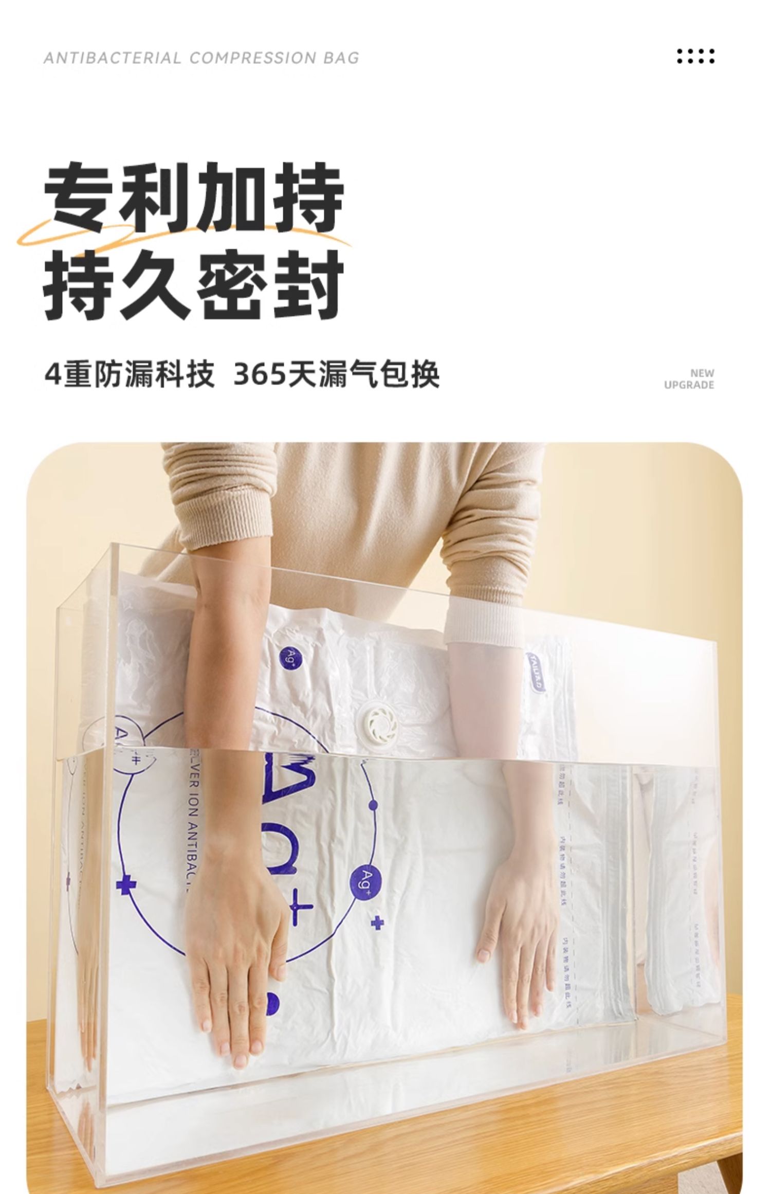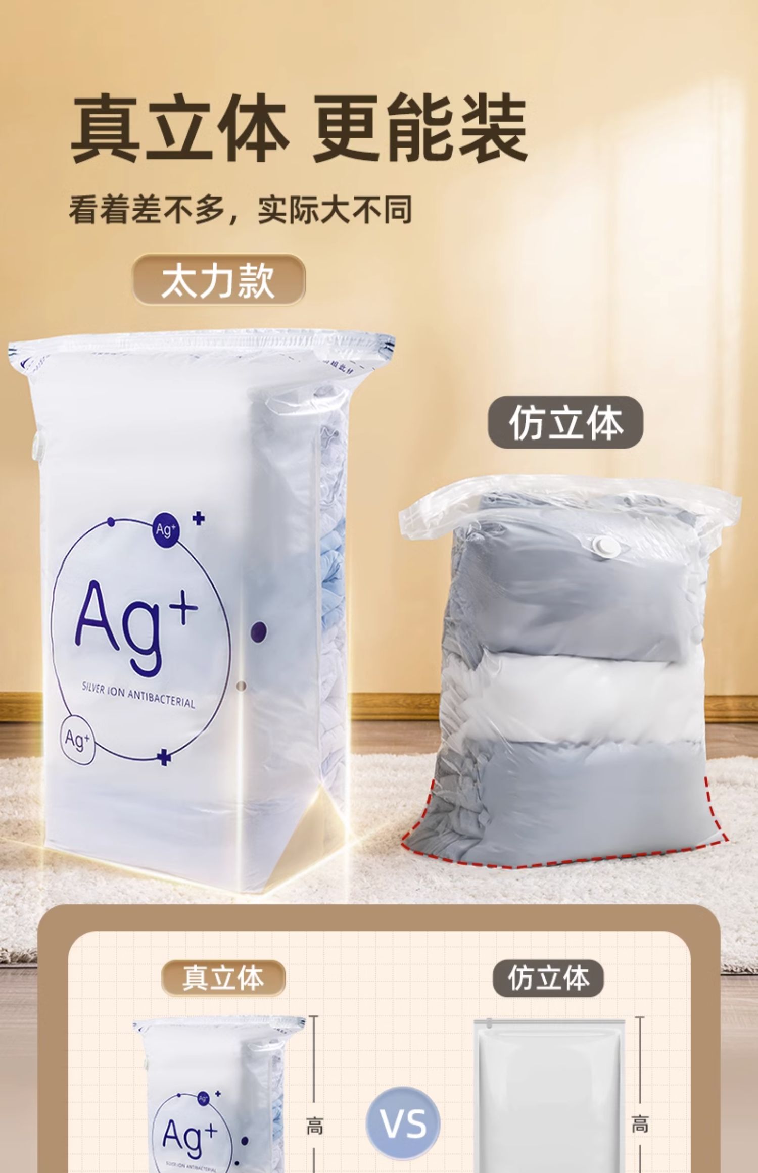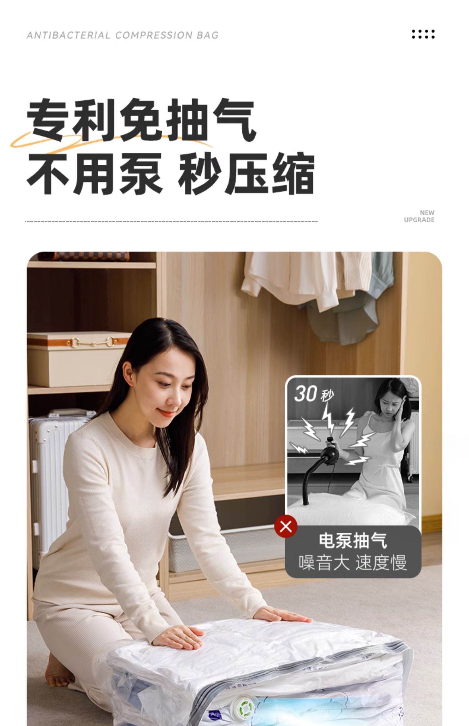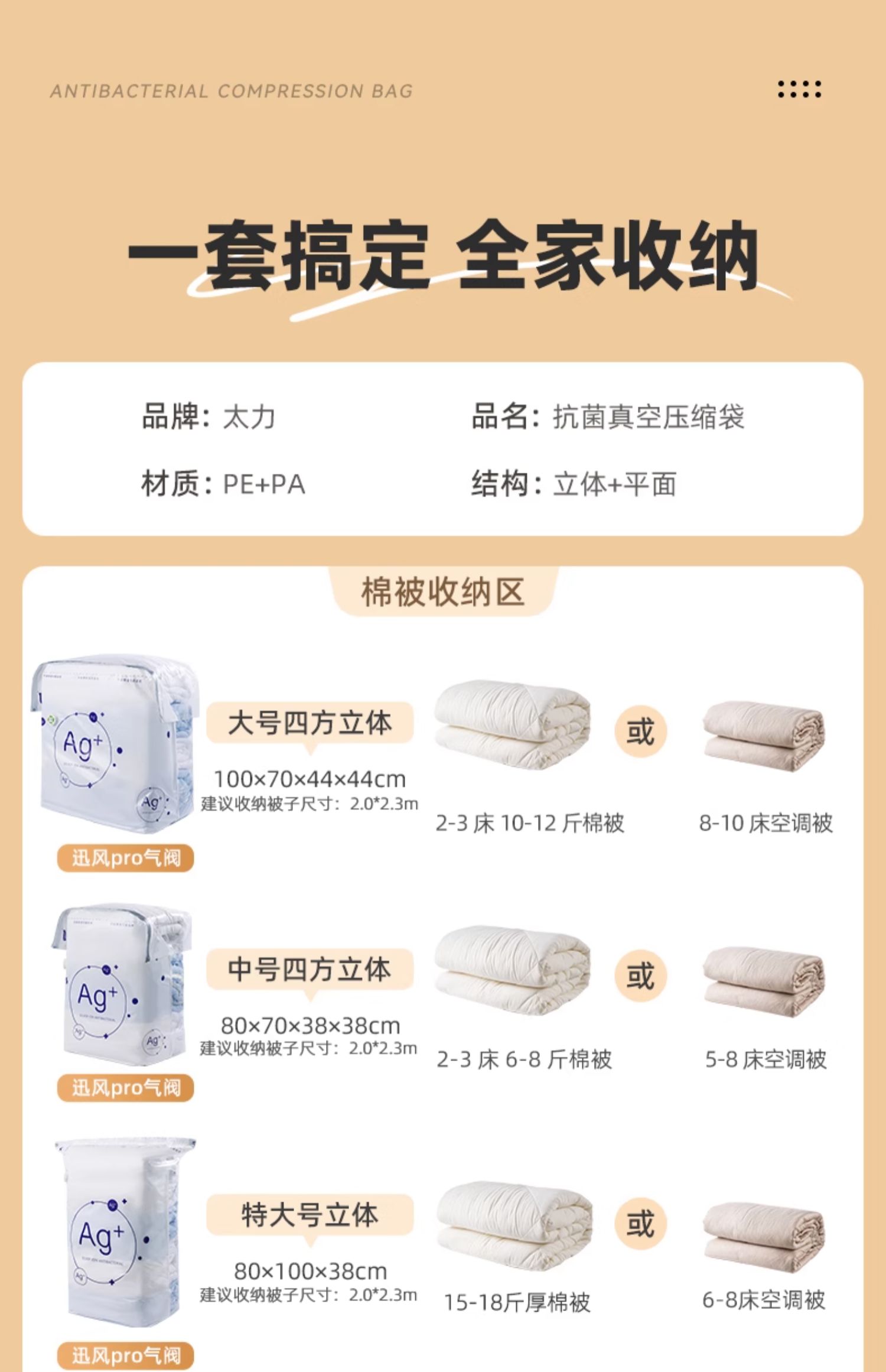 太力抗菌免抽气真空压缩袋装棉被子衣物羽绒服小号45*70cm1个装