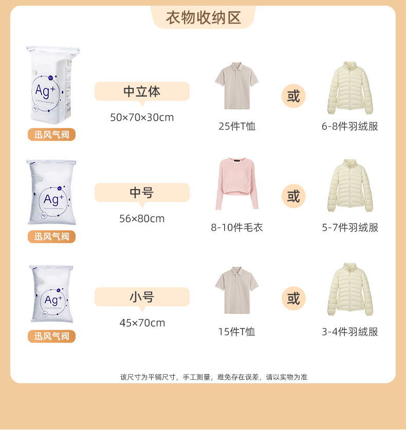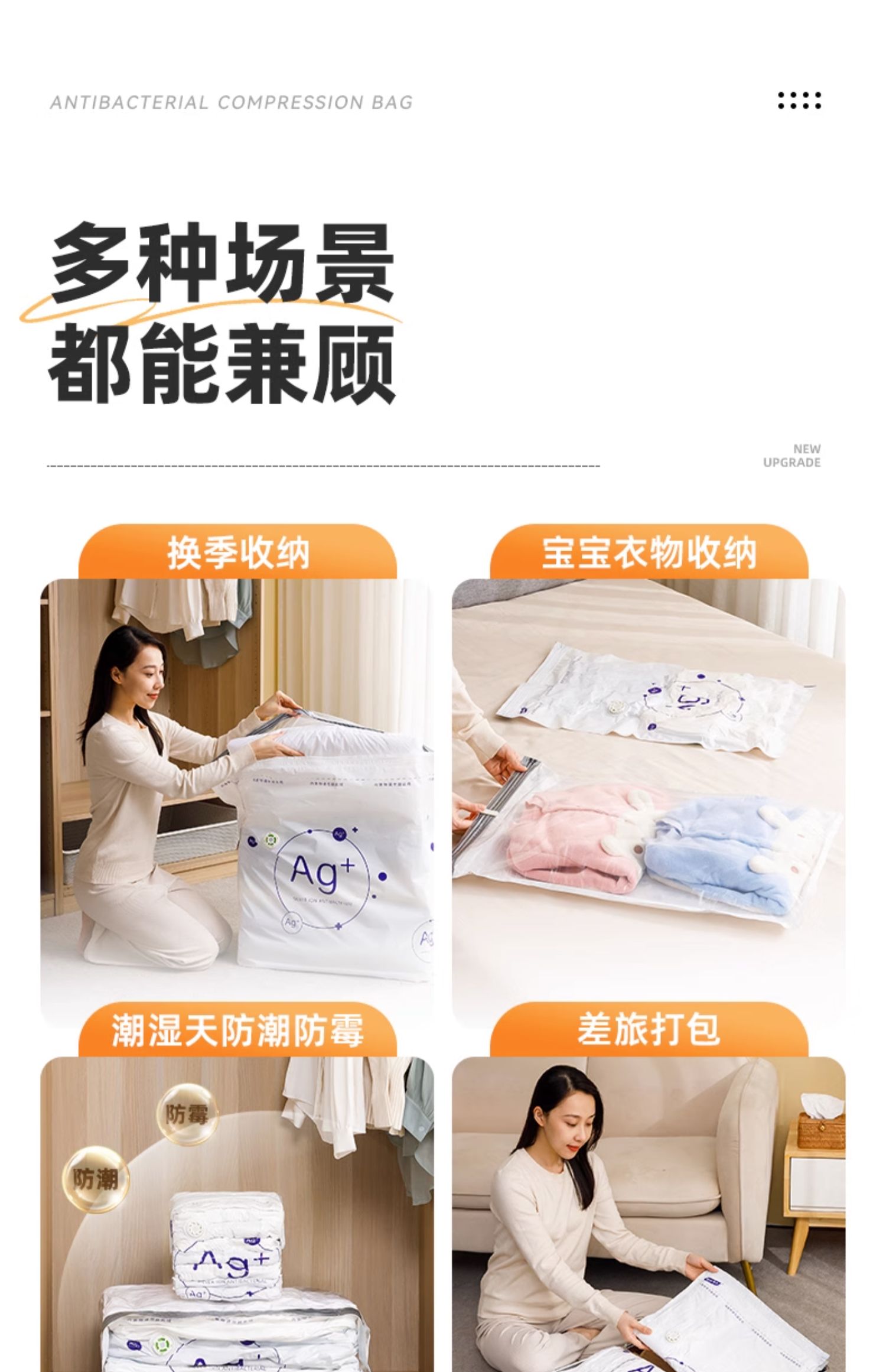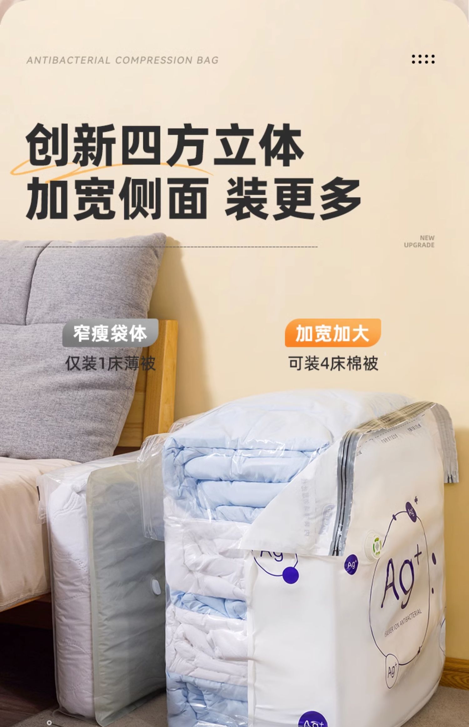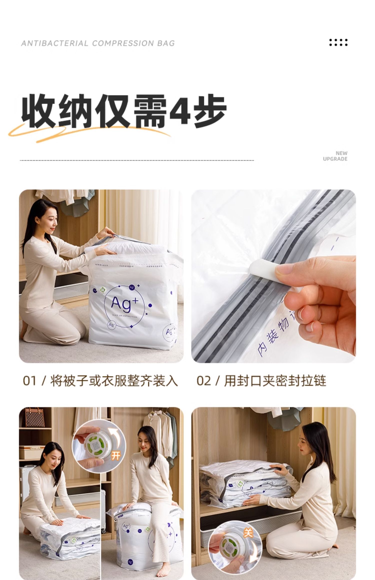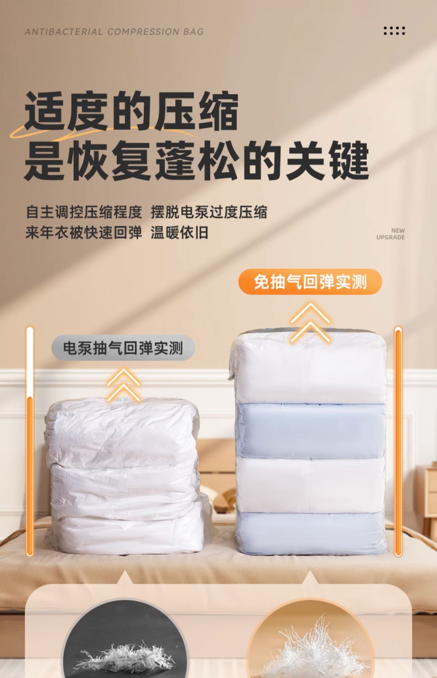 太力抗菌免抽气真空压缩袋装棉被子衣物羽绒服小号45*70cm1个装