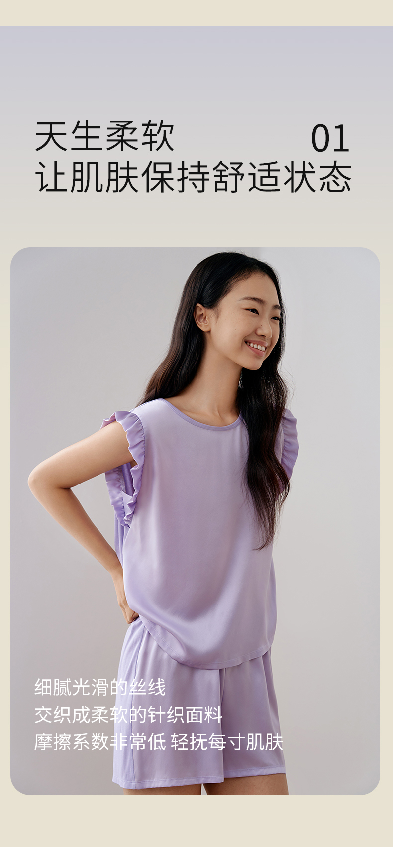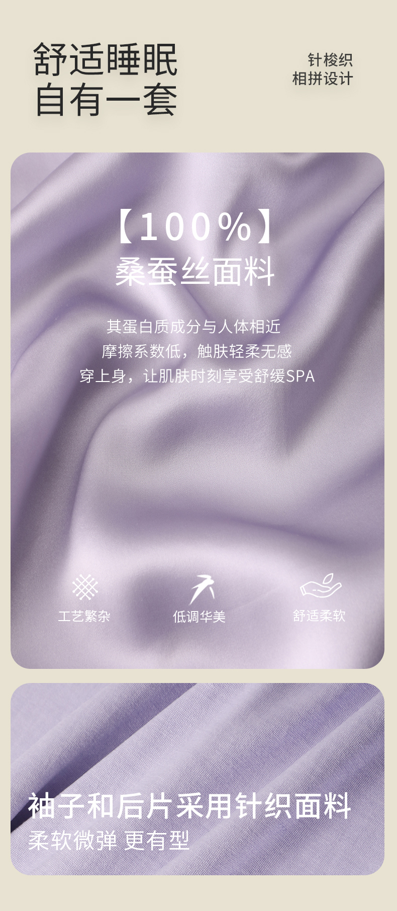 【深睡眠蚕丝睡衣】真丝针织睡衣女宽松无袖睡裙衣裤套家居服金三塔 YZFFB303/YZFFB402